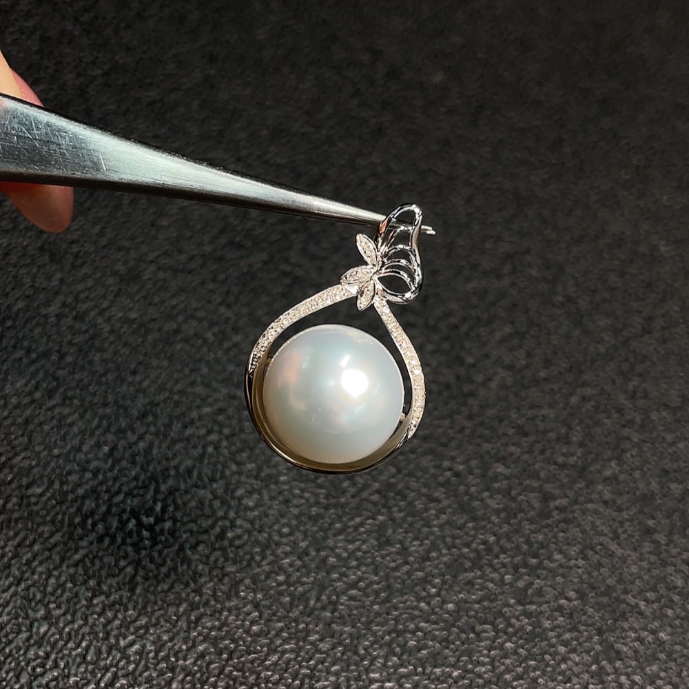 Seawater Pearl Pendant Set in 18K Gold, Approximately 13mm, Total Weight About 5.37g
