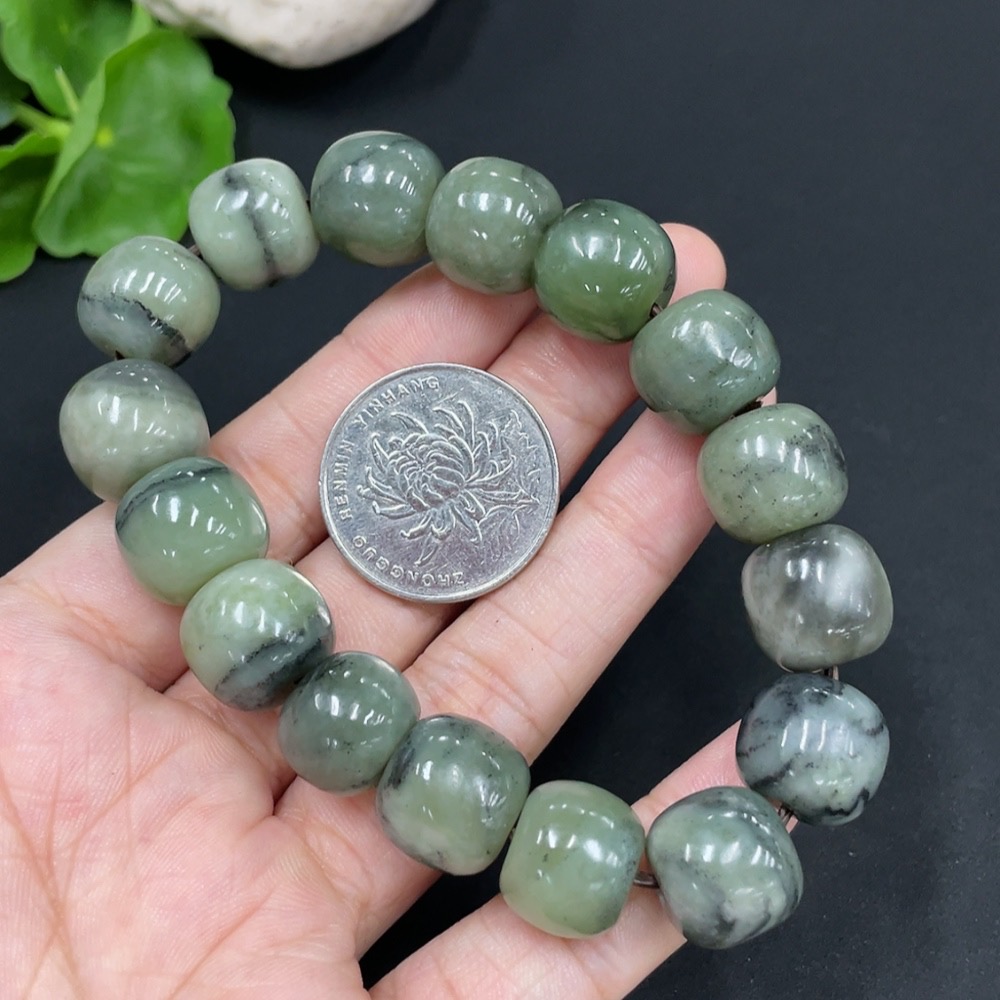 Hetian Jade Bracelet, Approx. 13.5mm, Total Weight Approx. 68.3g, Contains Other Mineral Components