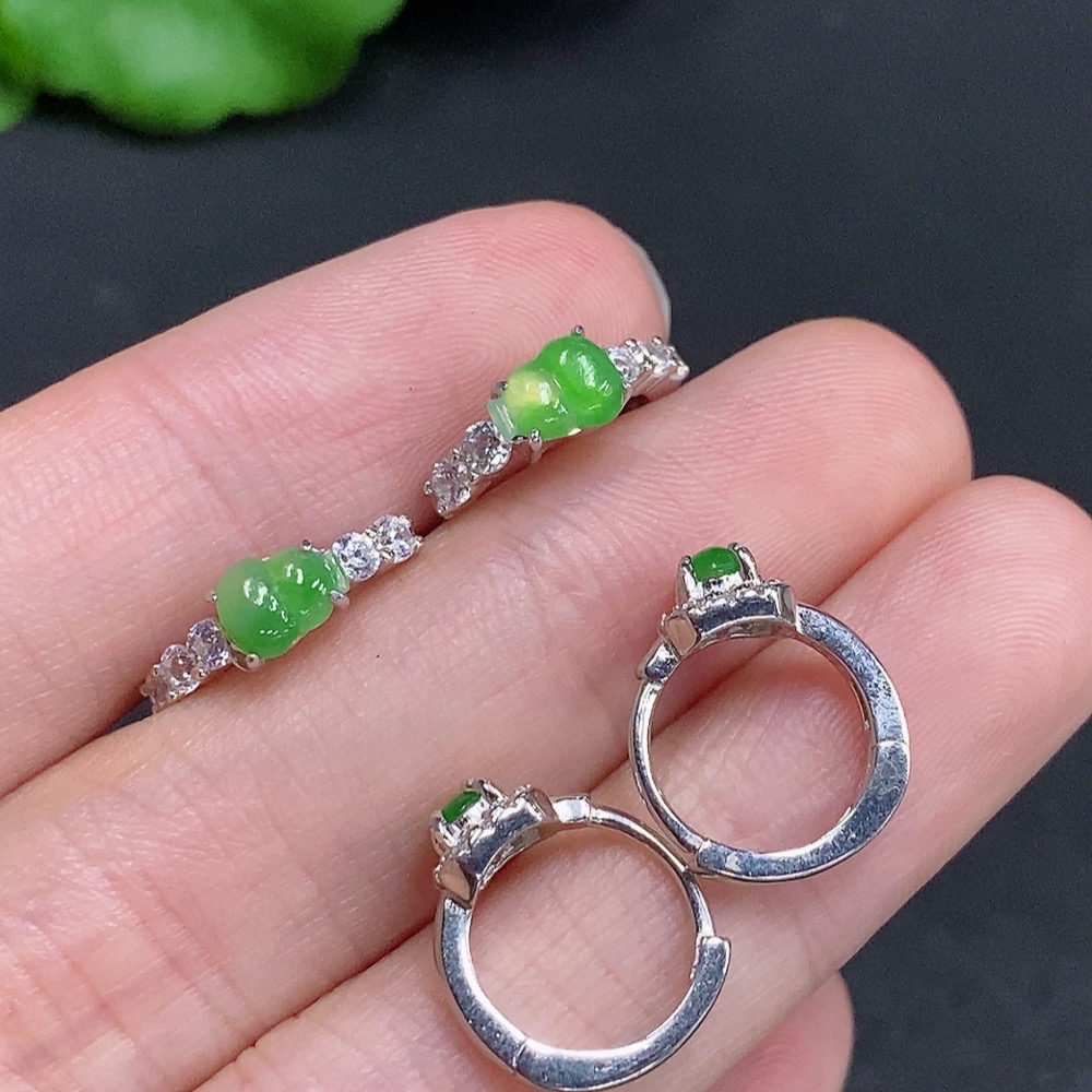 Jadeite Inlaid Earrings Non-Gold Sell as a Lot