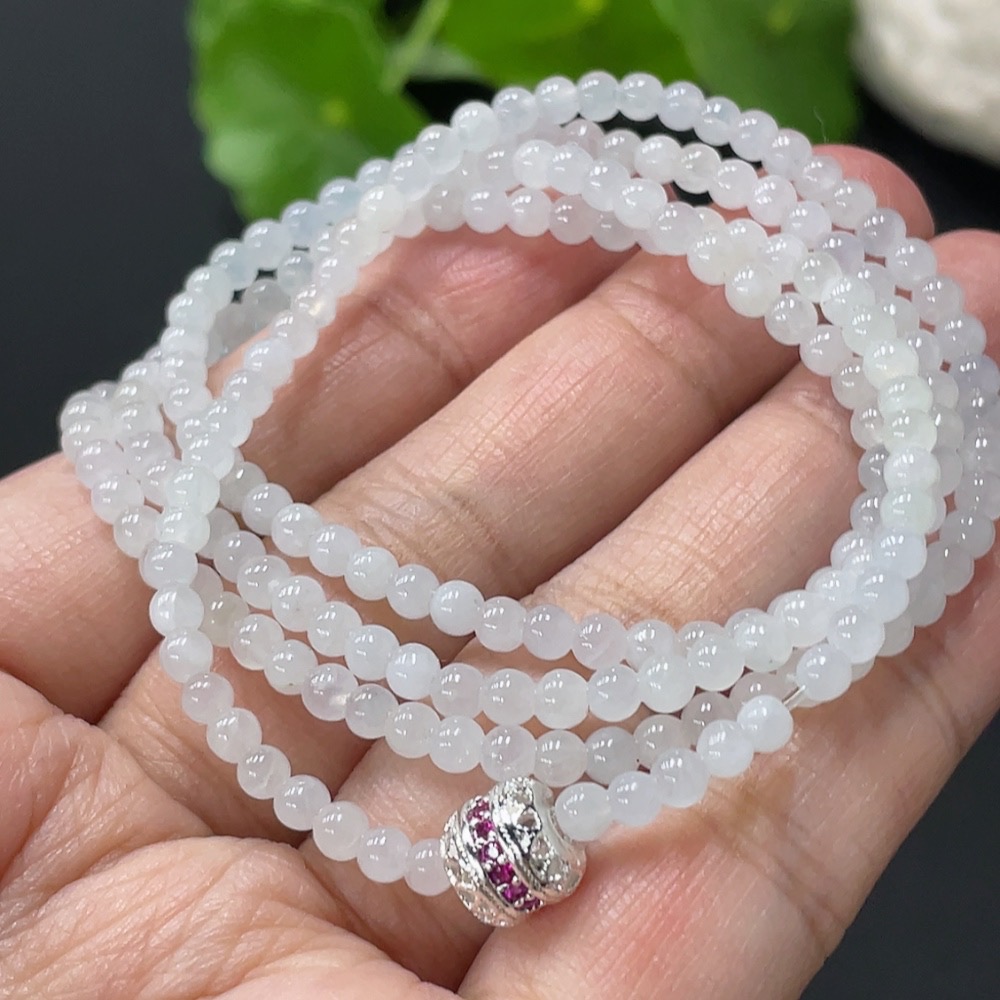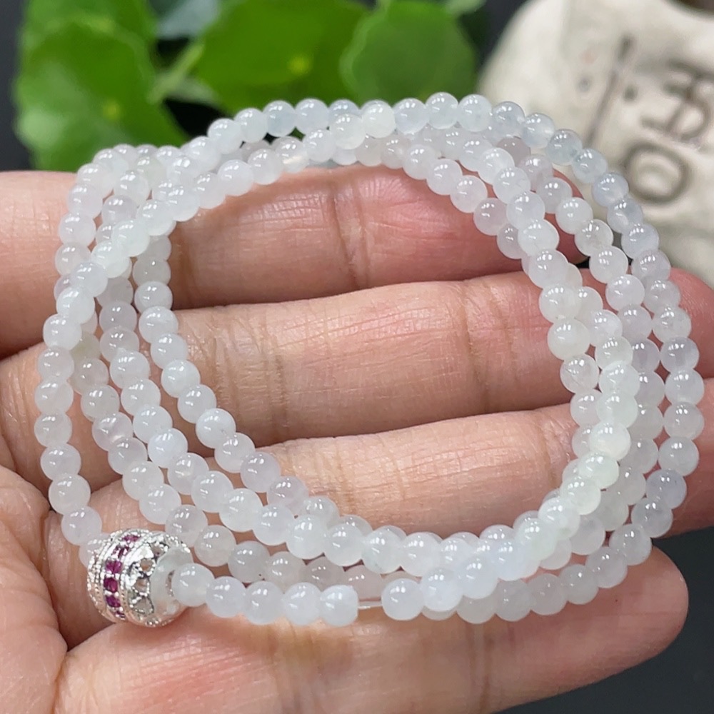 Jadeite Beaded Necklace Approx. 3.4mm Total Weight Approx. 14.1g Non-Gold Clasp