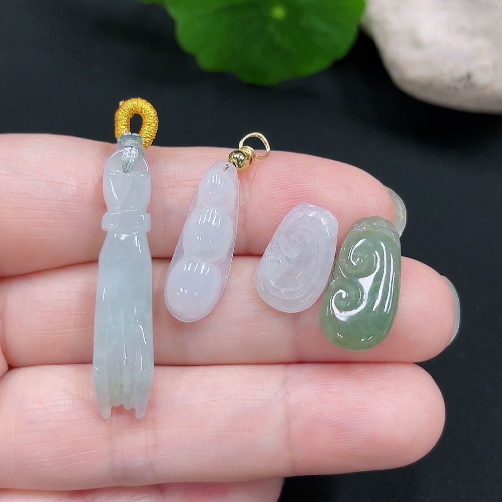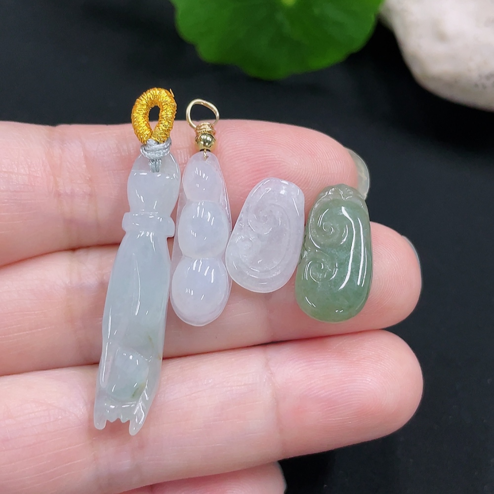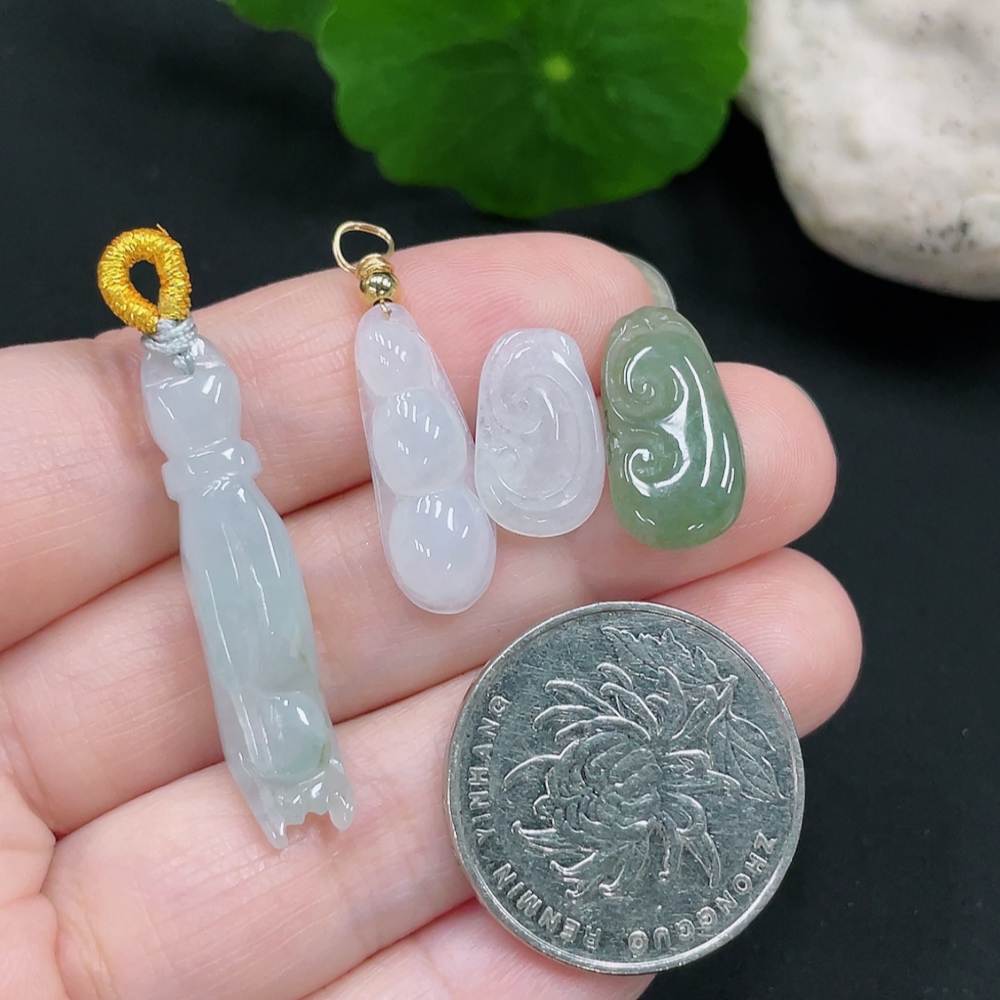 Jadeite Pendants Sell as a Lot Non-Gold Inlaid