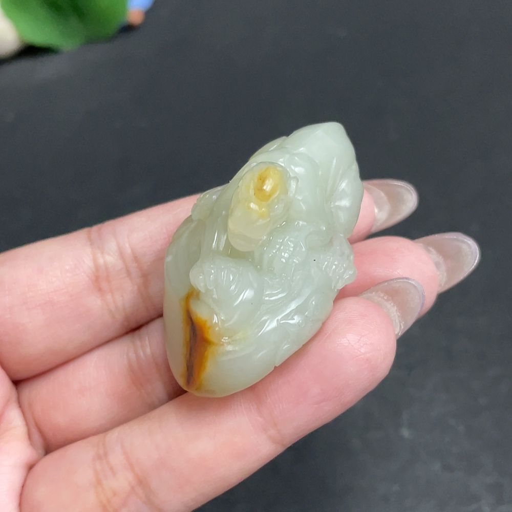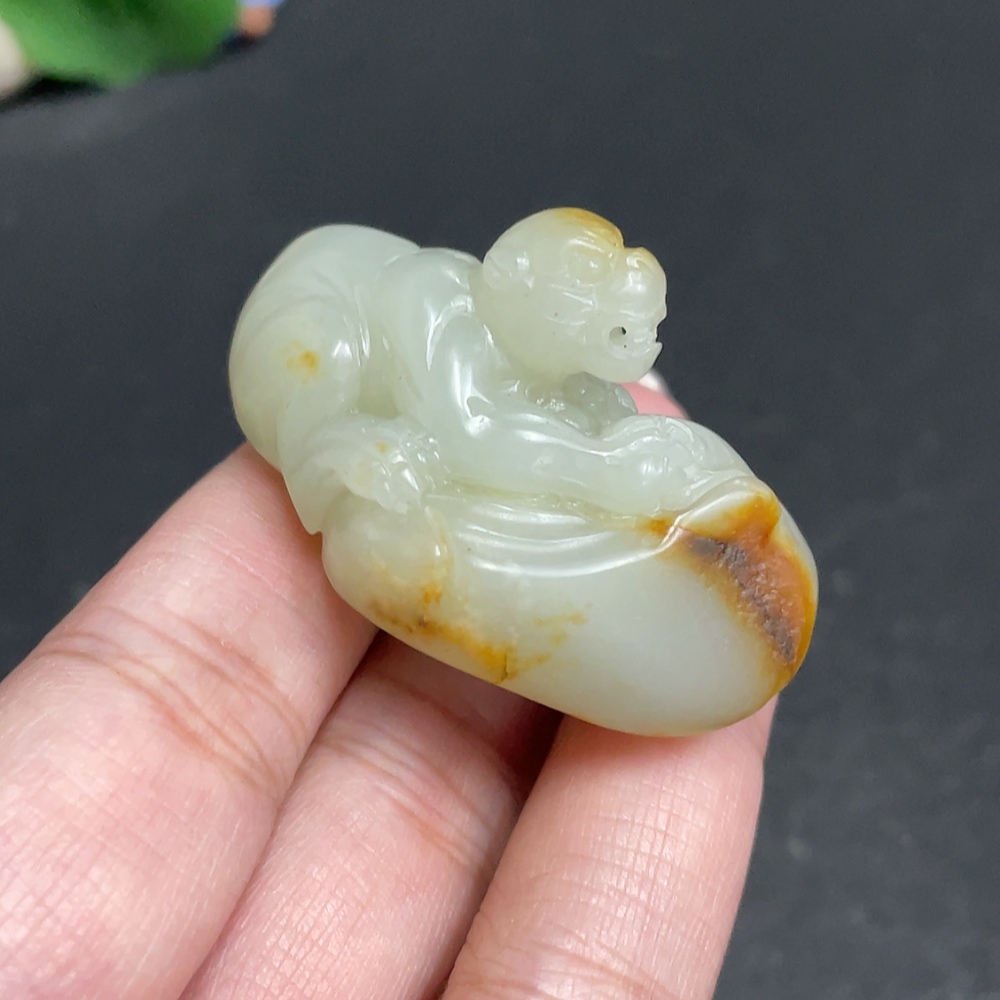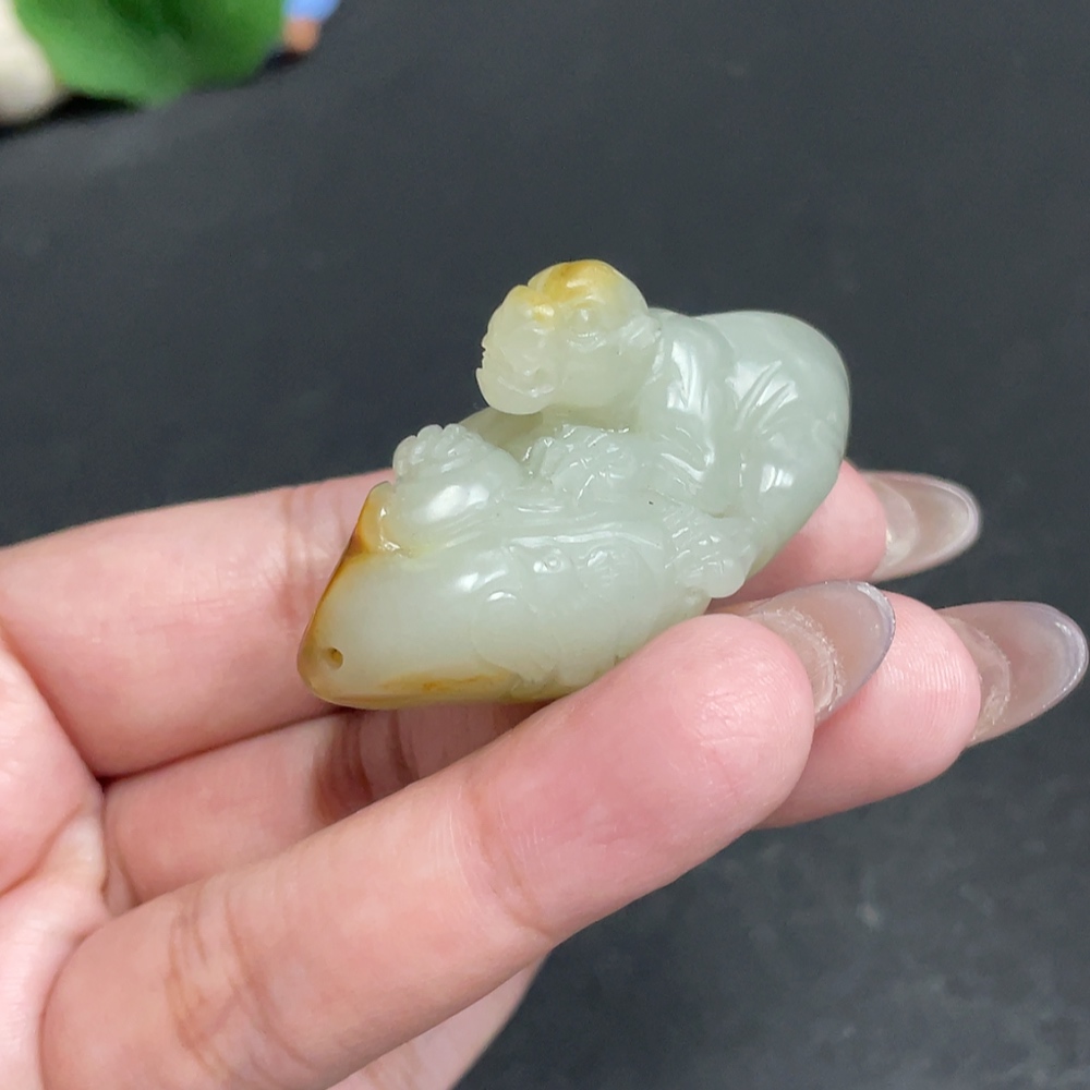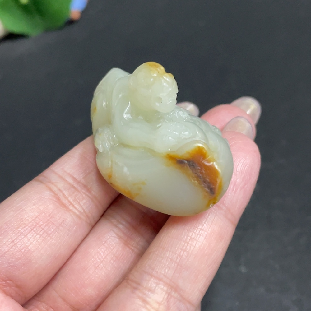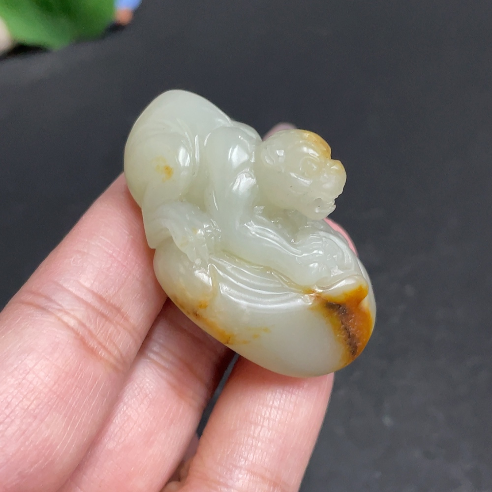 Hetian Jade Pendant, Auspicious Beast, Undetermined Skin Color Origin, Total Weight Approx. 36.2g