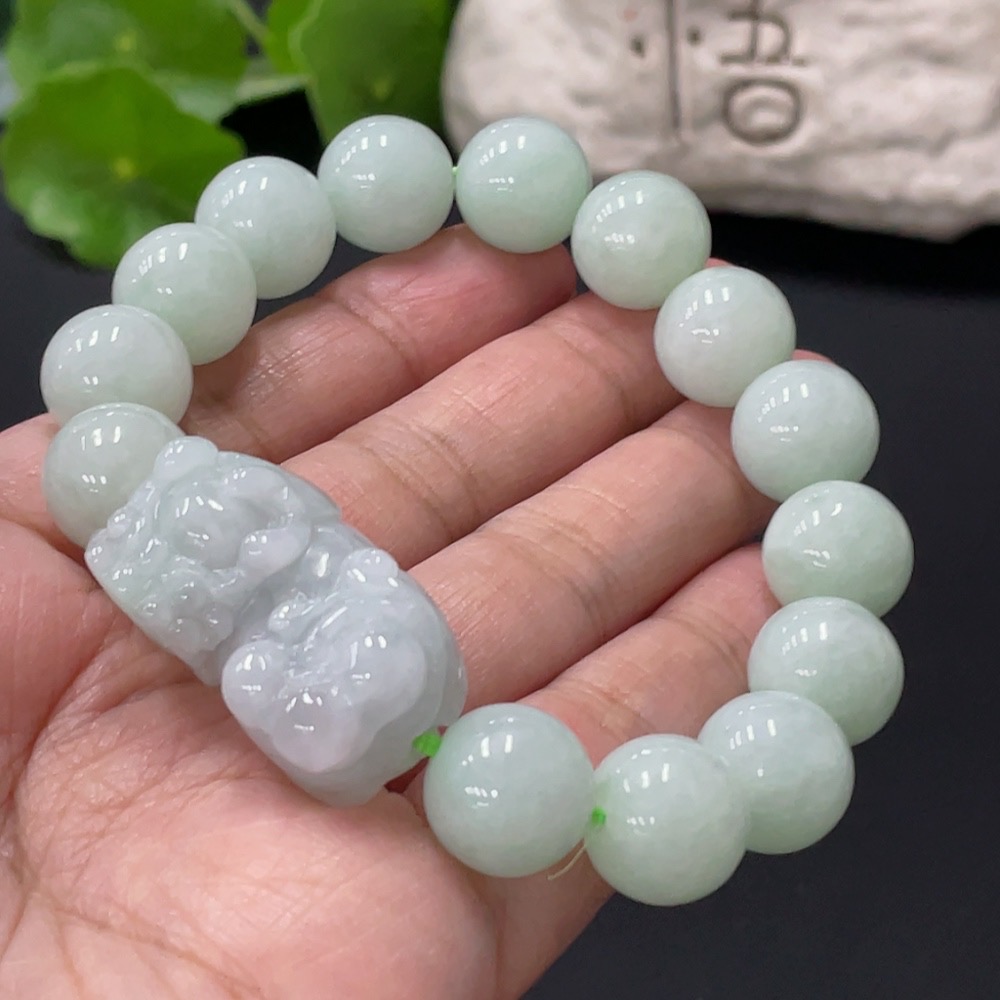 JadeiteBead Bracelet Approx. 12.6mm Total Weight About 62.1g