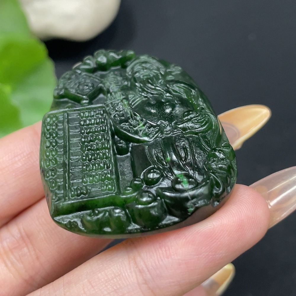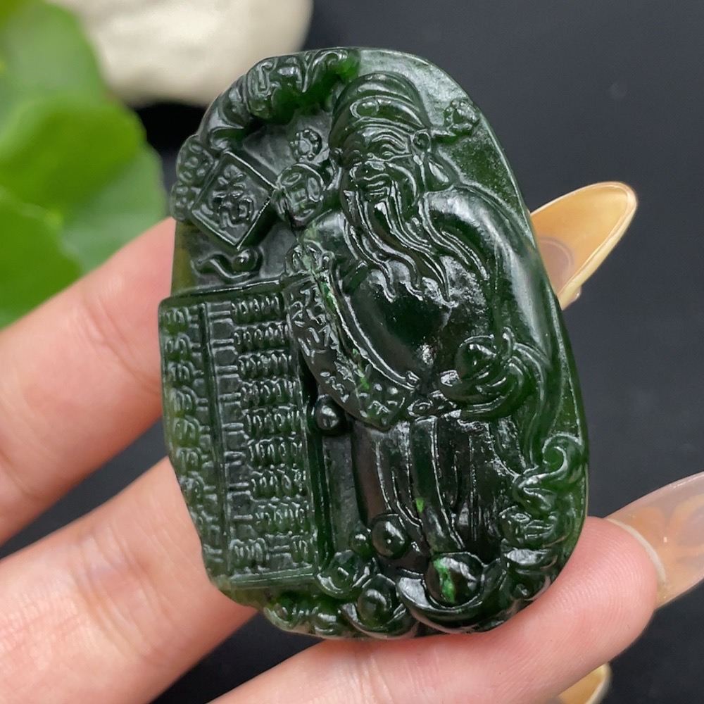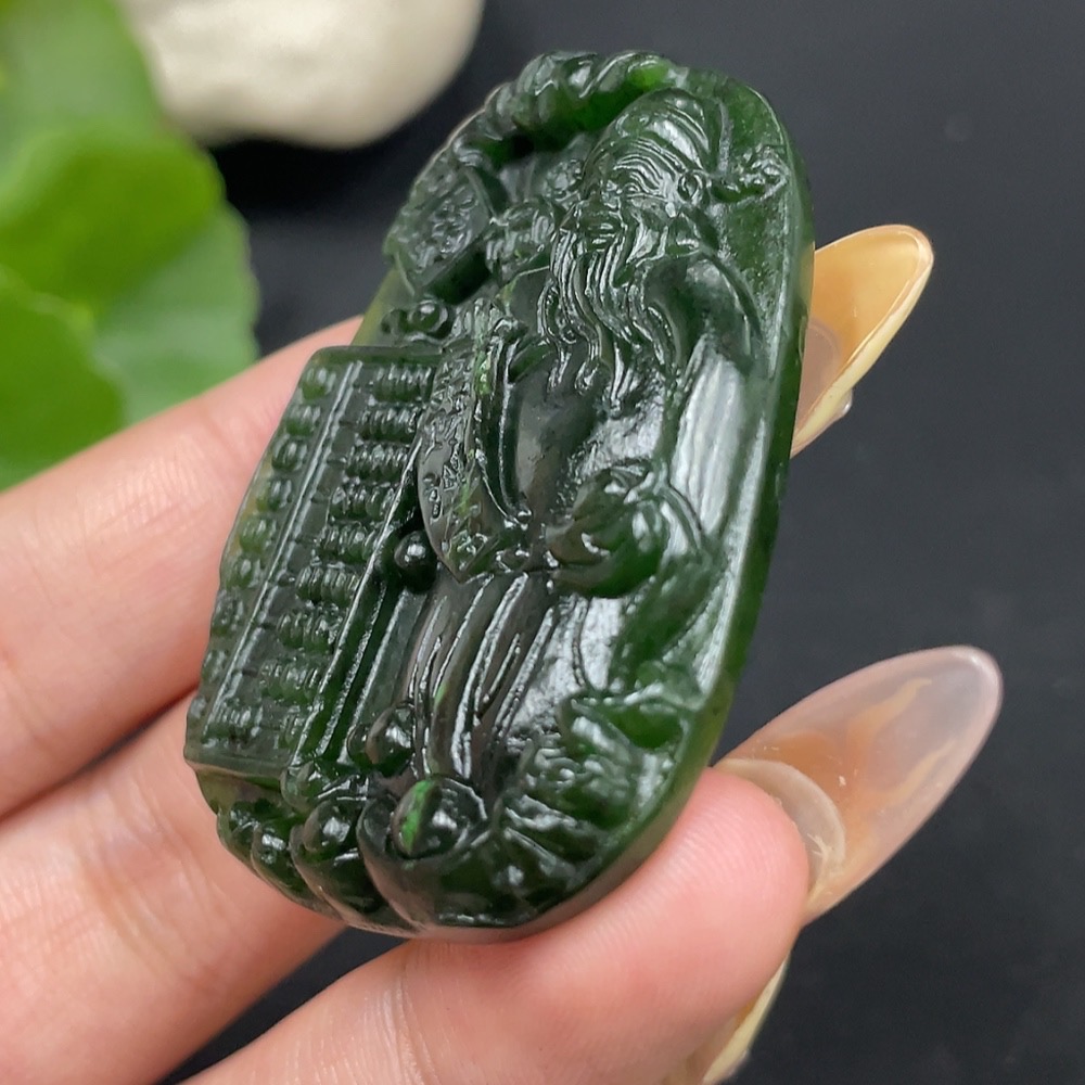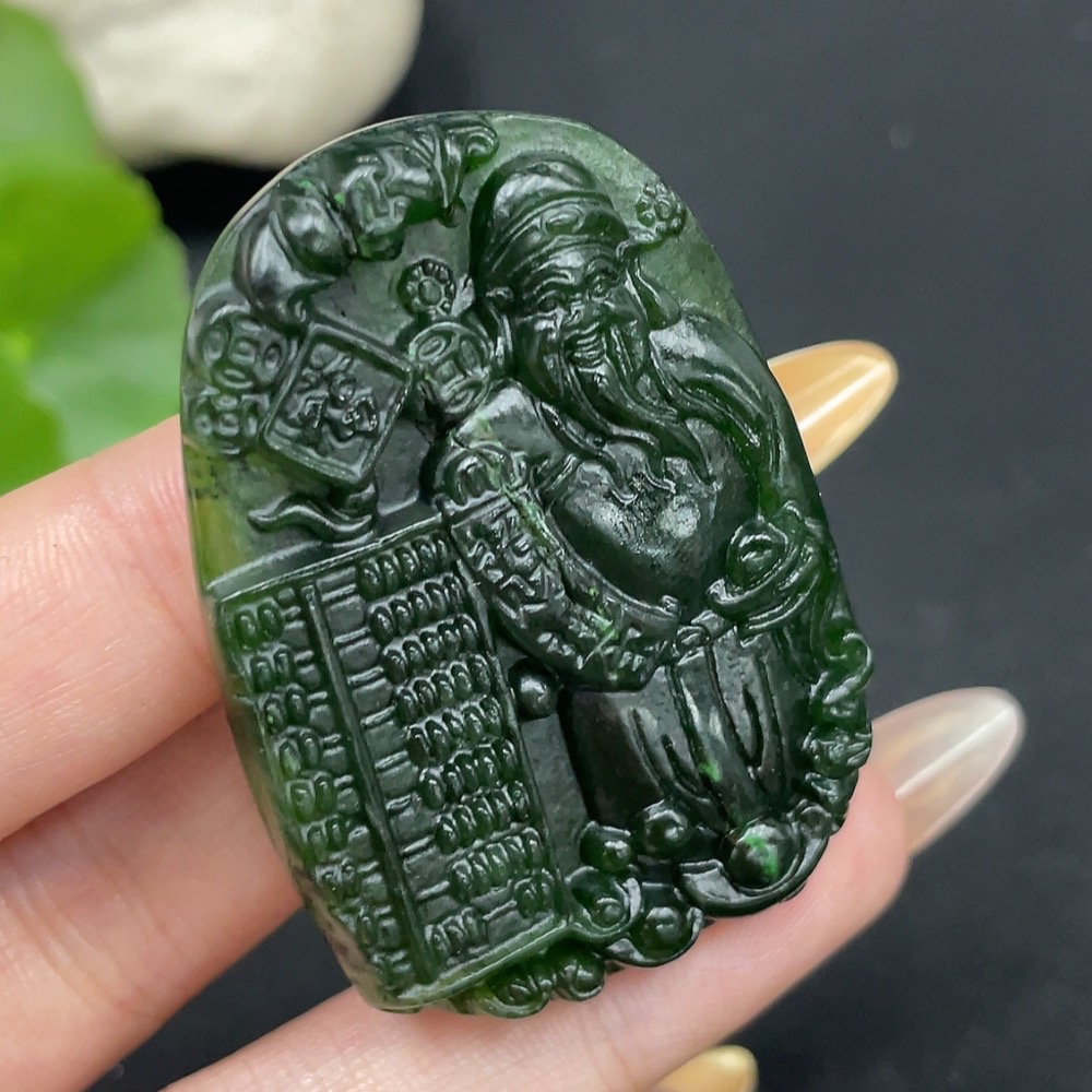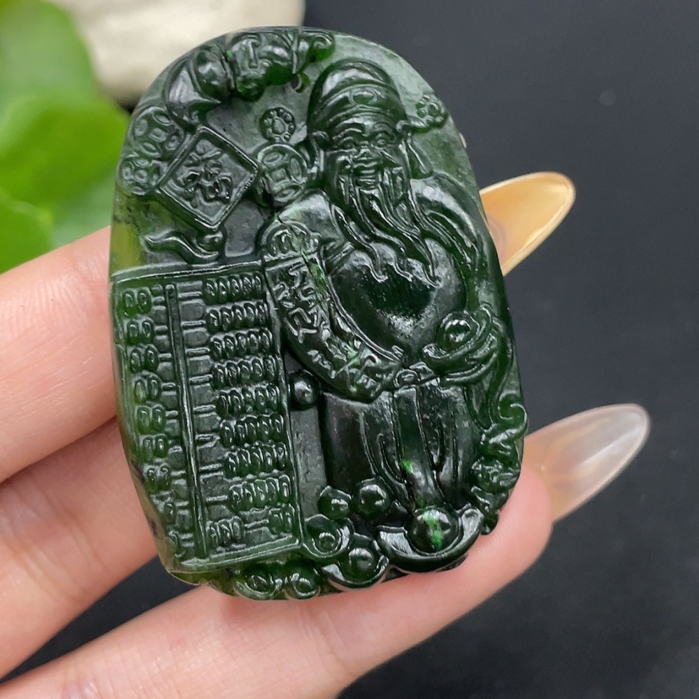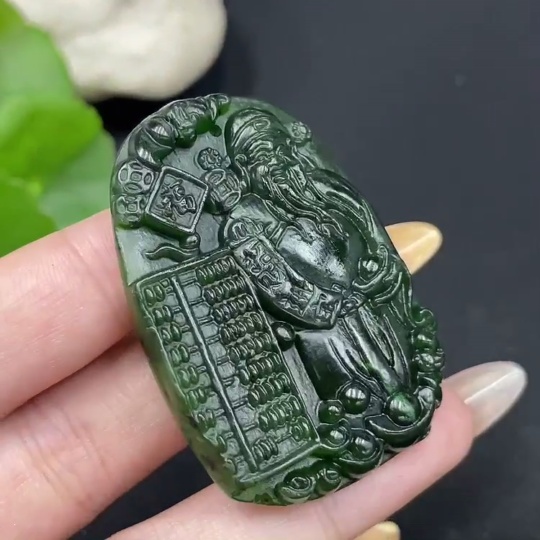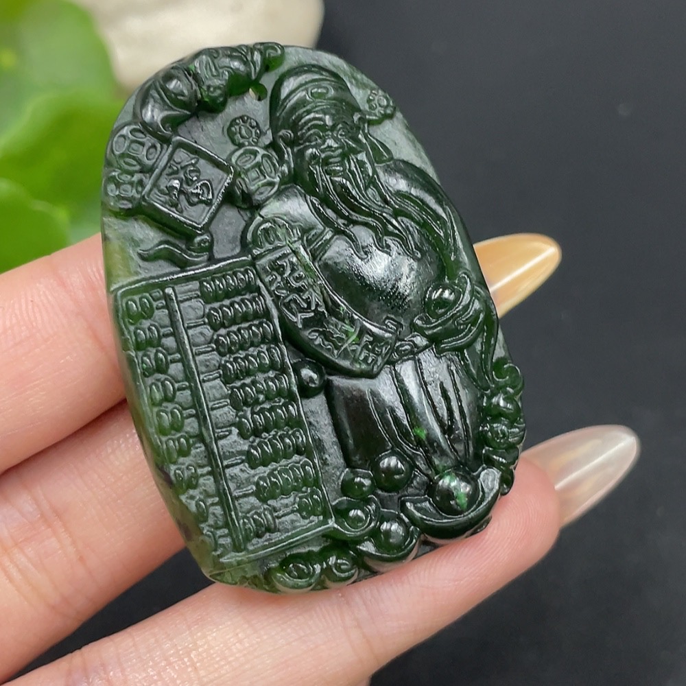 Hetian Jade Pendant God of Wealth with Crack Total Weight Approx. 23.3g