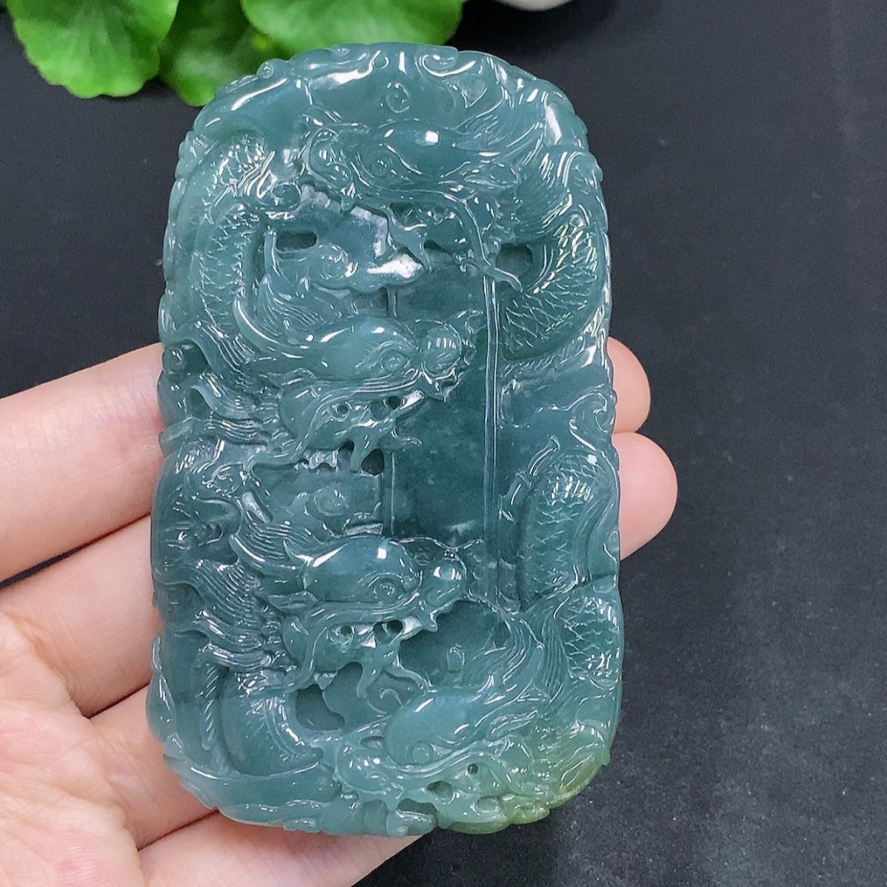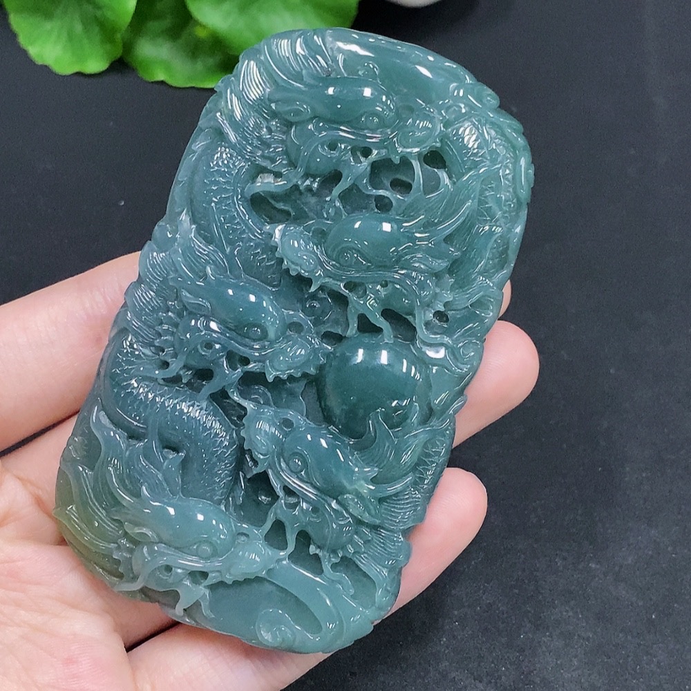 Jadeite Nine Dragons Protecting the Owner Pendant