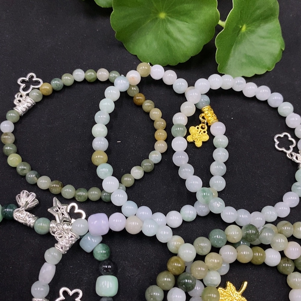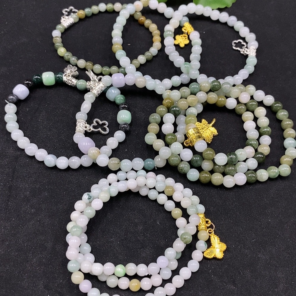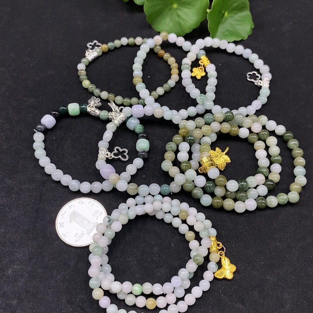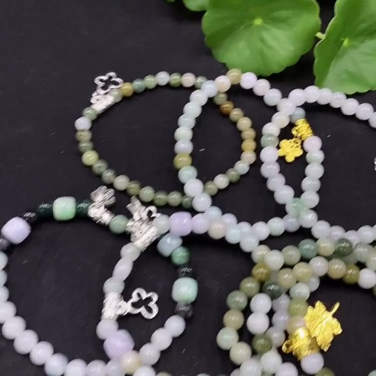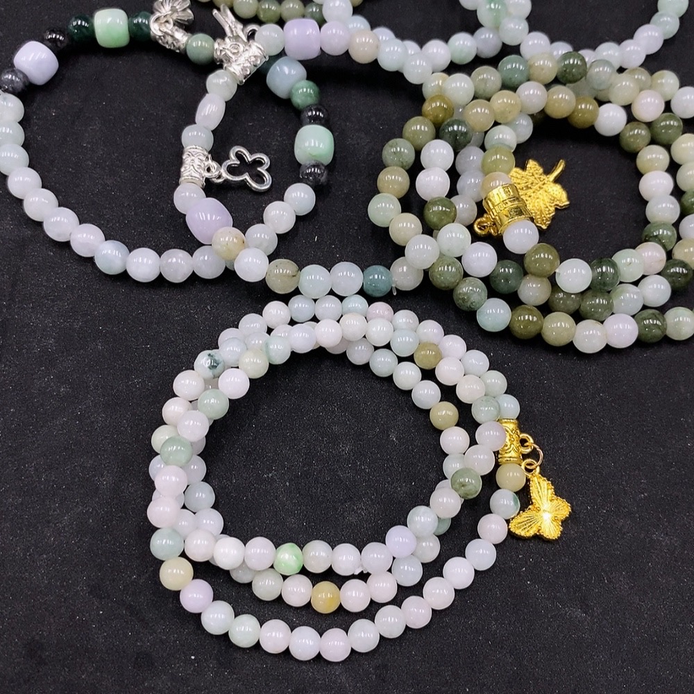 Jadeite Bead Necklace Non-Gold Setting Color Origin Undetermined