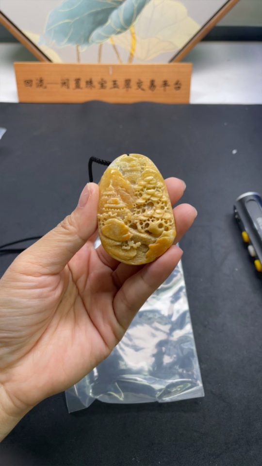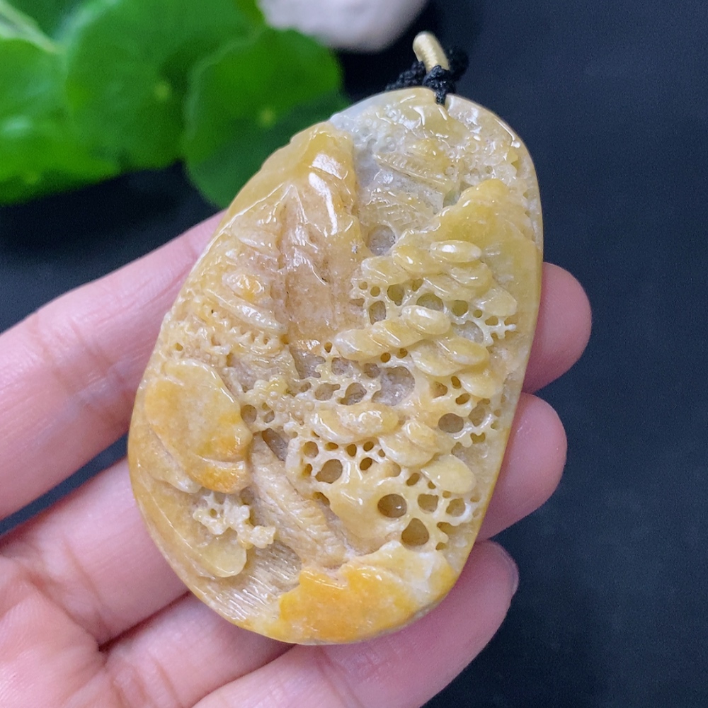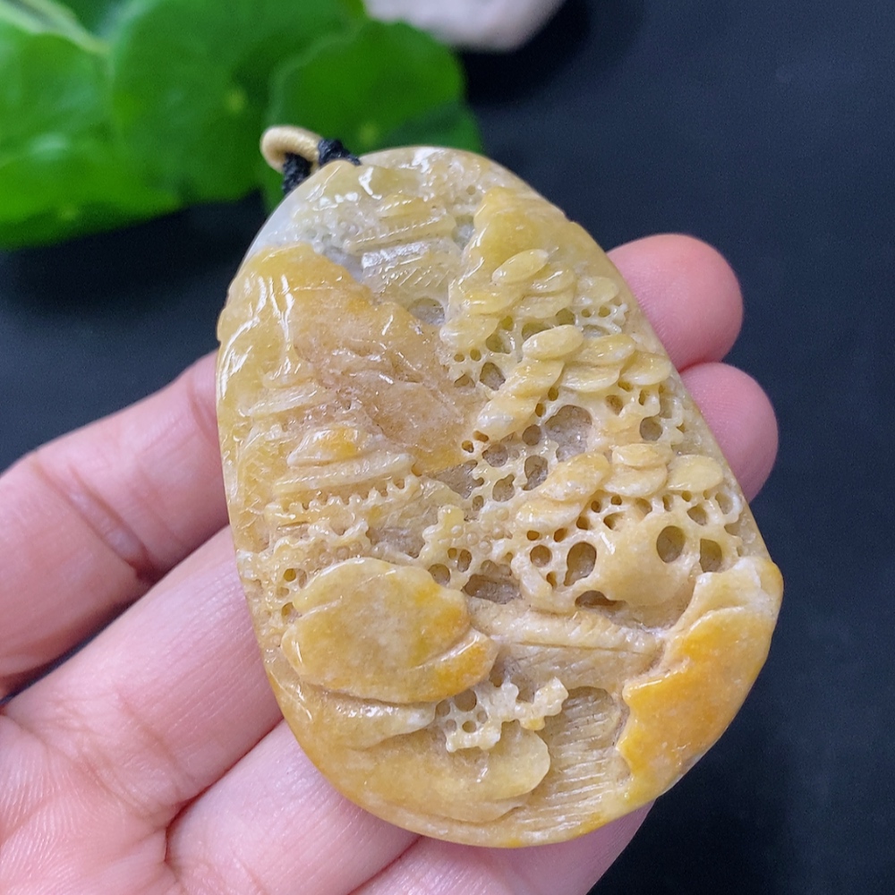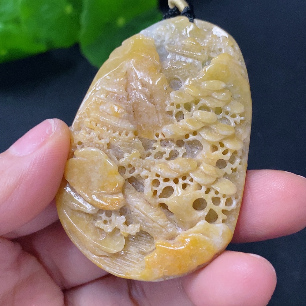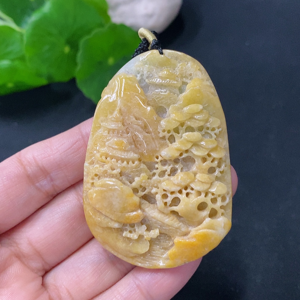 Jadeite Pendant Landscape with Cord Total Weight Approx. 43.06g