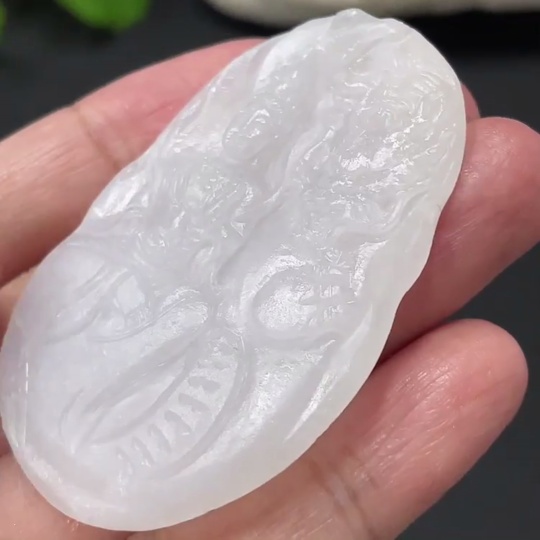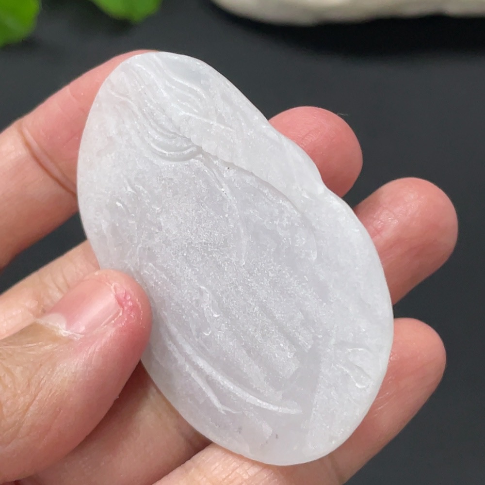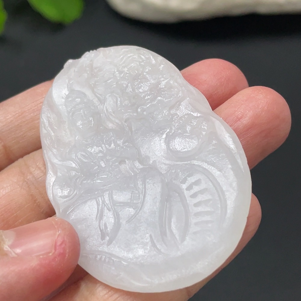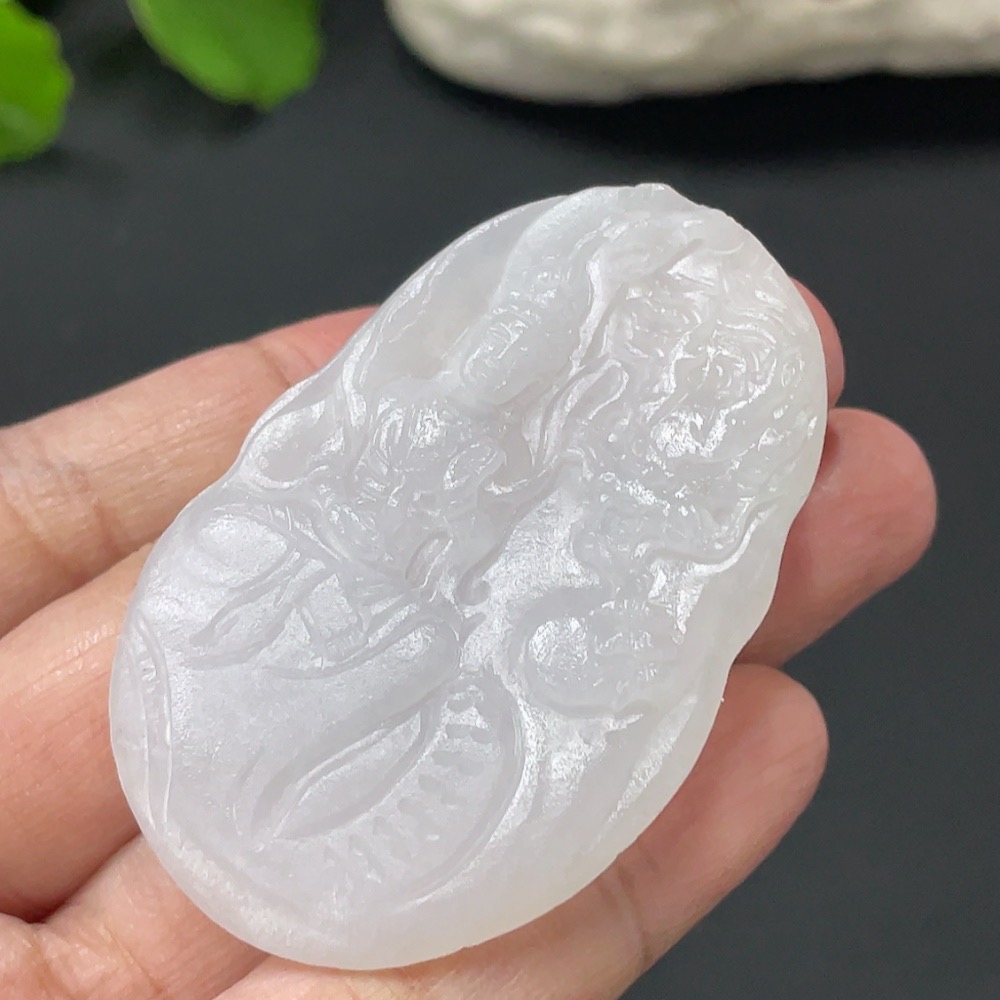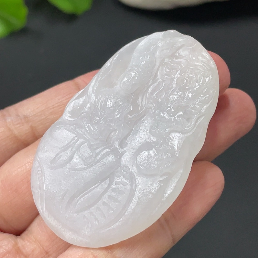 Jadeite Unpolished Imperial Dragon Guanyin Pendant