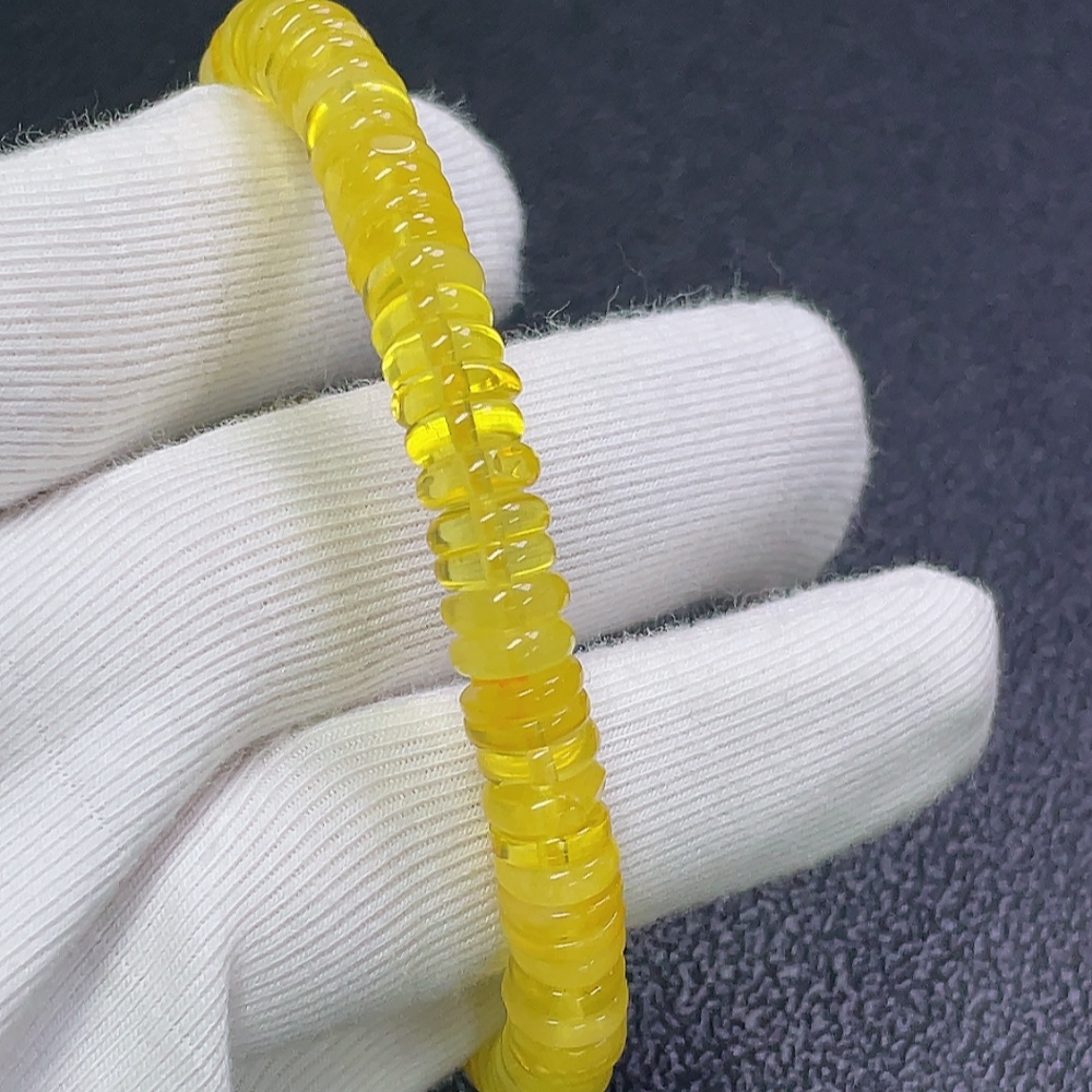 Amber Beeswax Bracelet, Total Weight Approx. 7.15g, Bead Size 7mm