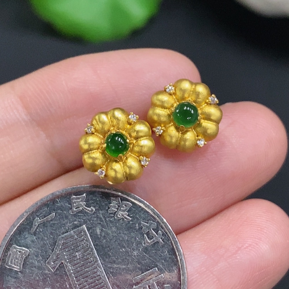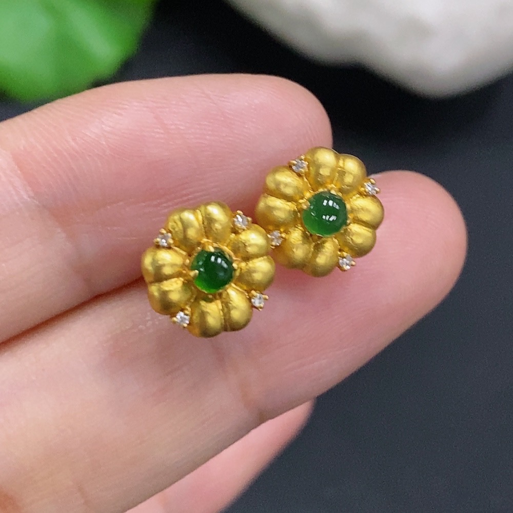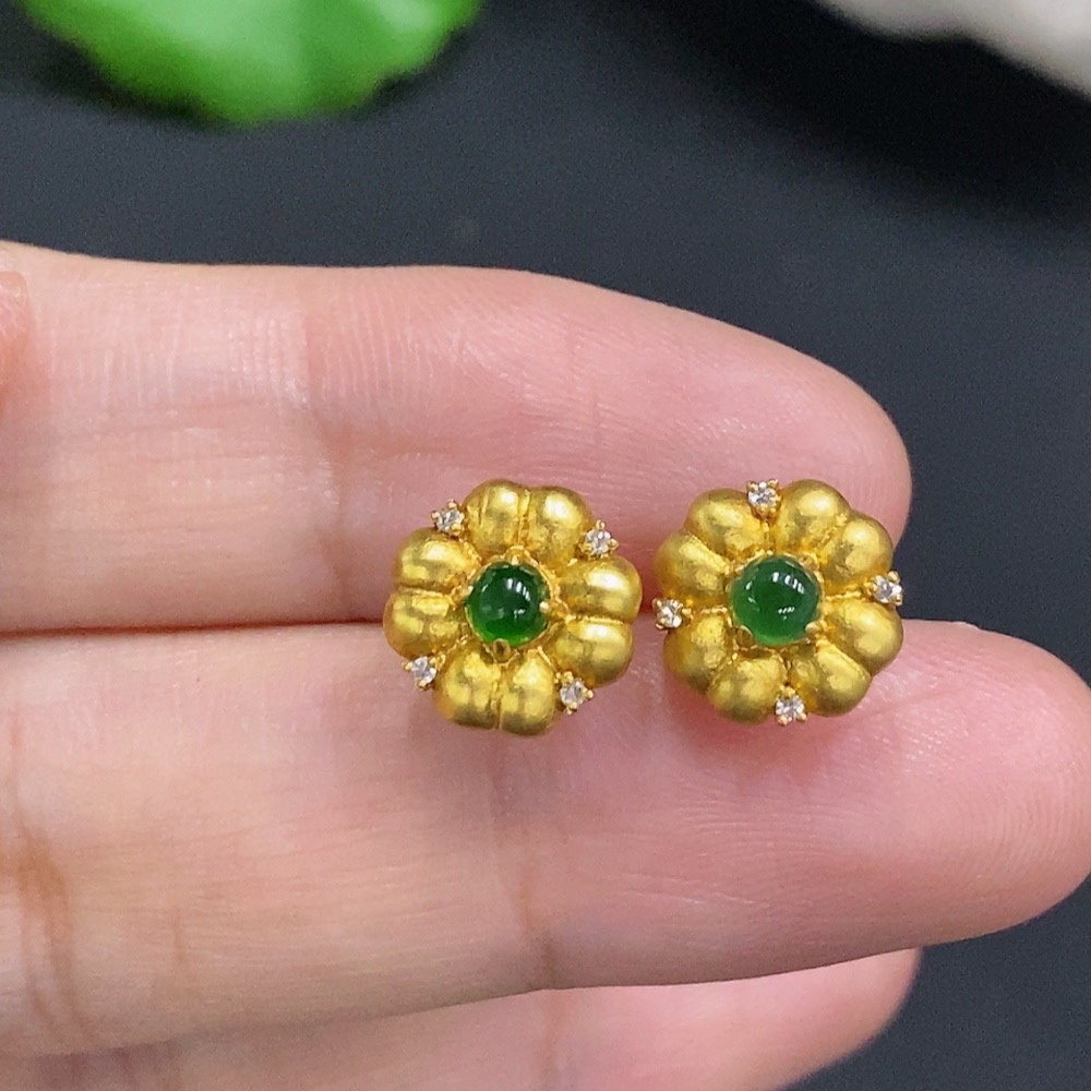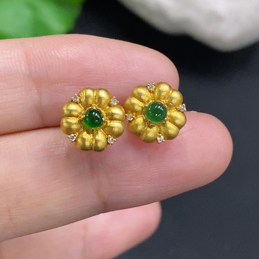 Jadeite Cabochon Stud Earrings 18k Gold Total Weight Approx.1.2g