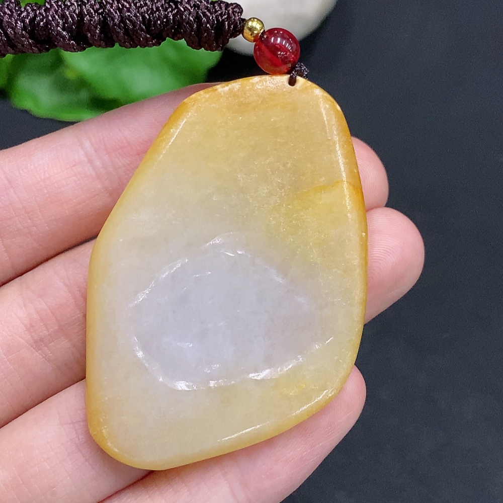 Jadeite freeform pendant Total weight including string approx. 27.2g (Color origin undetermined)