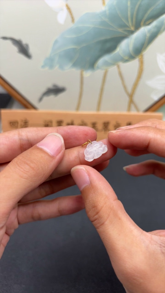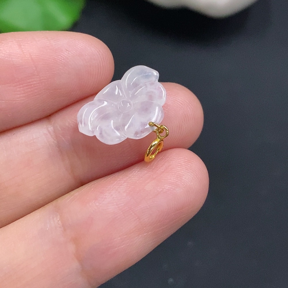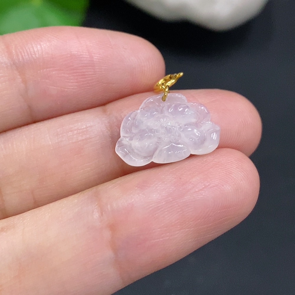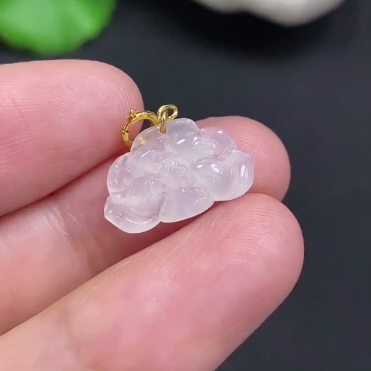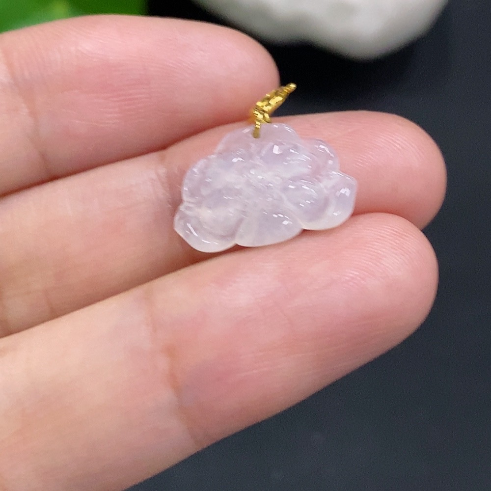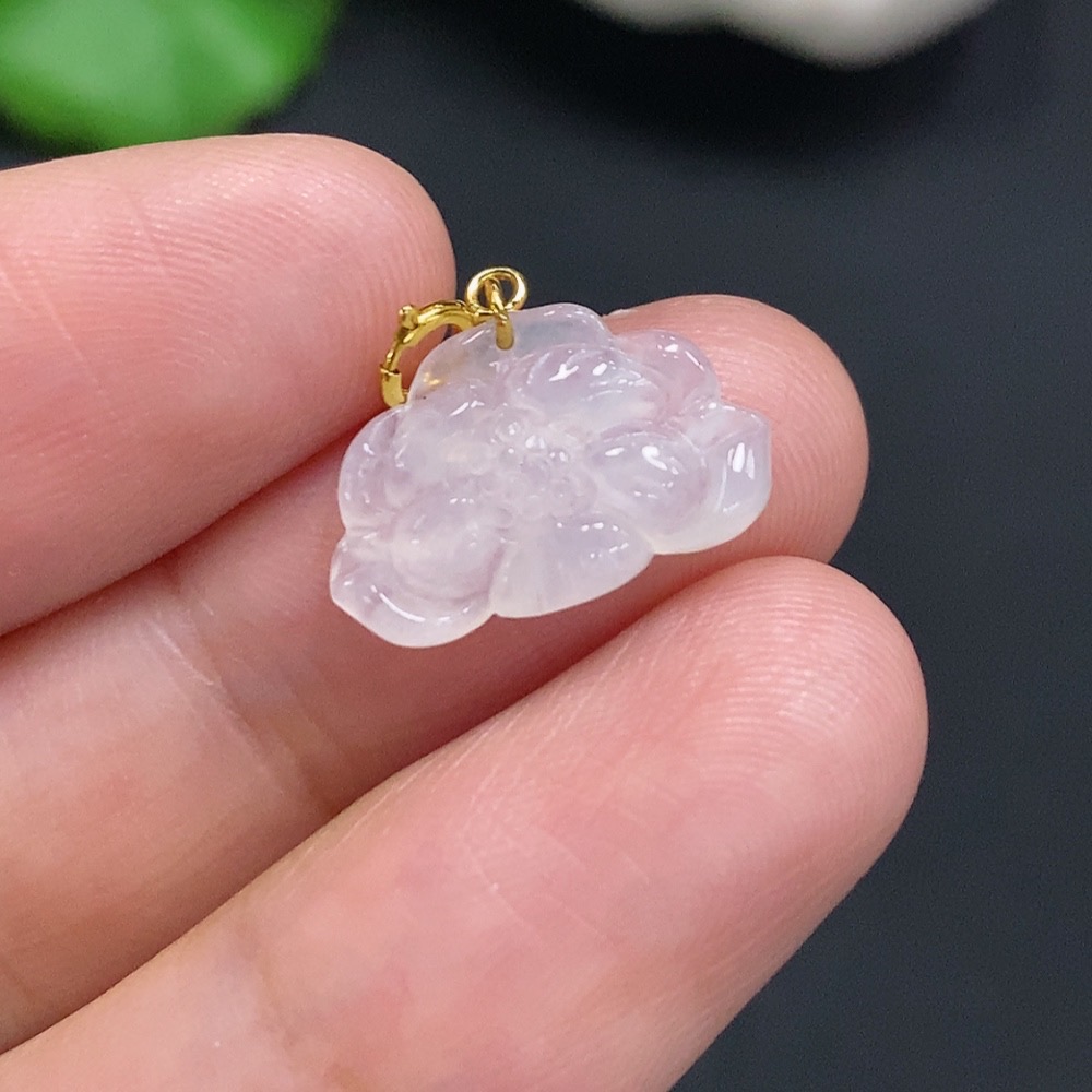 Jadeite Lotus Pendant with 18K Gold Clasp, Total Weight Approximately 0.6g
