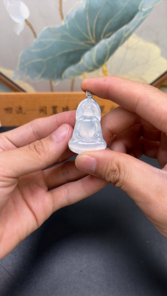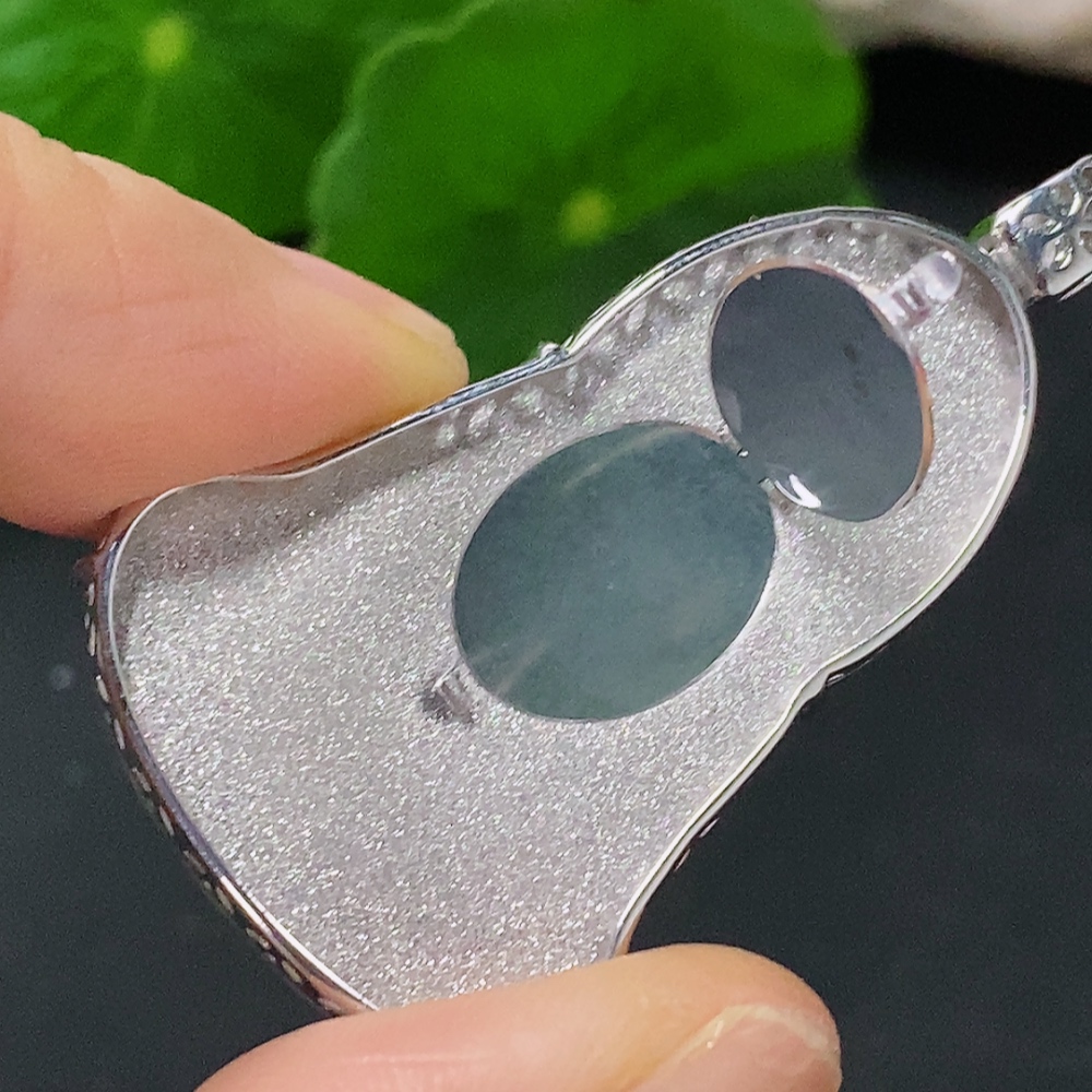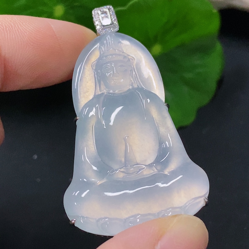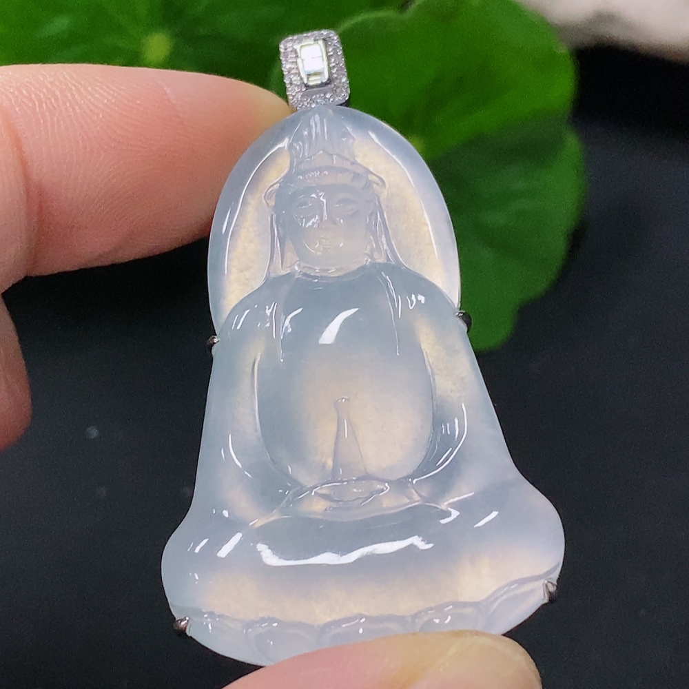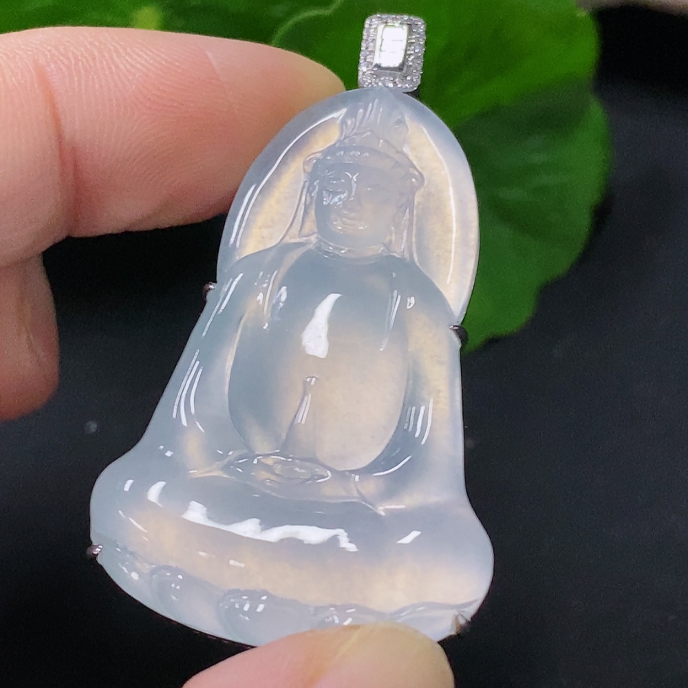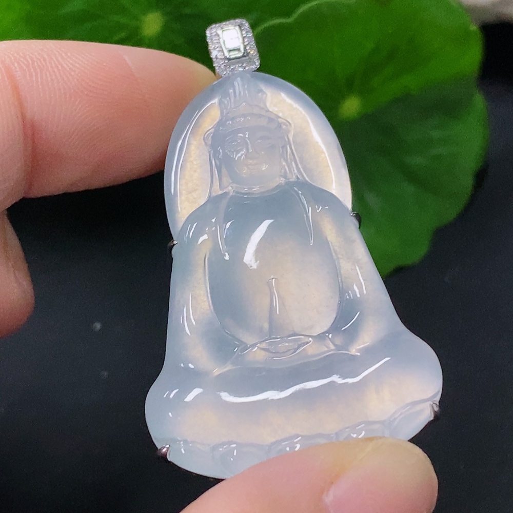 Jadeite inlaid Guanyin pendant 18k with diamond, total weight about 9.74g