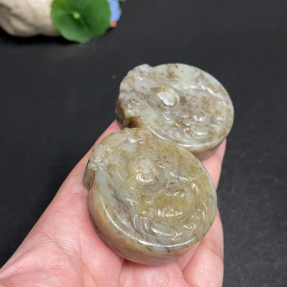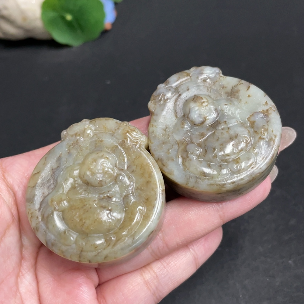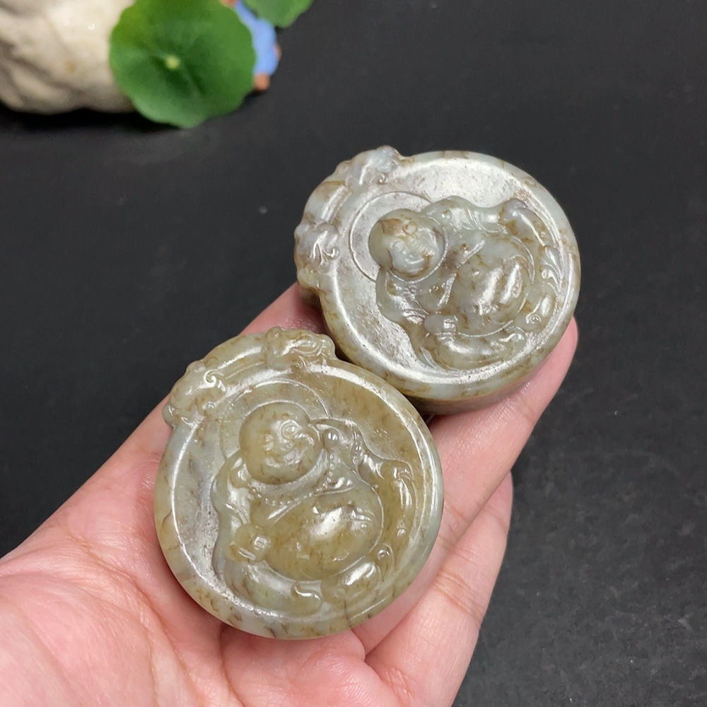 Hetian Jade Pendant, Buddha Figure, Containing Other Mineral Components, Total Weight Approx. 134.6g