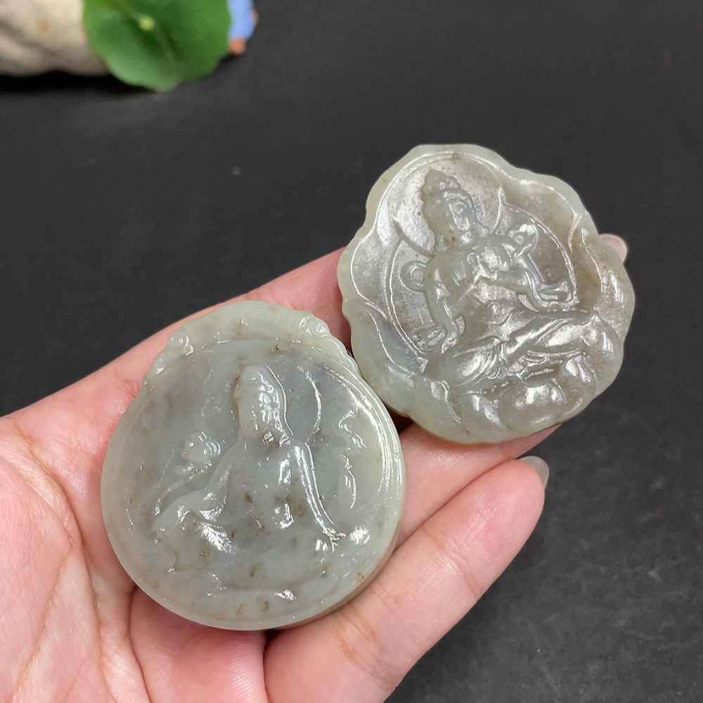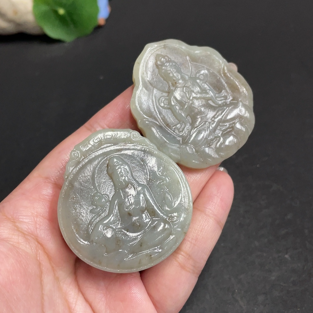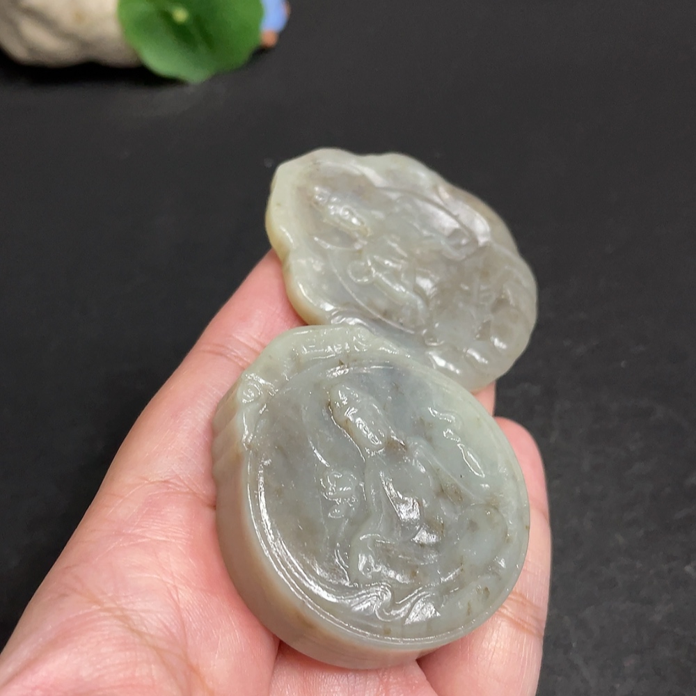 Hetian Jade Pendant Guanyin with Other Mineral Components Total Weight Approx. 95.9g