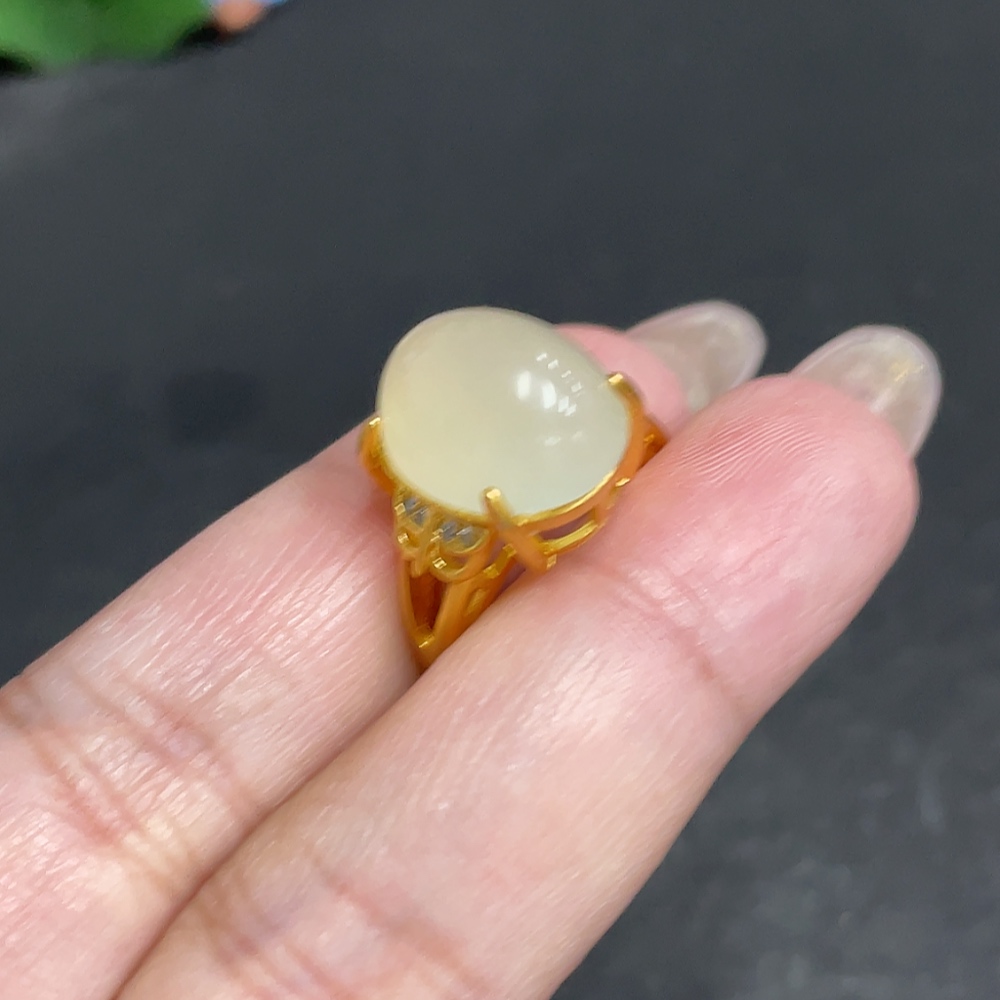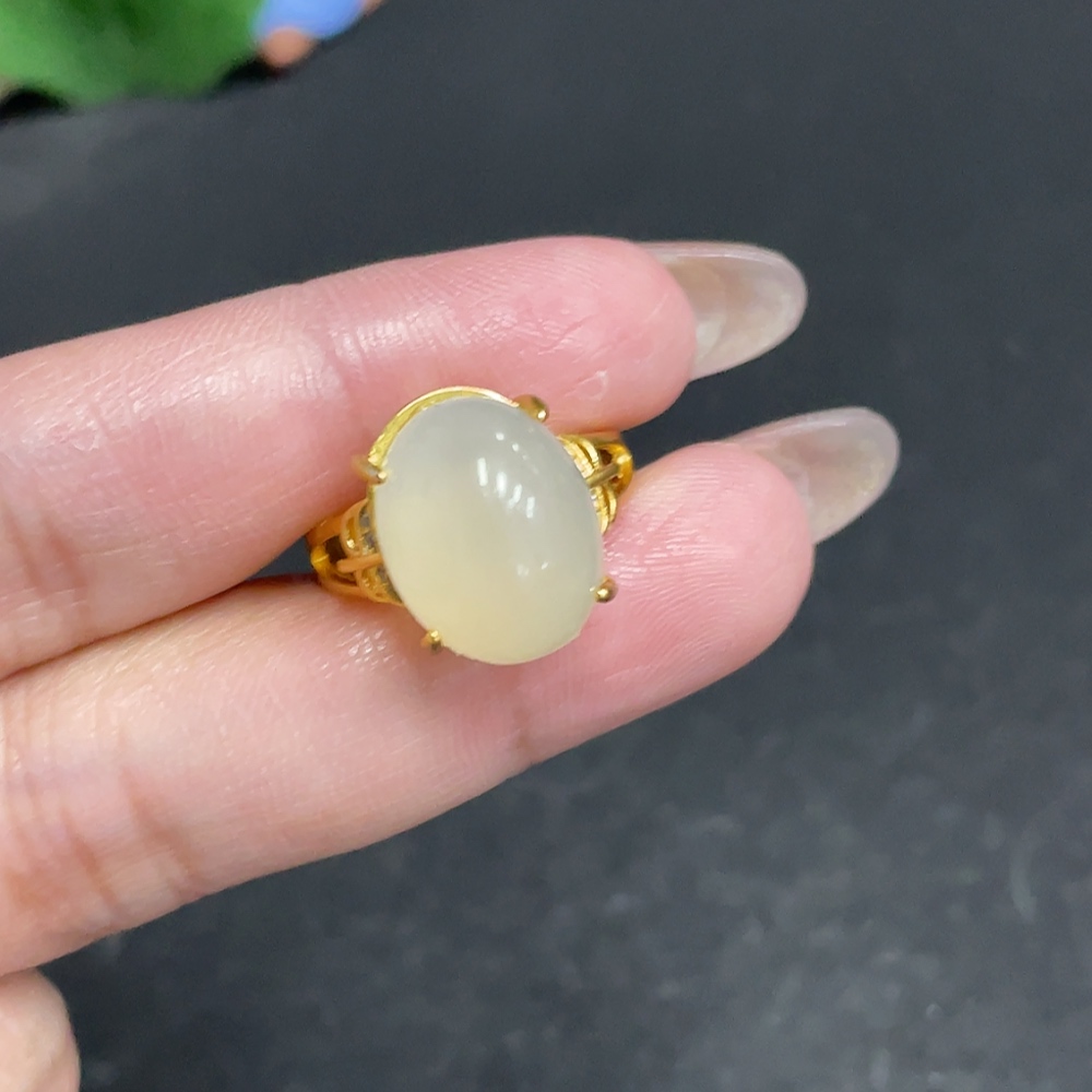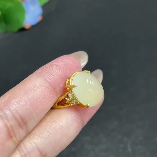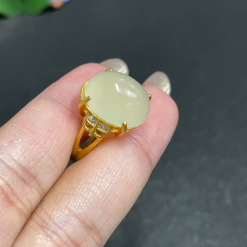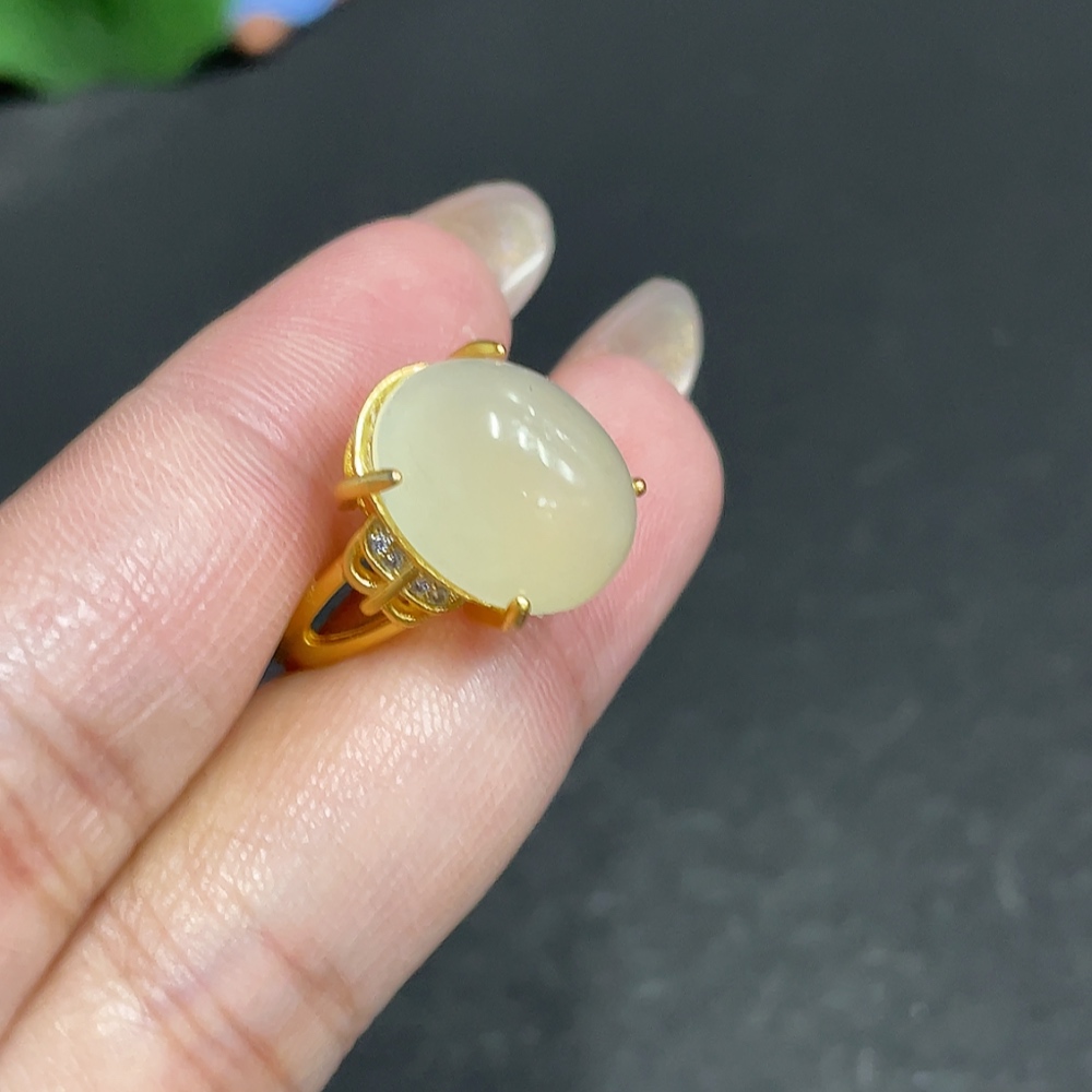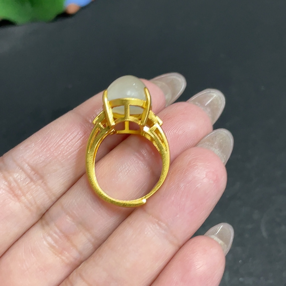 Xiuyu (serpentine jade) inlaid adjustable ring