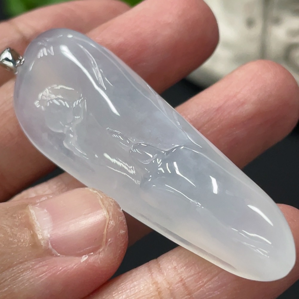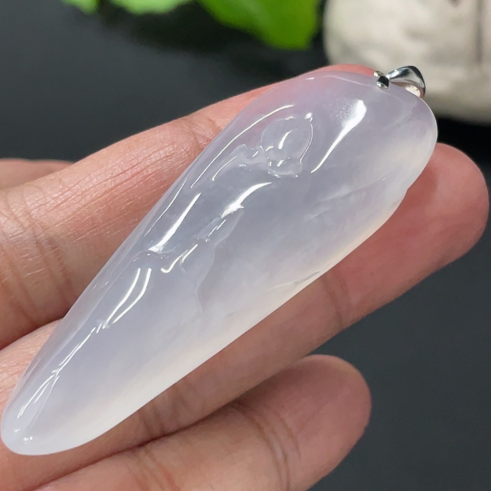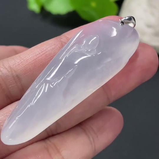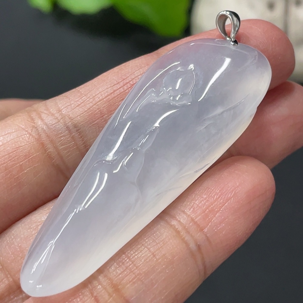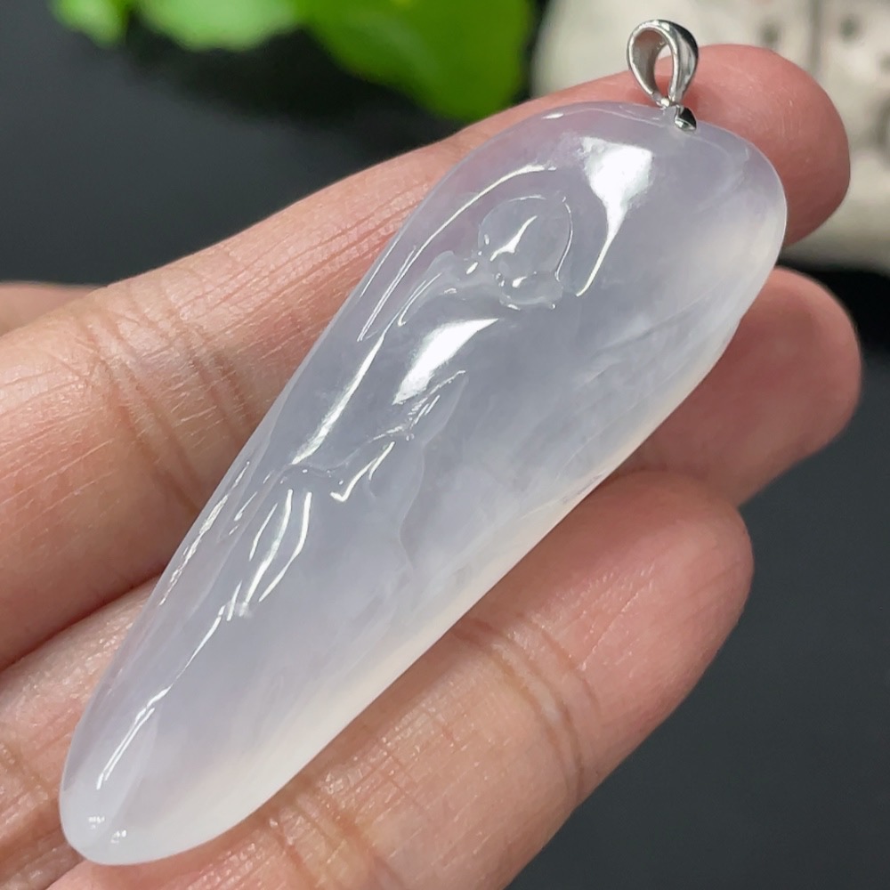 Jadeite Formless Guanyin Pendant with 18K Gold Clasp, Total Weight Approx. 13.6g