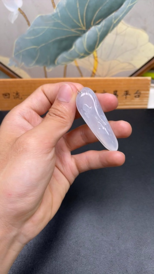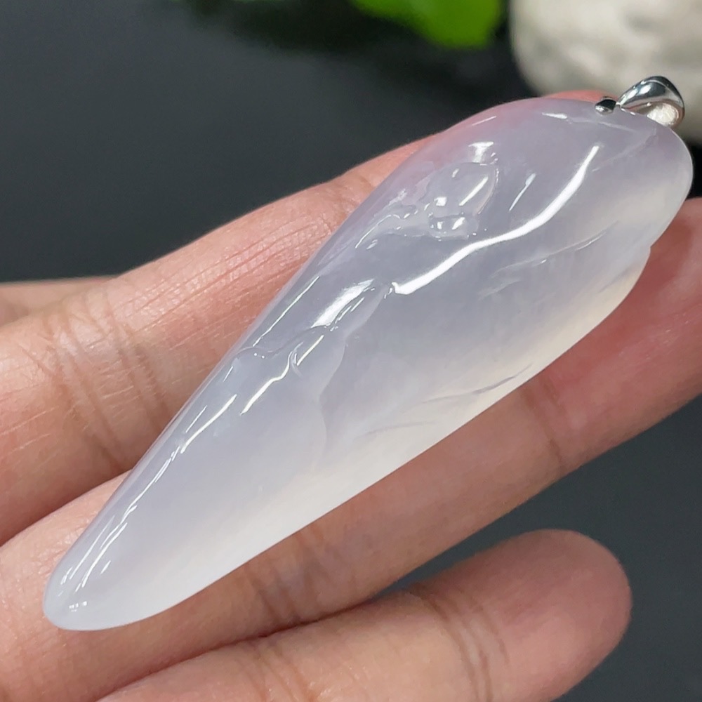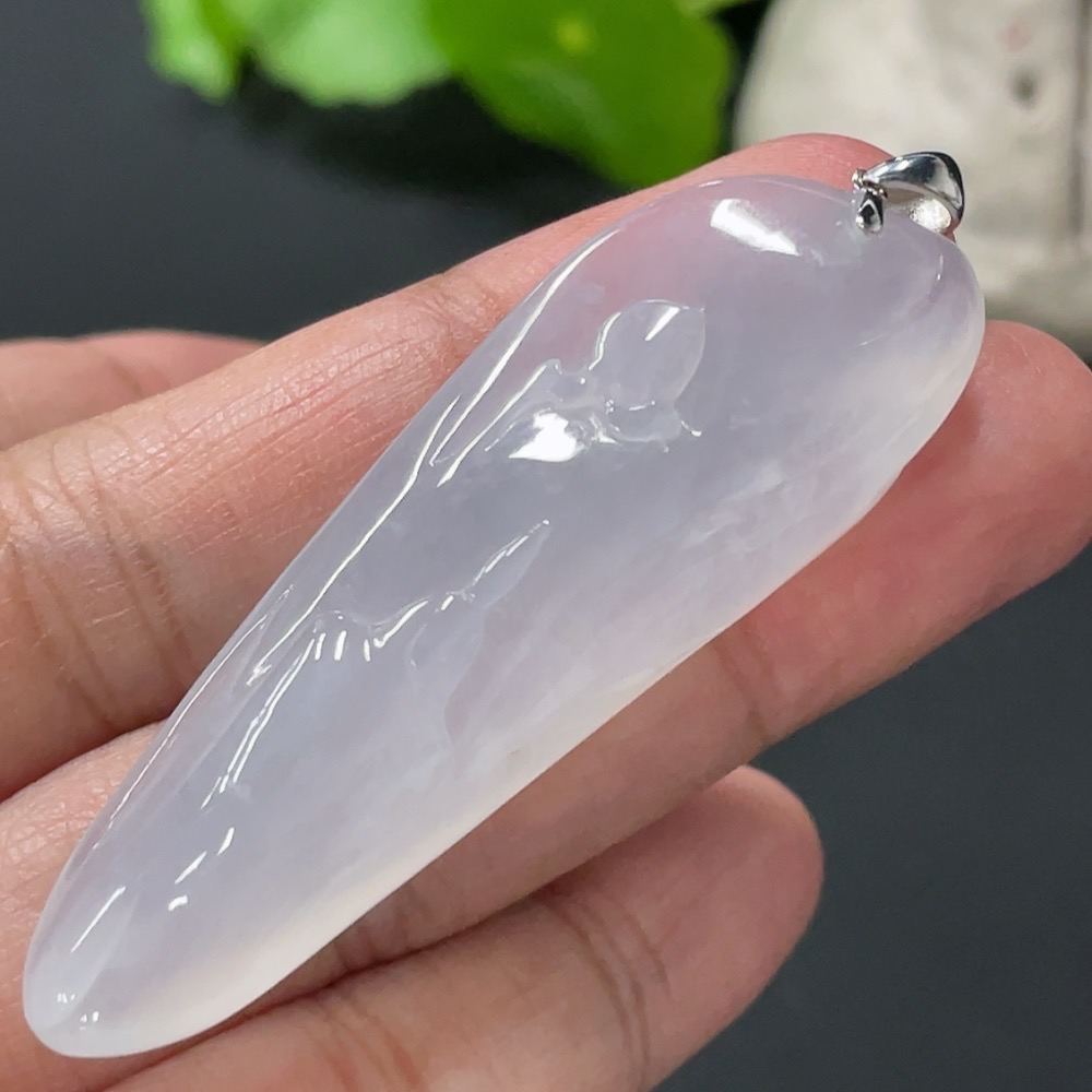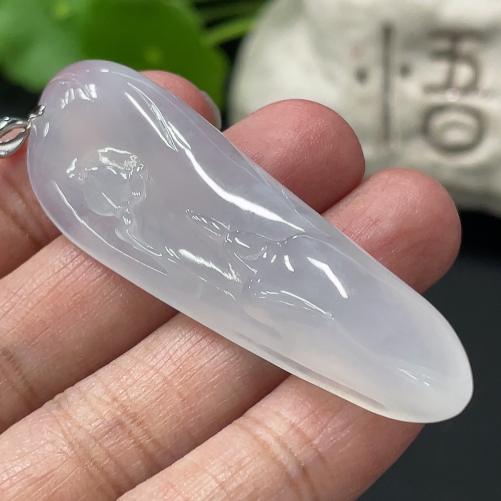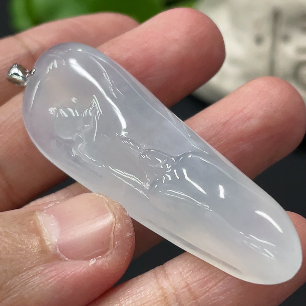 Jadeite Formless Guanyin Pendant with 18K Gold Clasp, Total Weight Approx. 13.6g