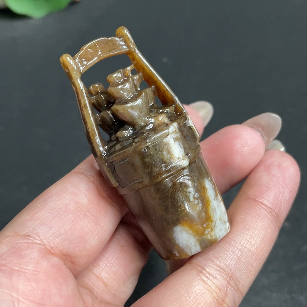 Hetian Jade Pendant, Wealth and Prosperity, Contains Other Mineral Components, Total Weight Approx. 47.4g
