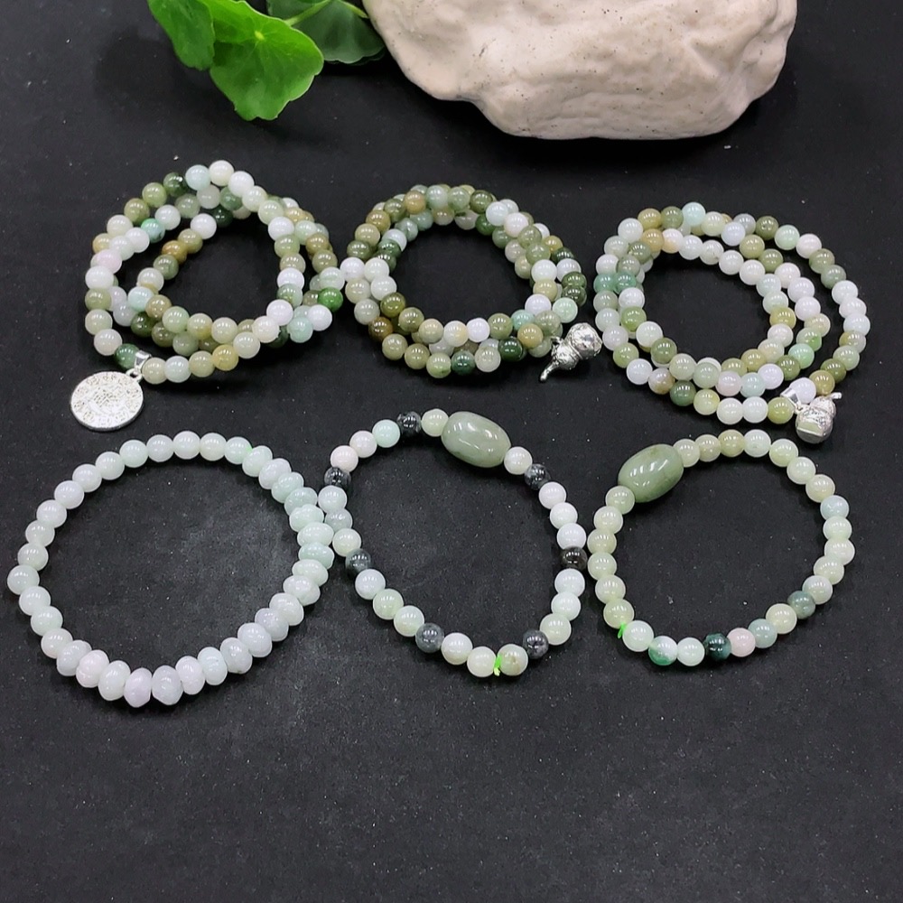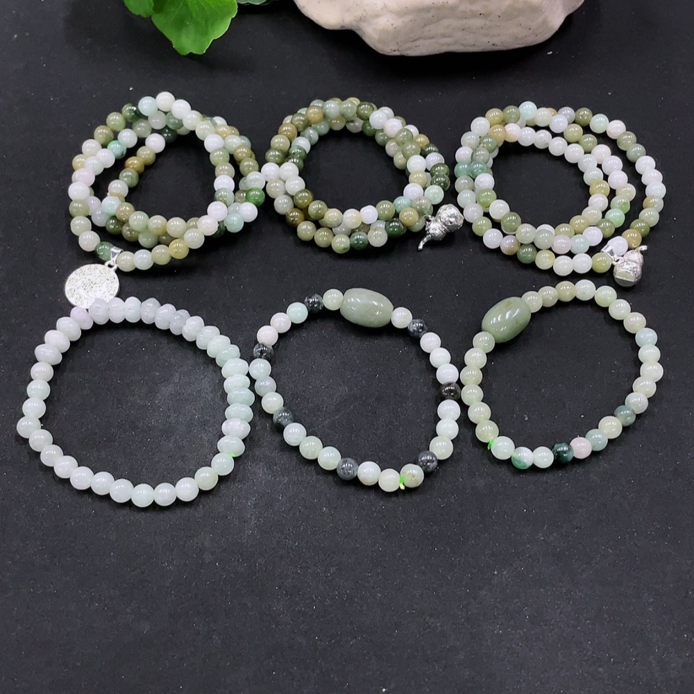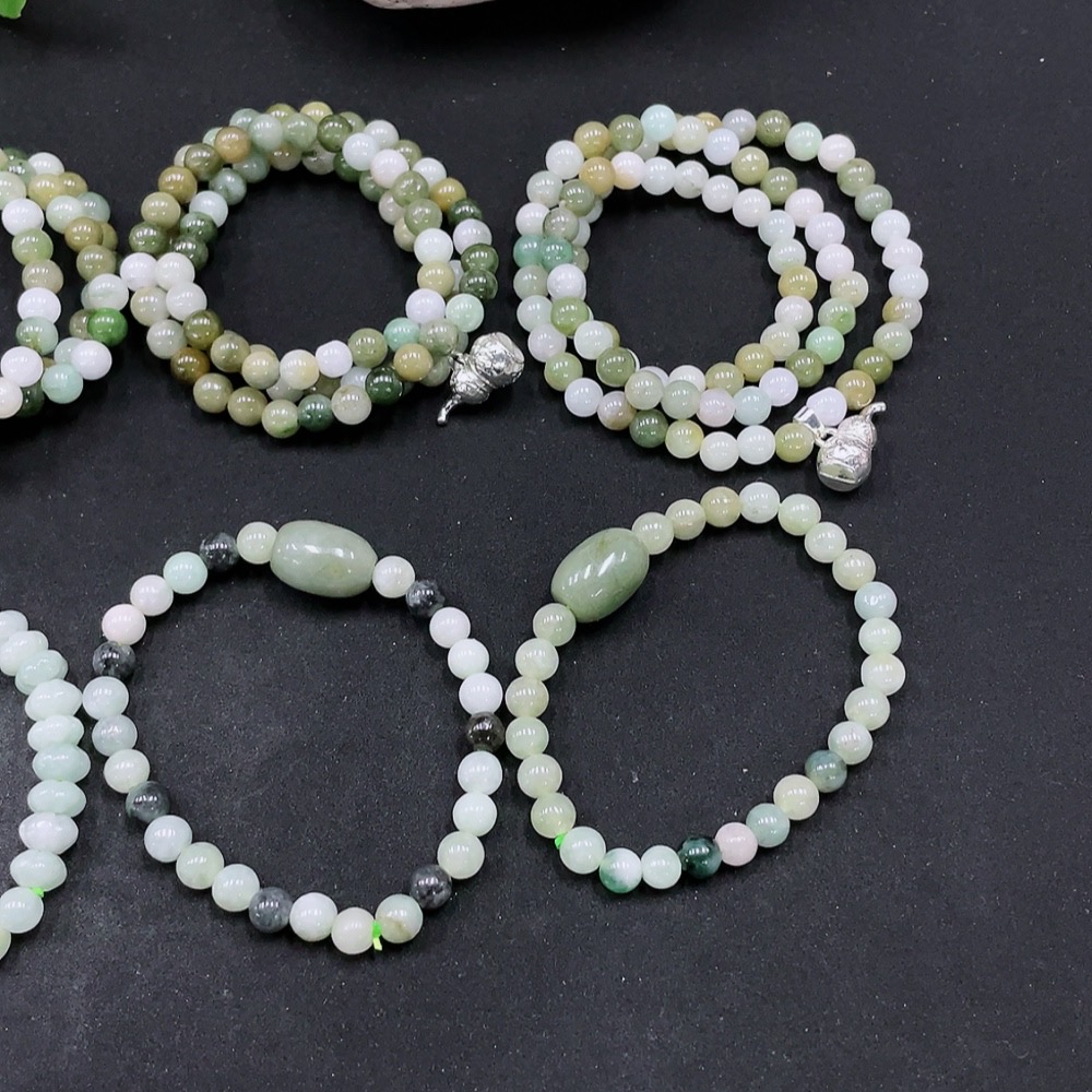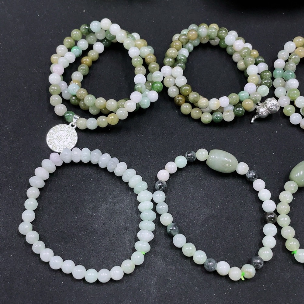 Trezaar - Jadeite Beads Sell as a Lot (Non-Gold Inlaid)
