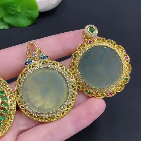 Jadeite Inlaid Pendant Sell as a Lot Non-Gold Inlaid