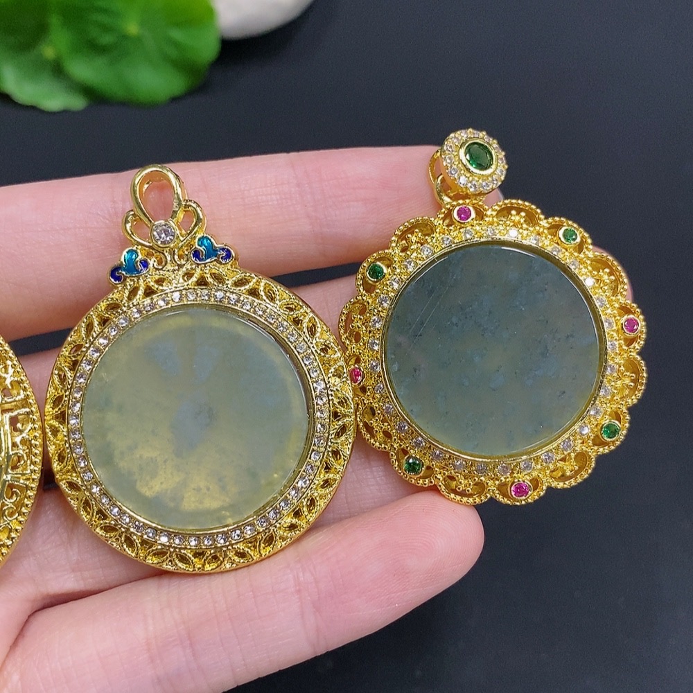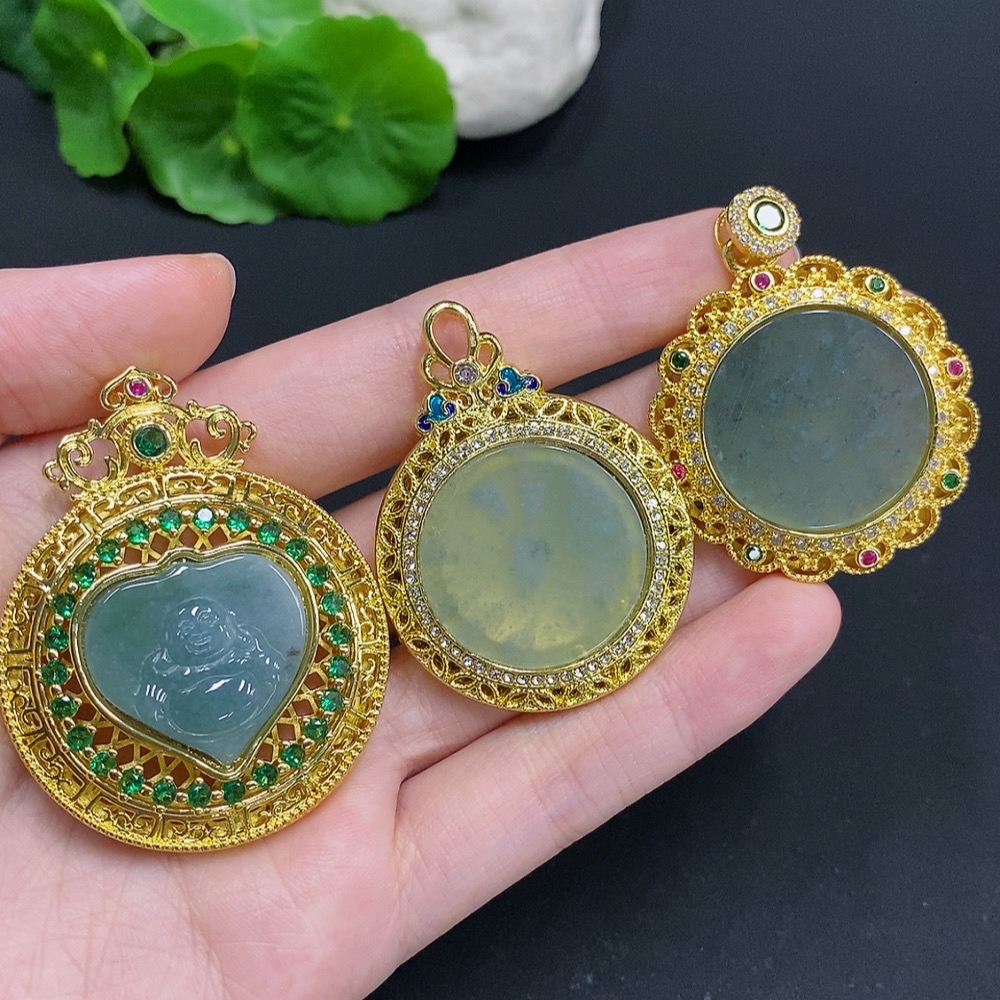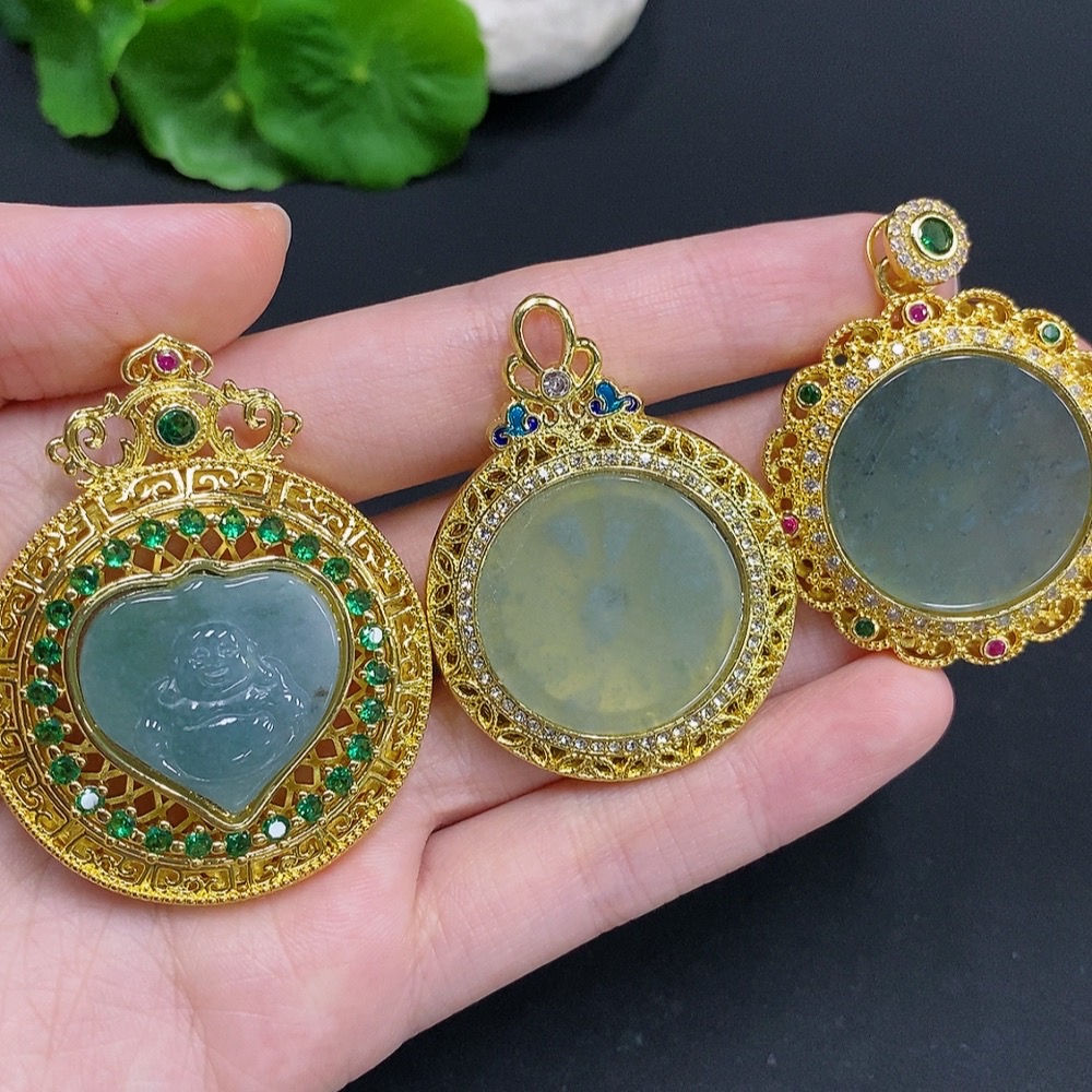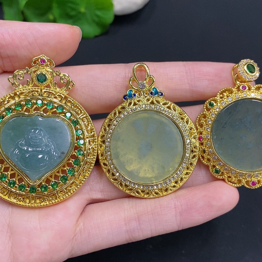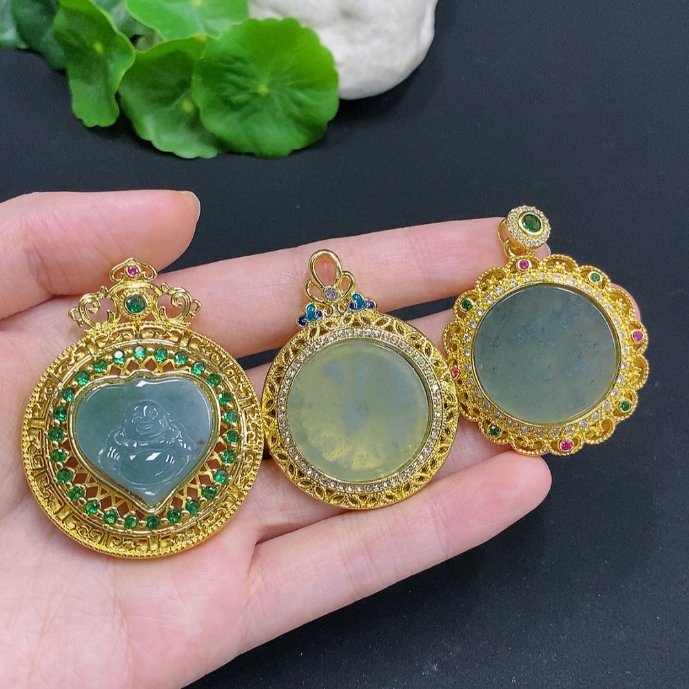 Jadeite Inlaid Pendant Sell as a Lot Non-Gold Inlaid