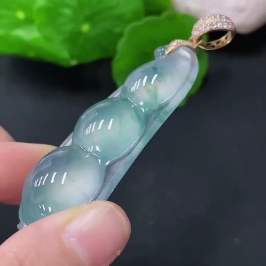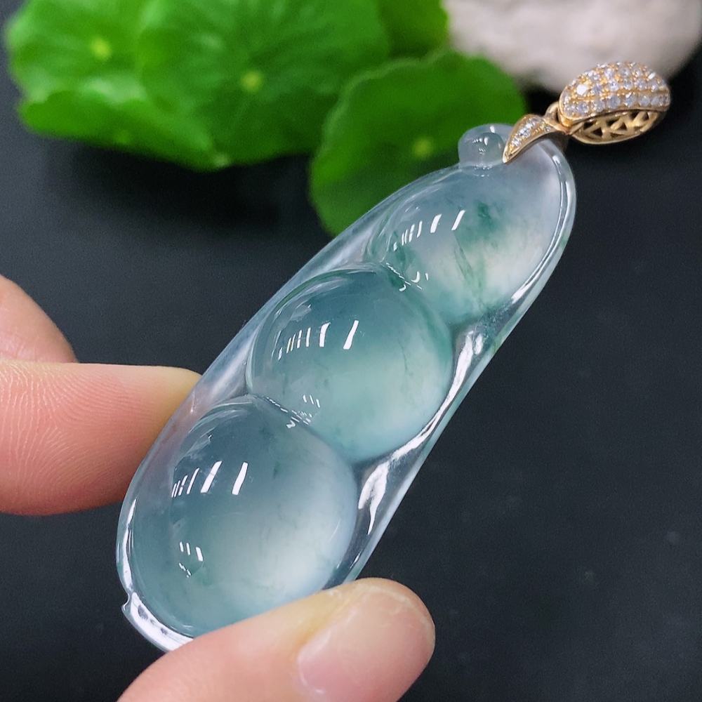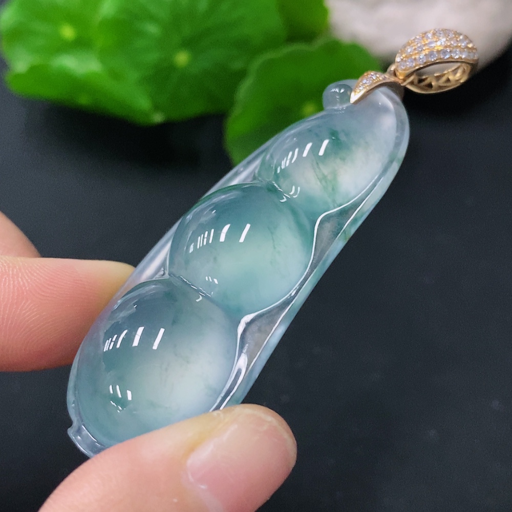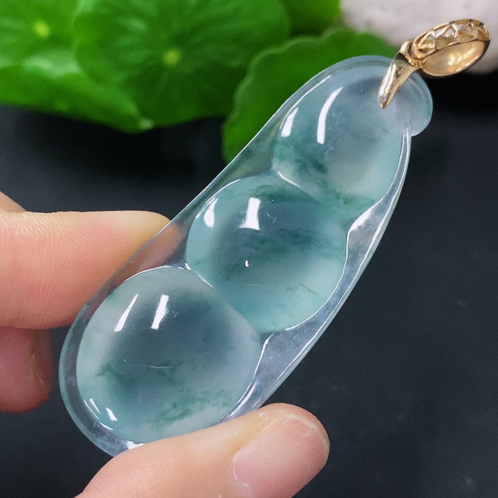 Jadeite Pendant Lucky Bean 18k Total Weight Approx. 20.4g