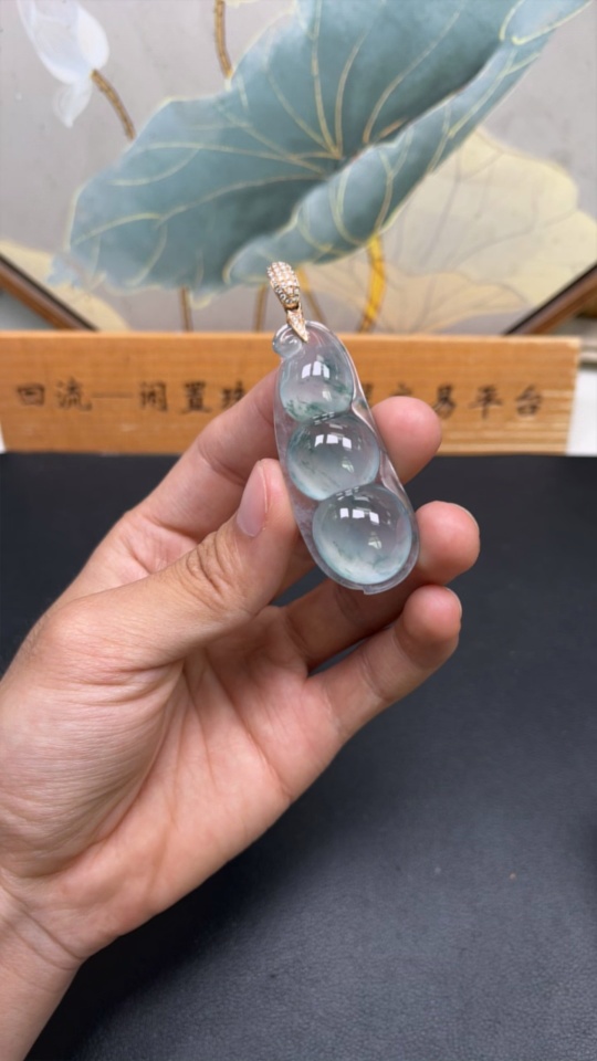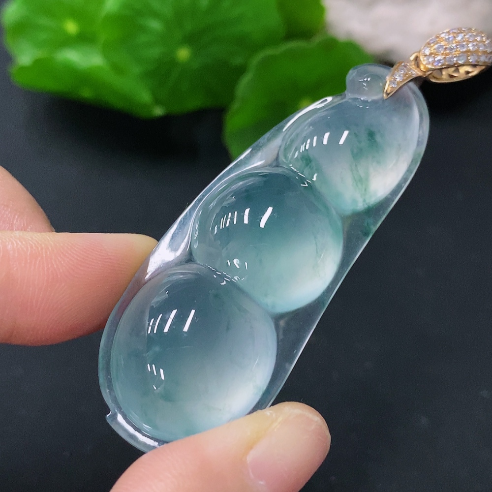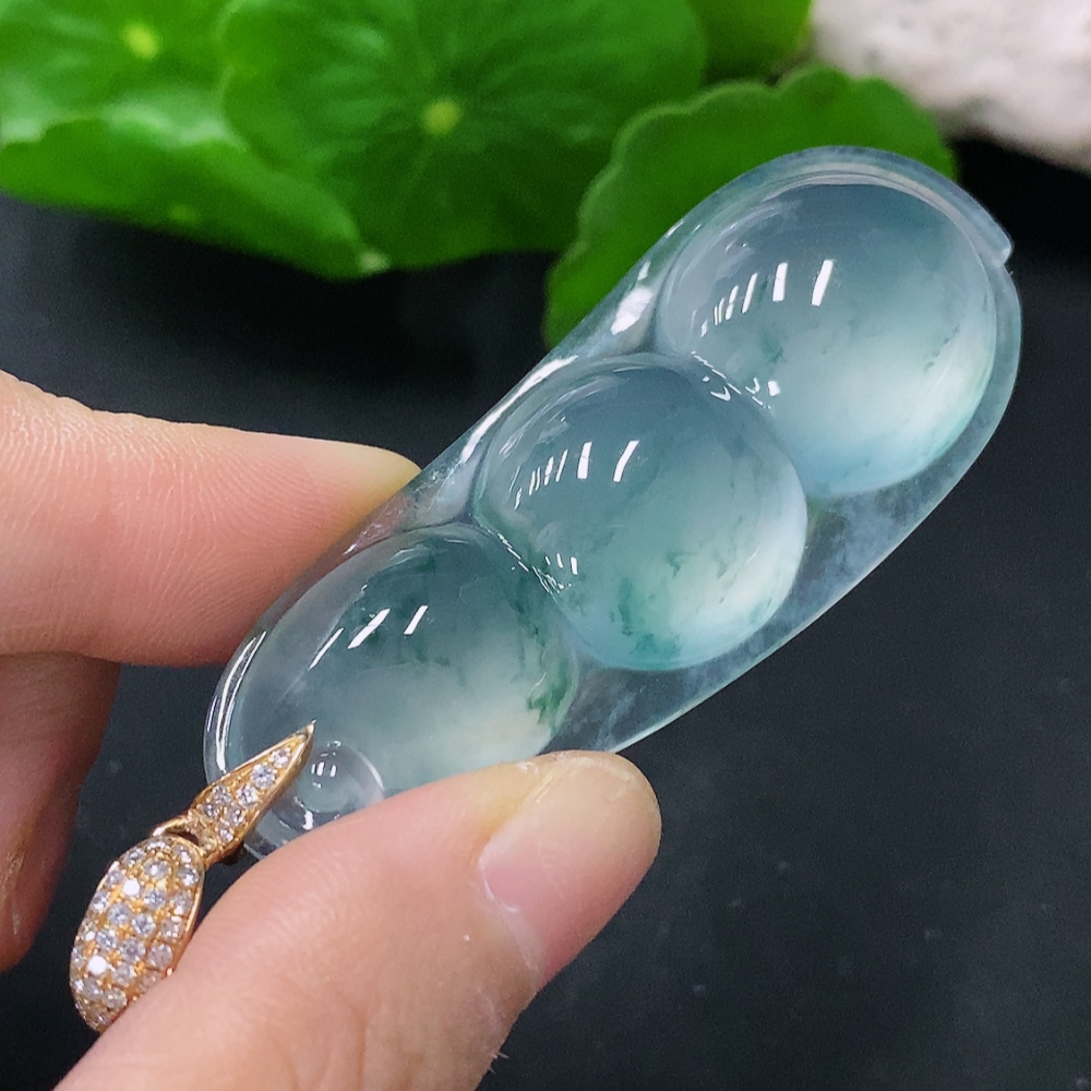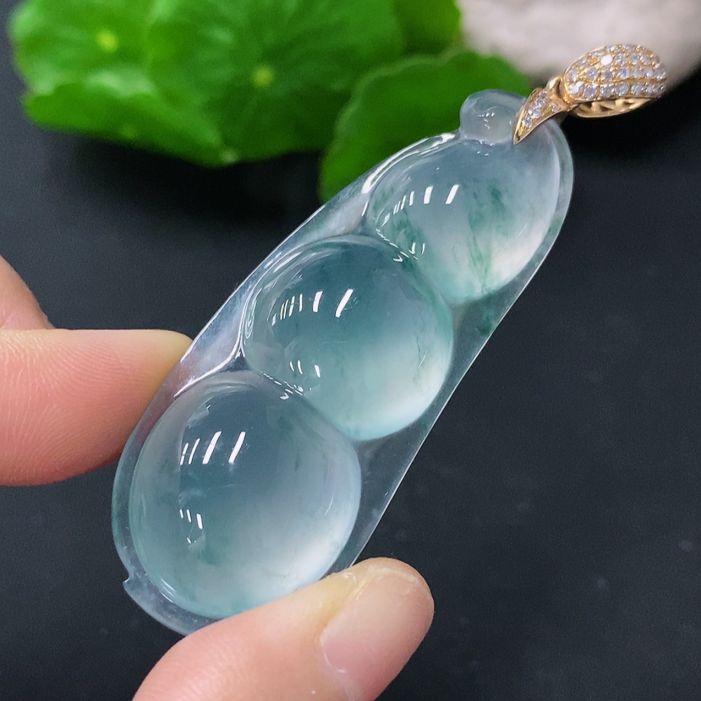 Jadeite Pendant Lucky Bean 18k Total Weight Approx. 20.4g