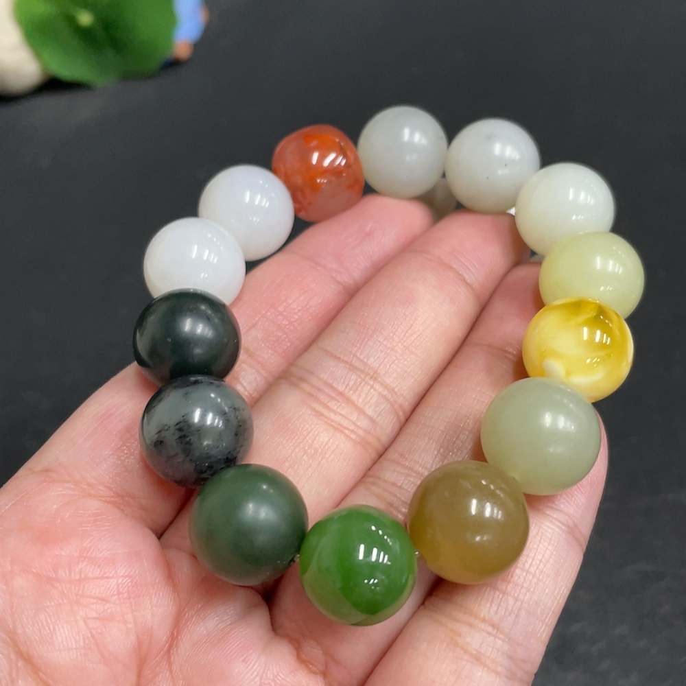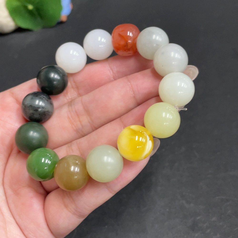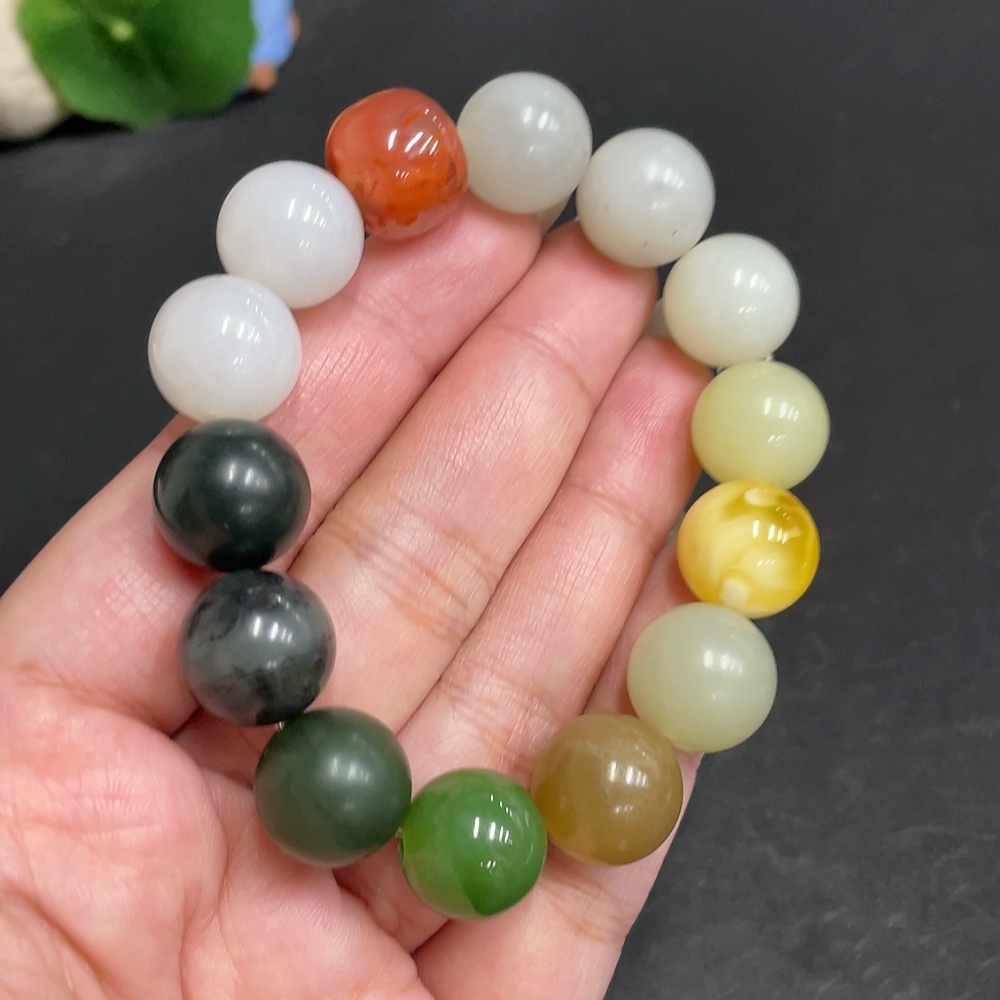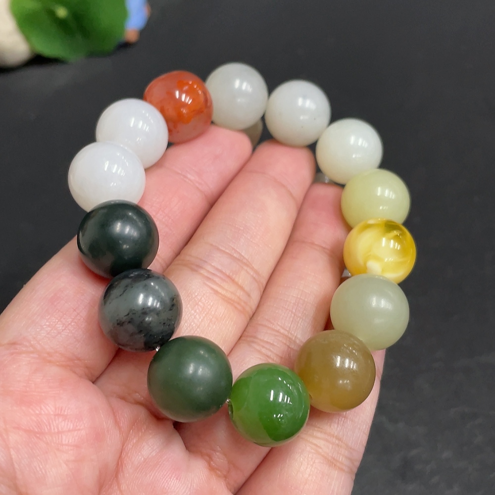 Hetian Jade Bracelet, Approx. 13.6mm, Total Weight Approx. 56.1g, with Southern Red Agate and Amber
