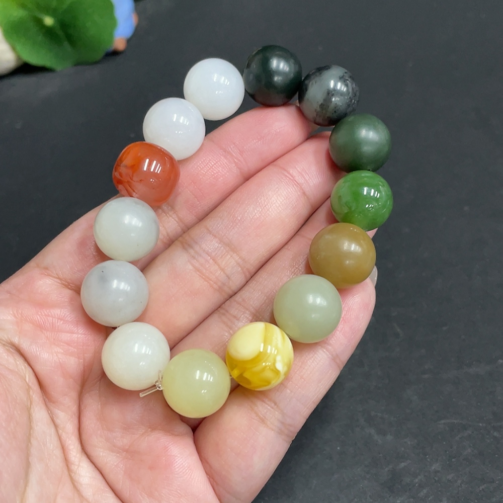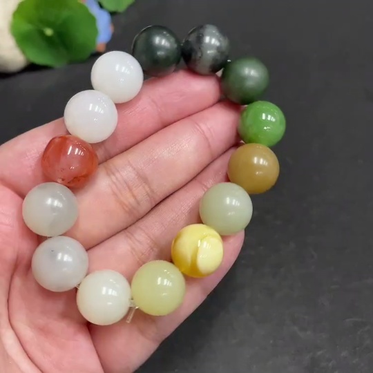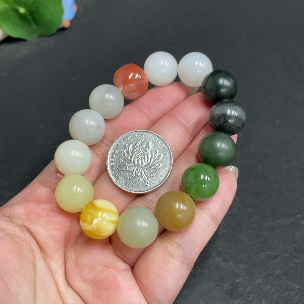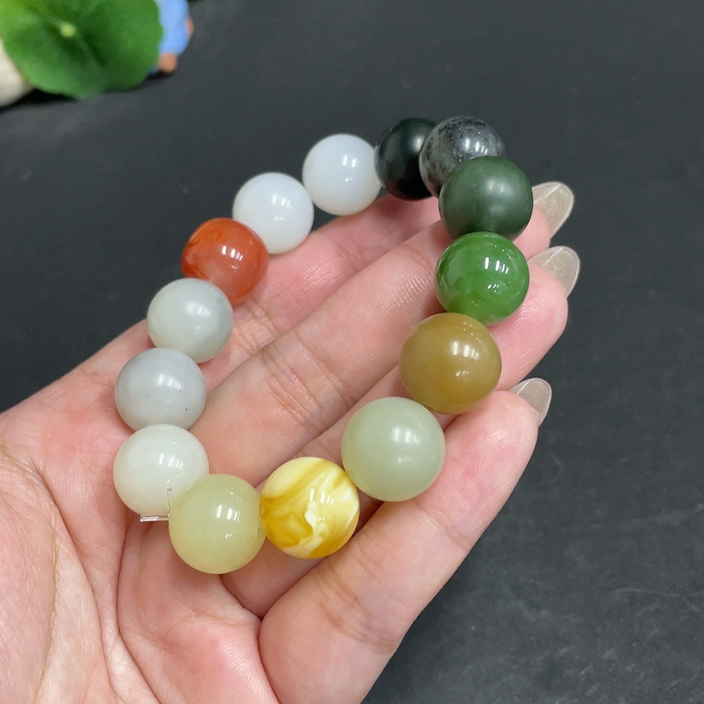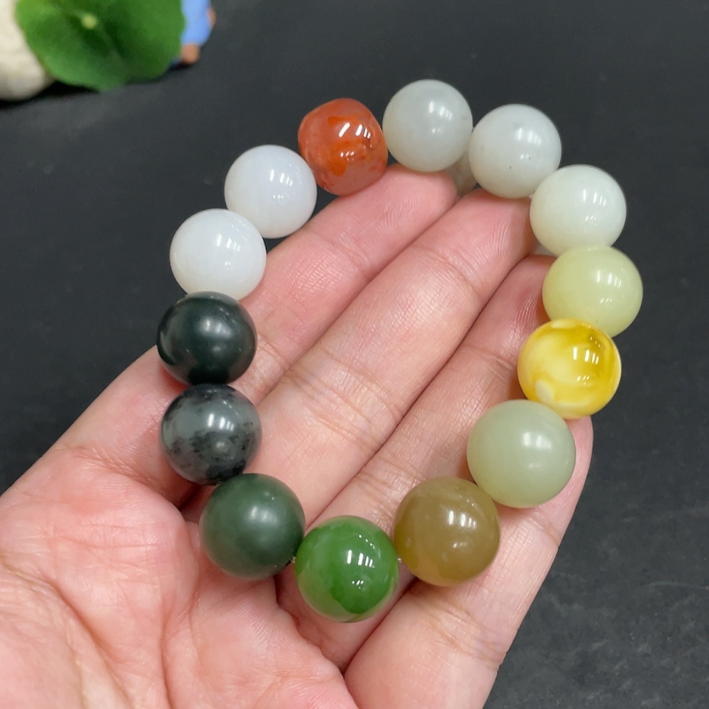 Hetian Jade Bracelet, Approx. 13.6mm, Total Weight Approx. 56.1g, with Southern Red Agate and Amber