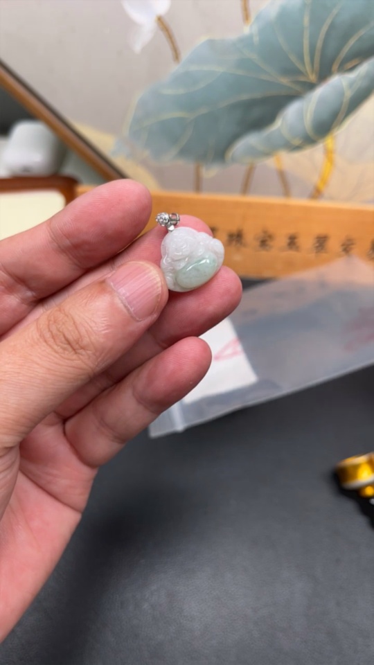 Jadeite Buddha Pendant Non-Gold Inlaid Total Weight Approx. 2.4g