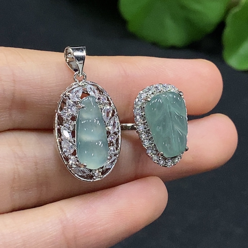 Jadeite inlaid pendant/living ring non-gold inlaid