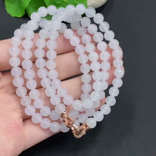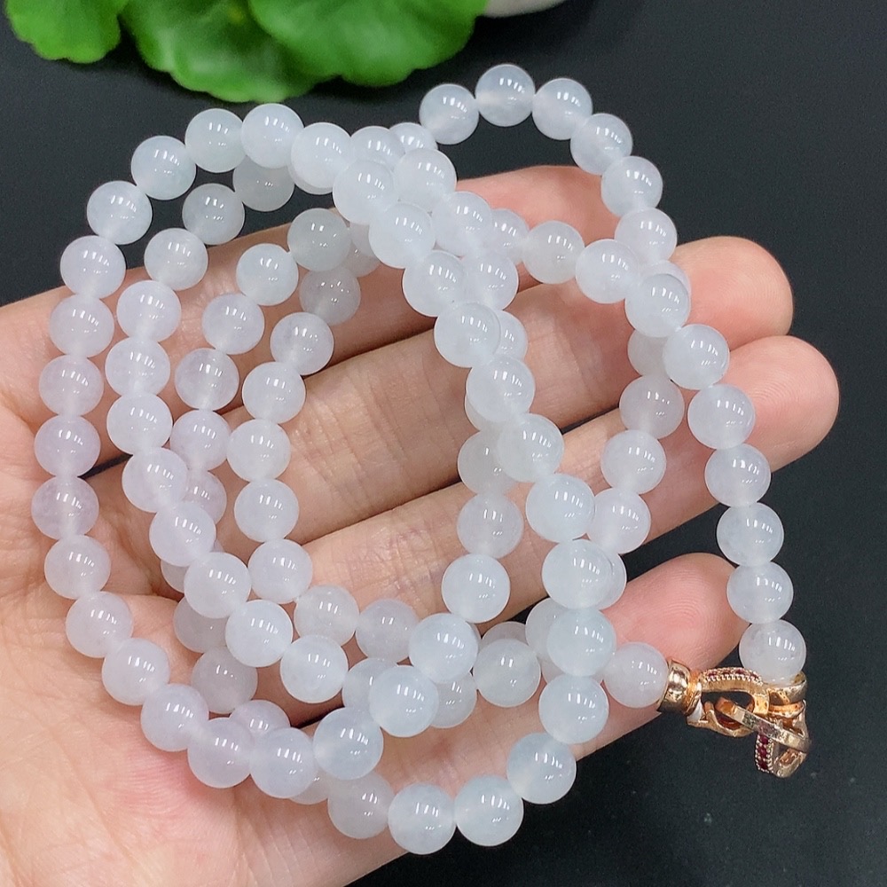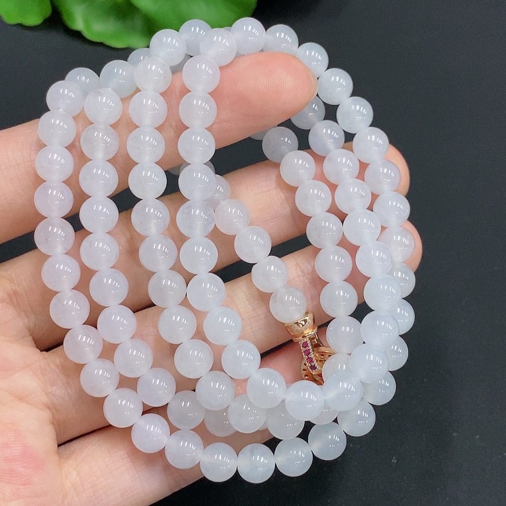 Jadeite Bead Necklace Total Weight Approx. 51g Size 6.3mm Non-gold Setting
