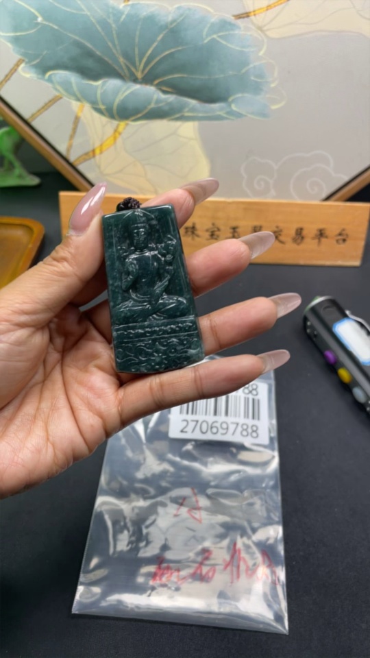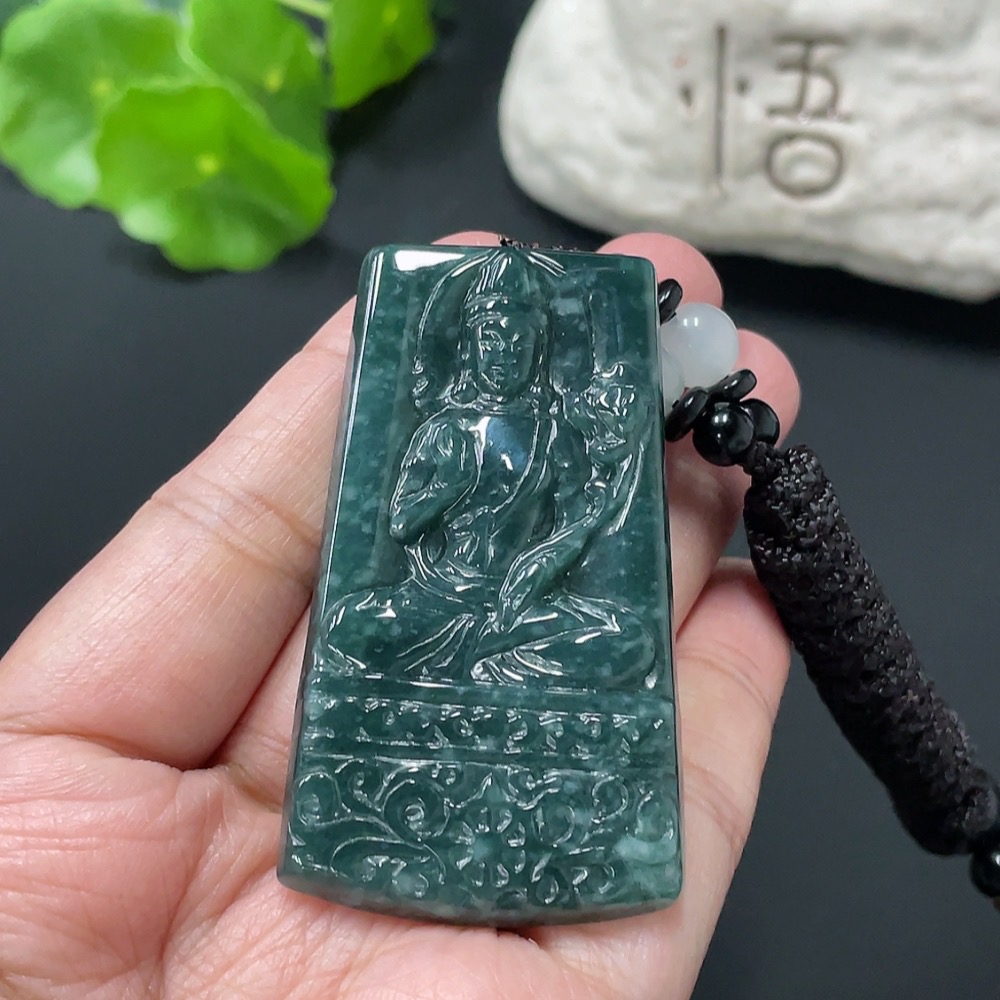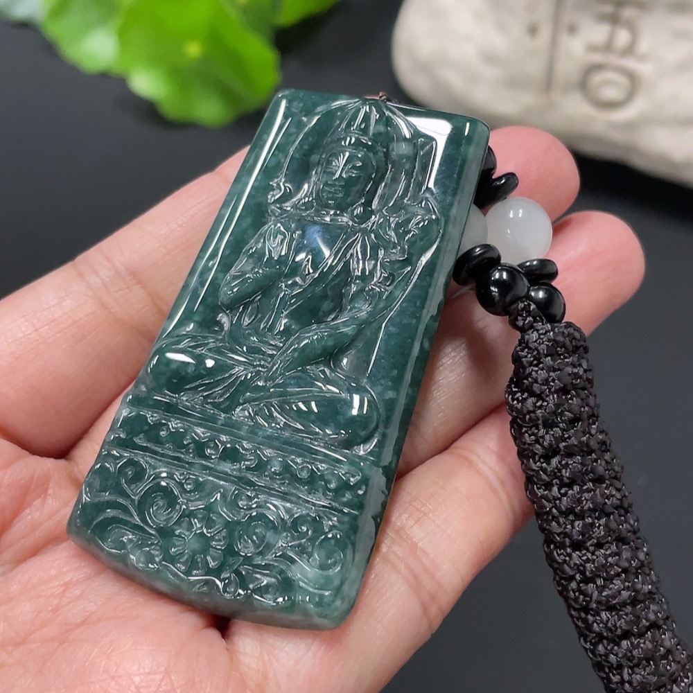 Jadeite Pendant Guanyin Plaque Total Weight Approx. 31.17g With Non-Type A Stones