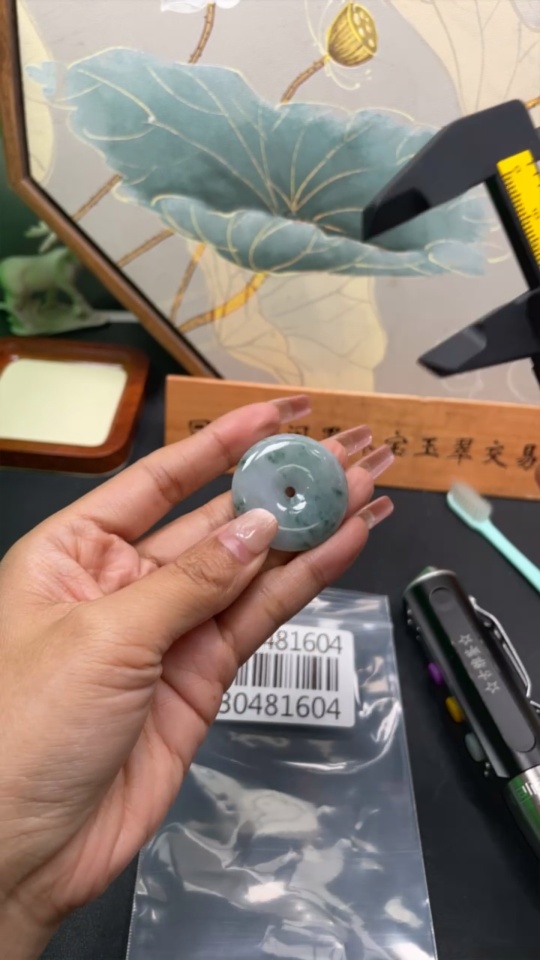Jadeite Pendant Peace Buckle Total Weight Approx. 15.83g