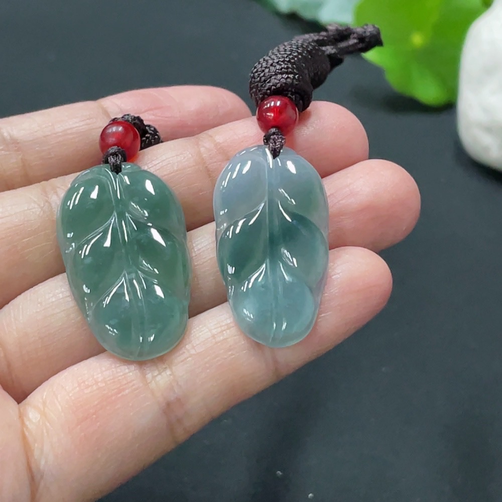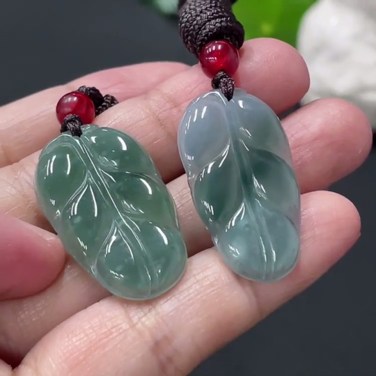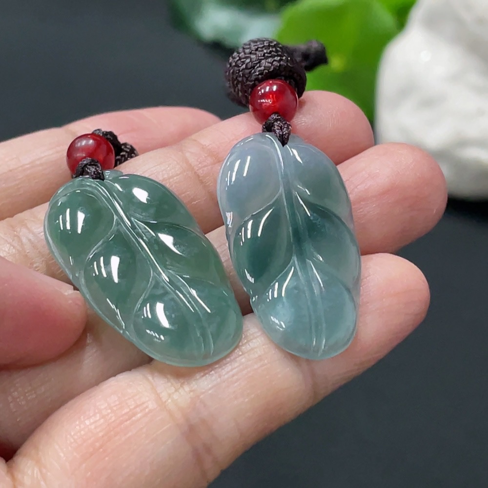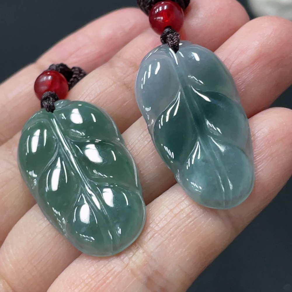 JadeiteLeaf Pendant with Non-Grade A Beads