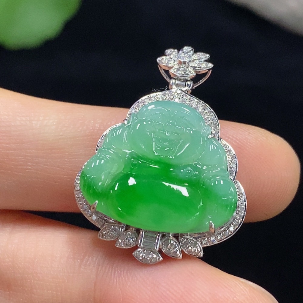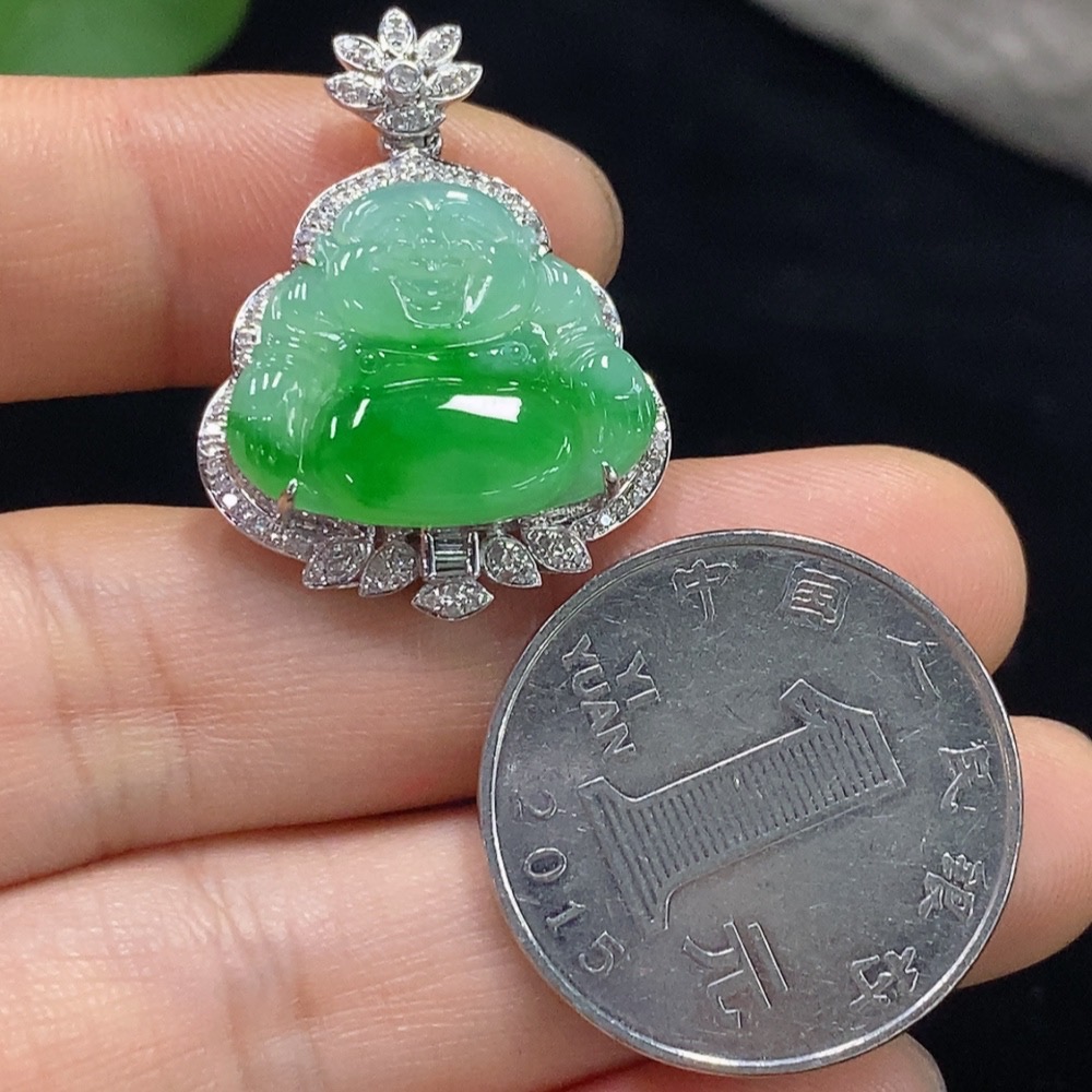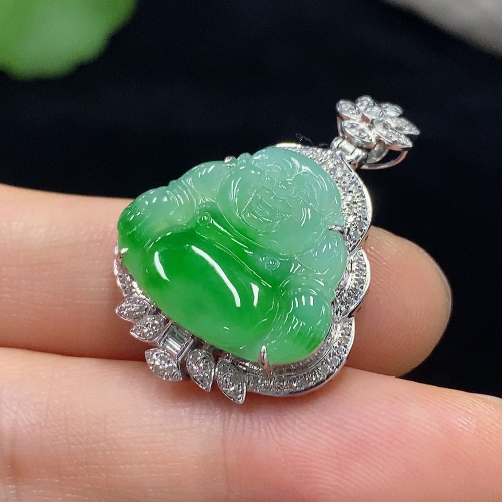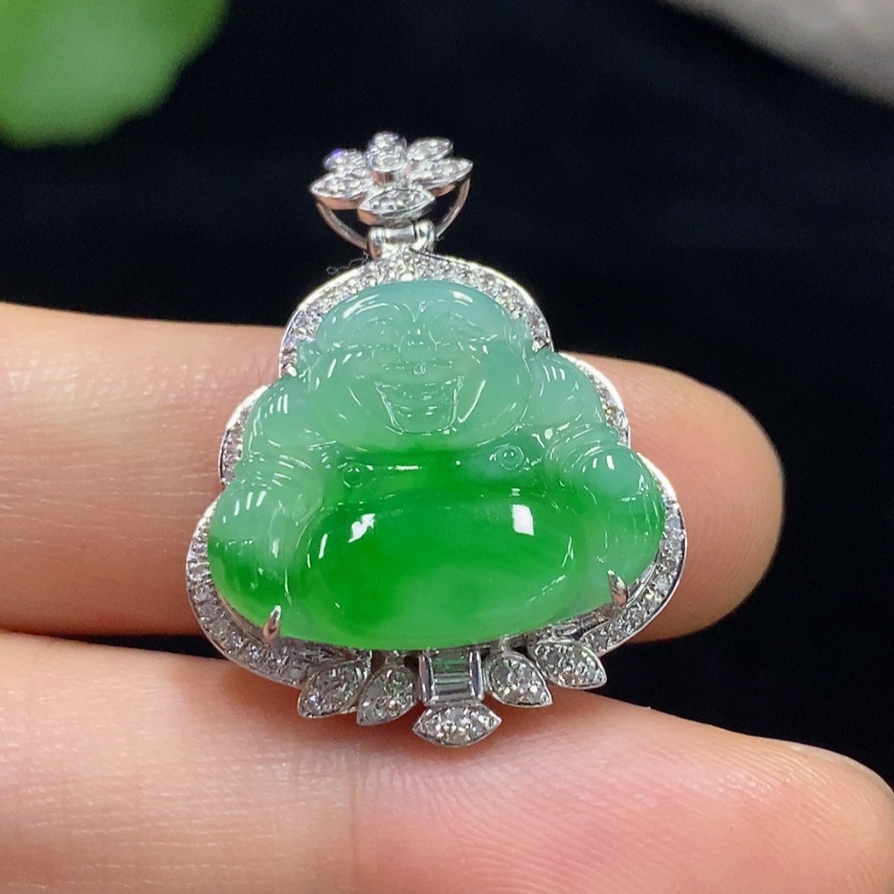 Jadeite Buddha Pendant with 18K Gold and Diamond Accents, Total Weight Approx. 4.83g