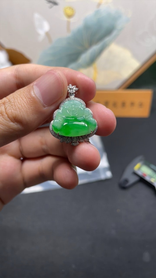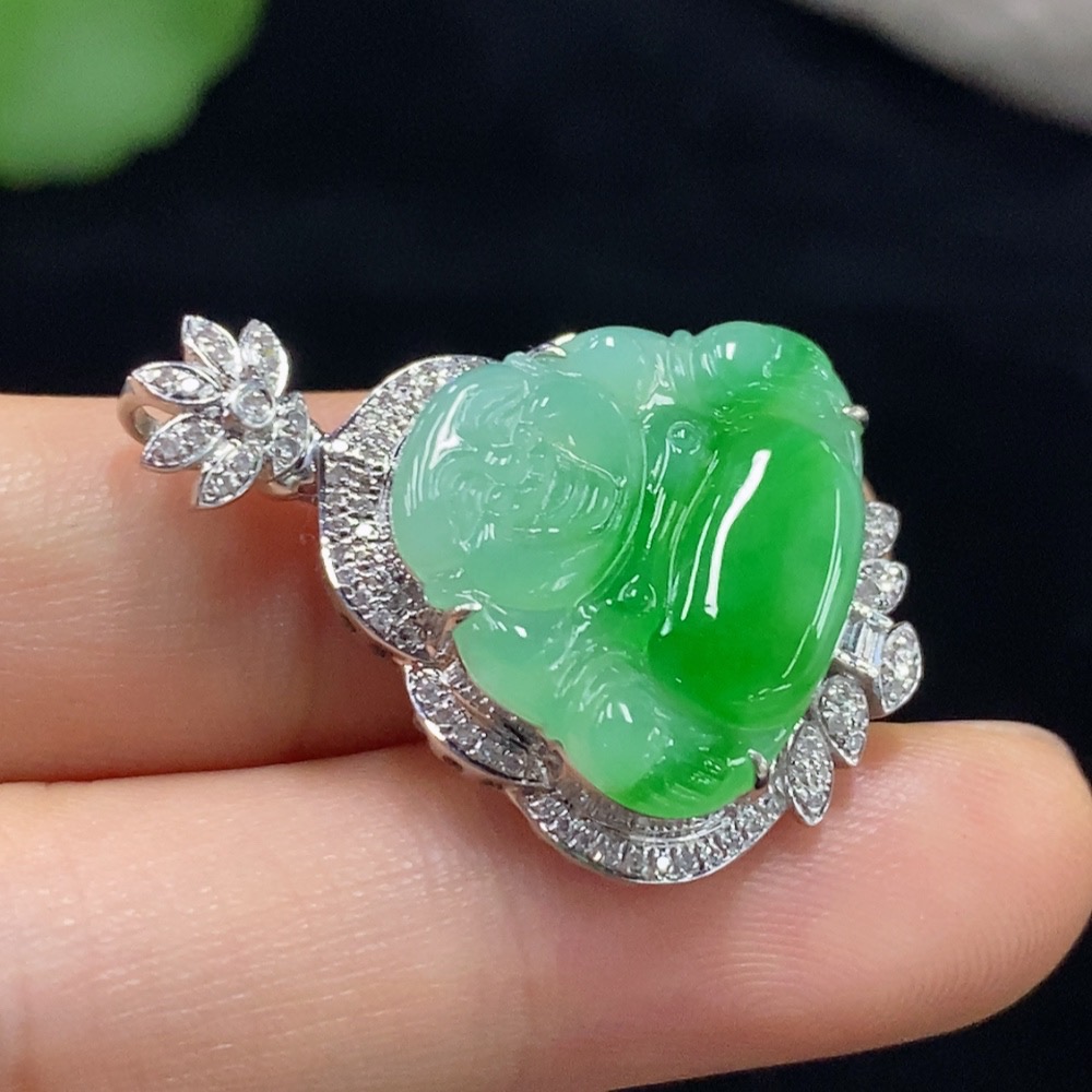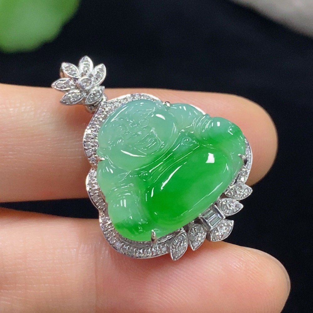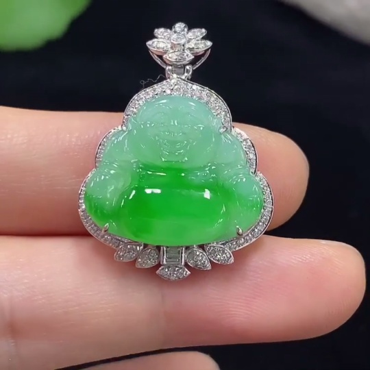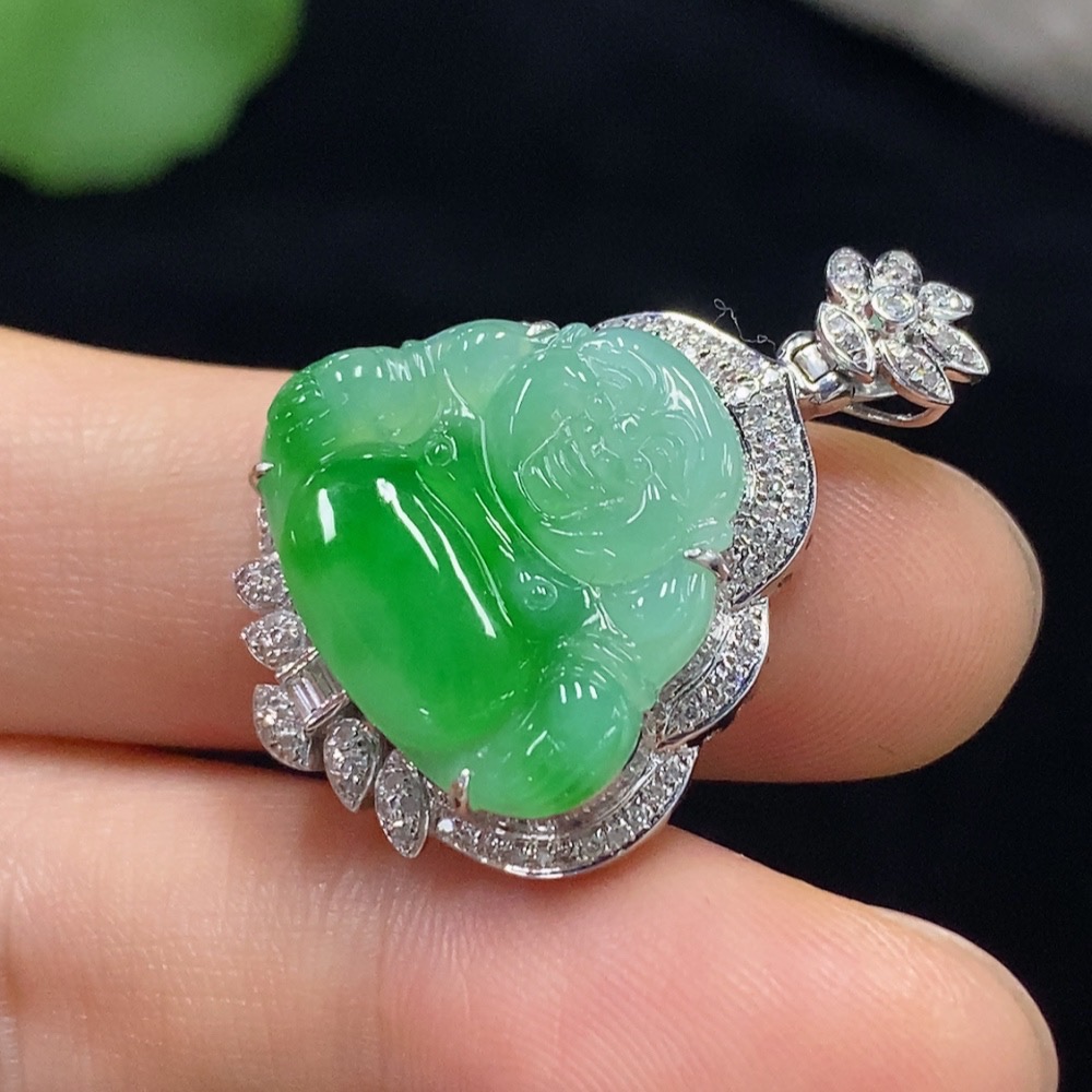 Jadeite Buddha Pendant with 18K Gold and Diamond Accents, Total Weight Approx. 4.83g