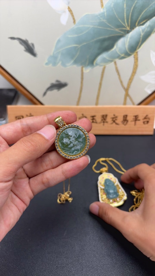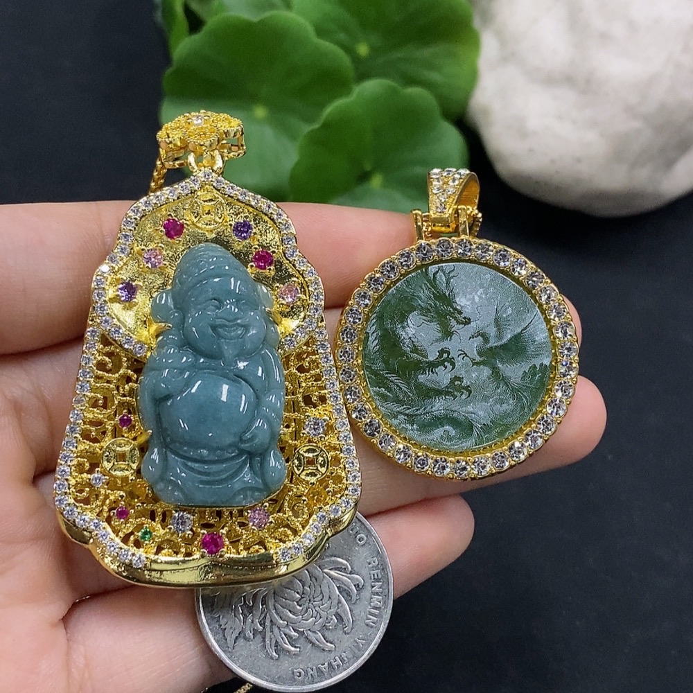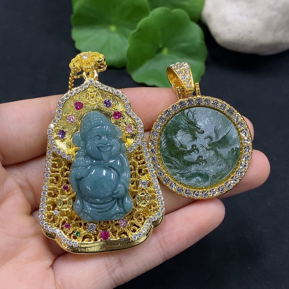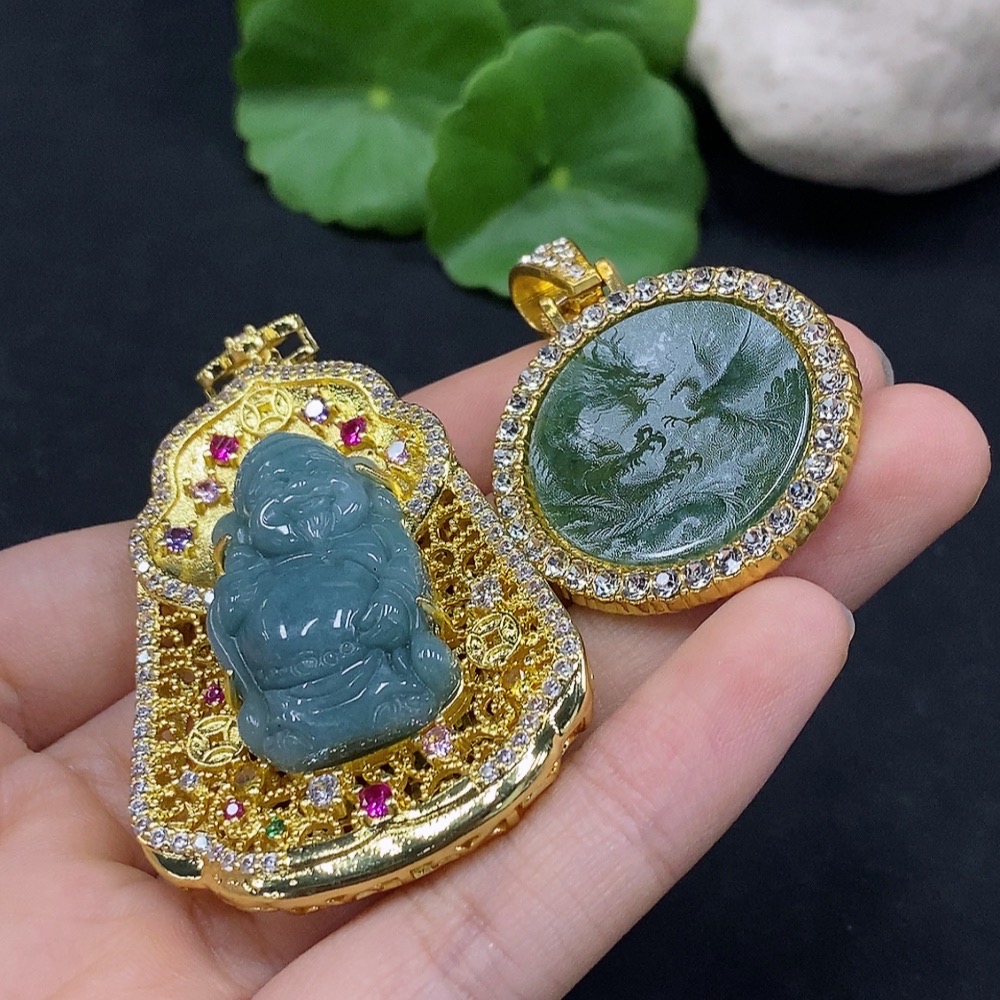 Jadeite Inlaid Pendant Non-gold Inlaid