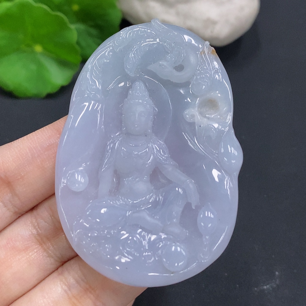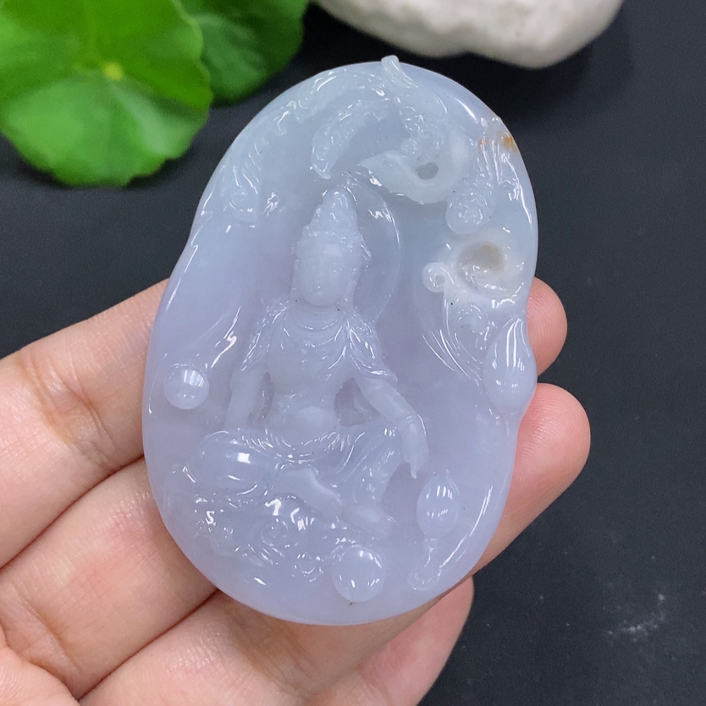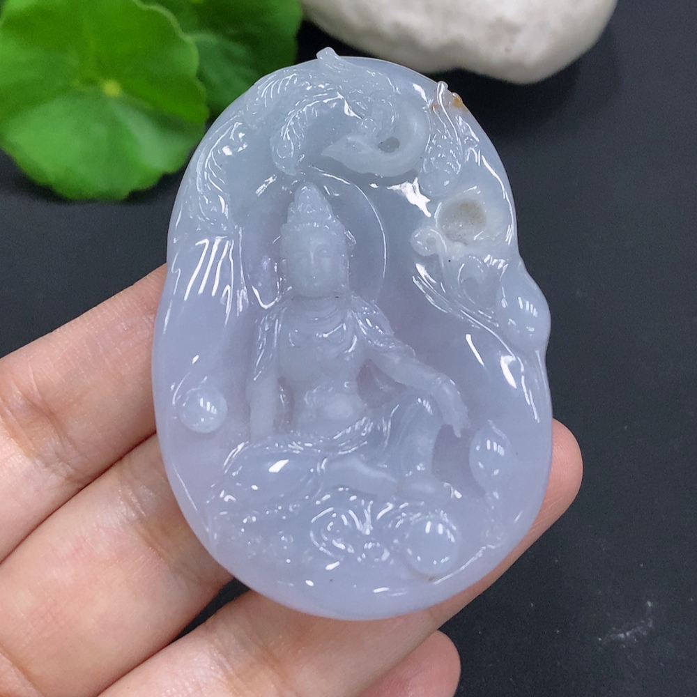 Jadeite Guanyin Pendant, Total Weight Approx. 32.5g