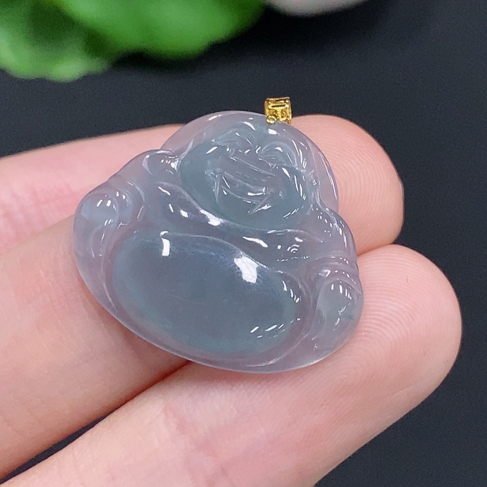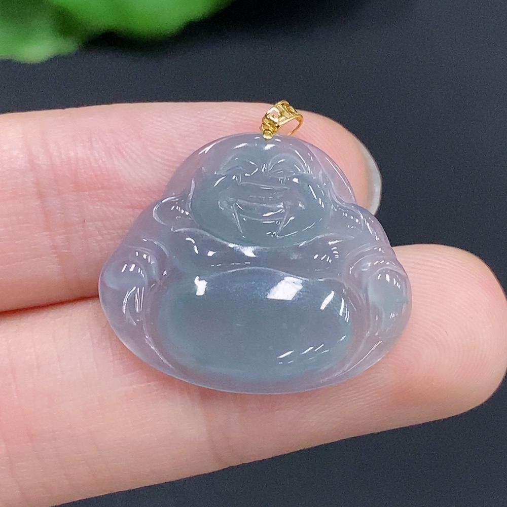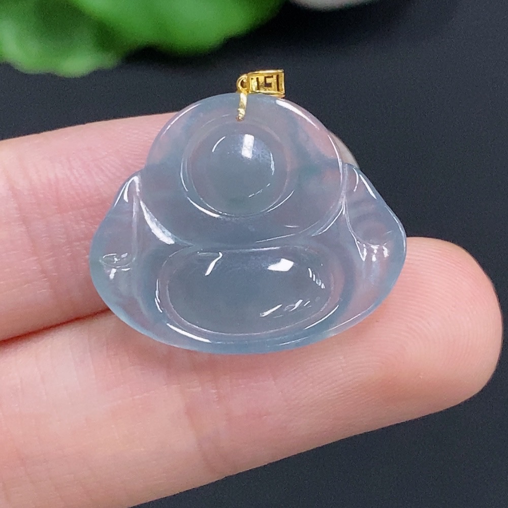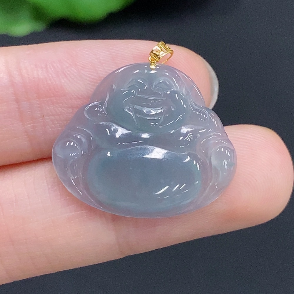 Jadeite Buddha Pendant with 18k Gold Clasp, Total Weight Approximately 2.2g