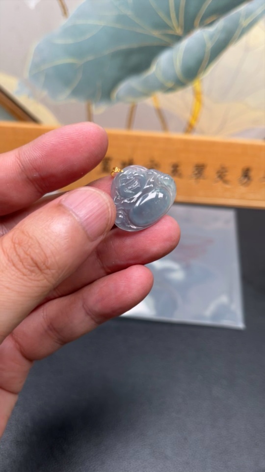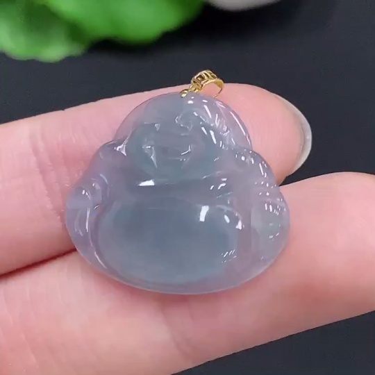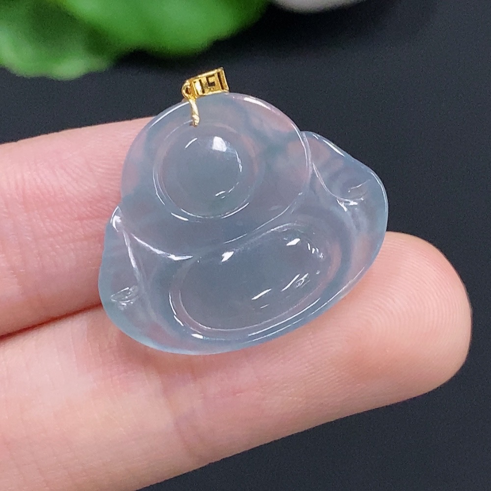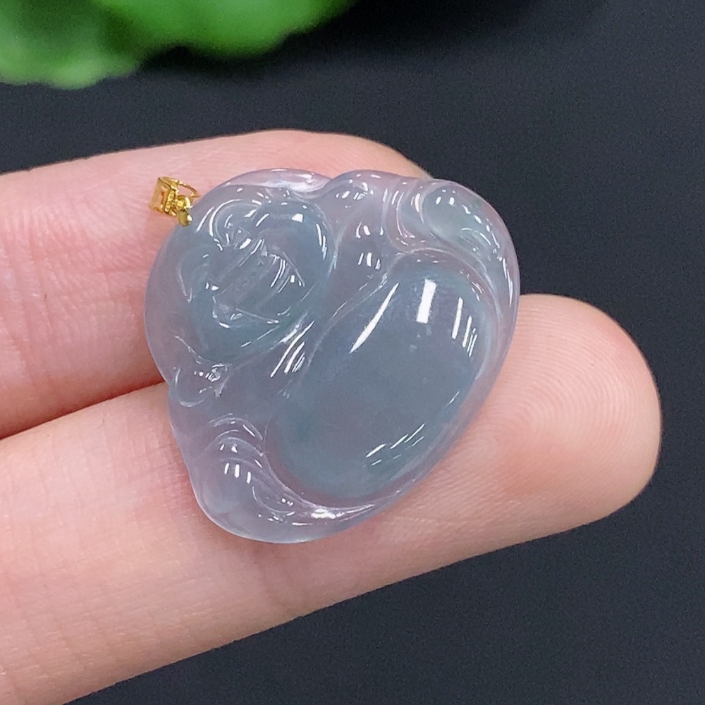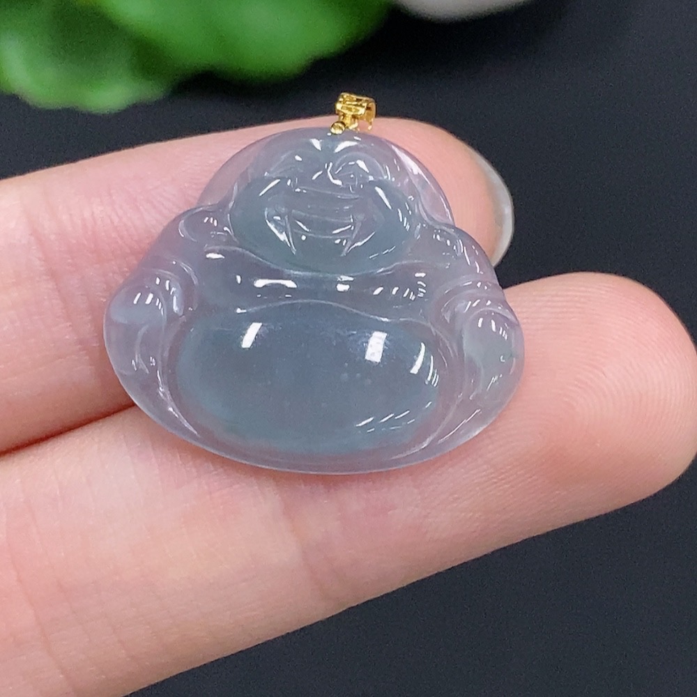 Jadeite Buddha Pendant with 18k Gold Clasp, Total Weight Approximately 2.2g
