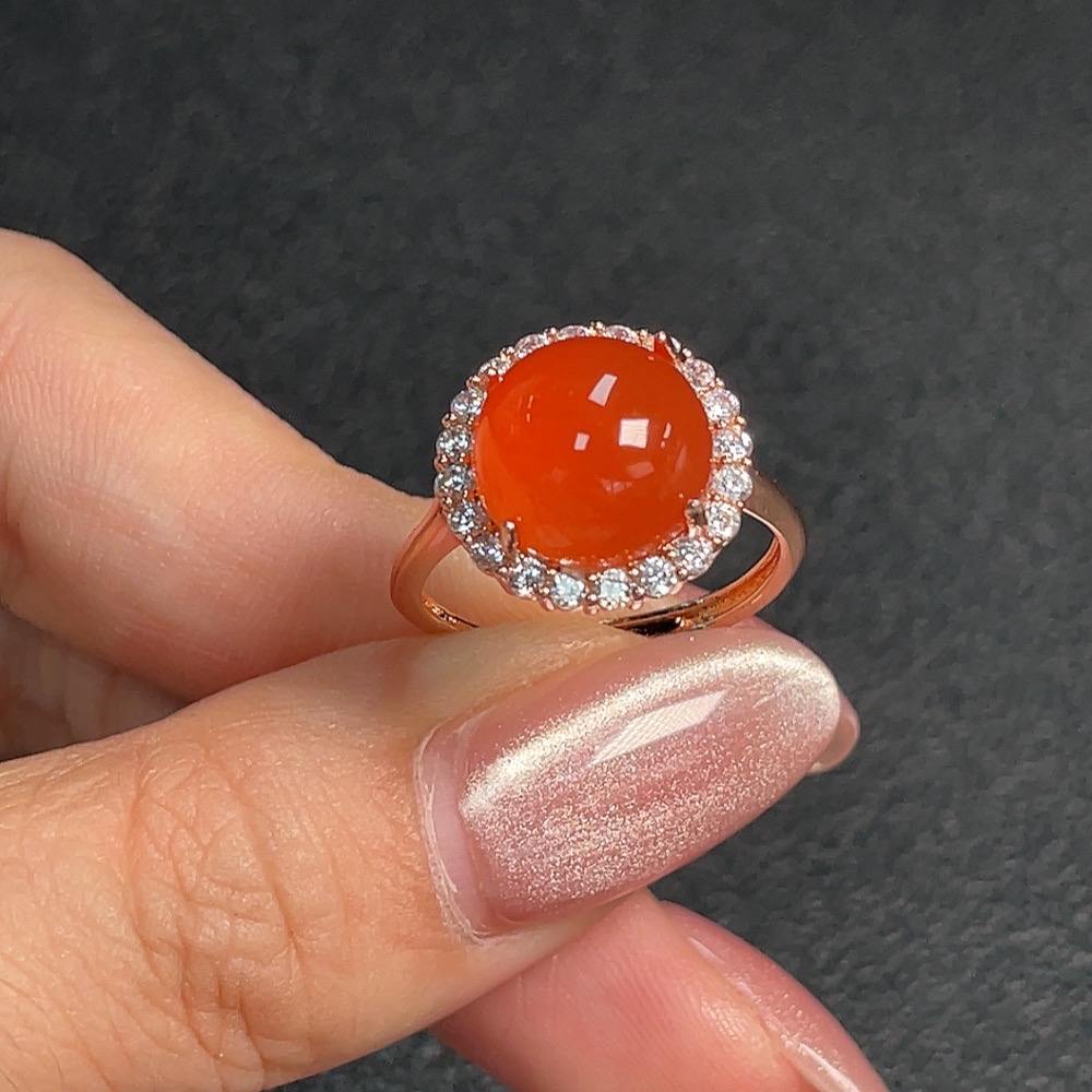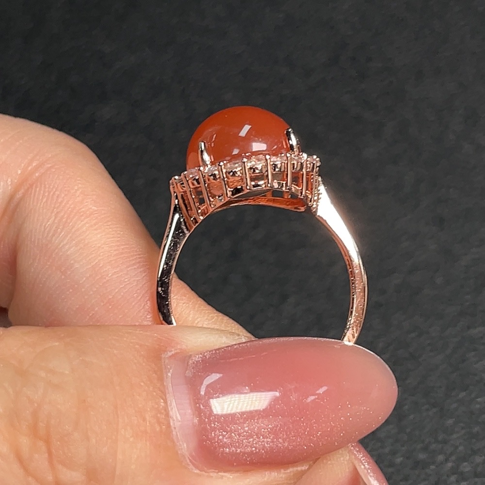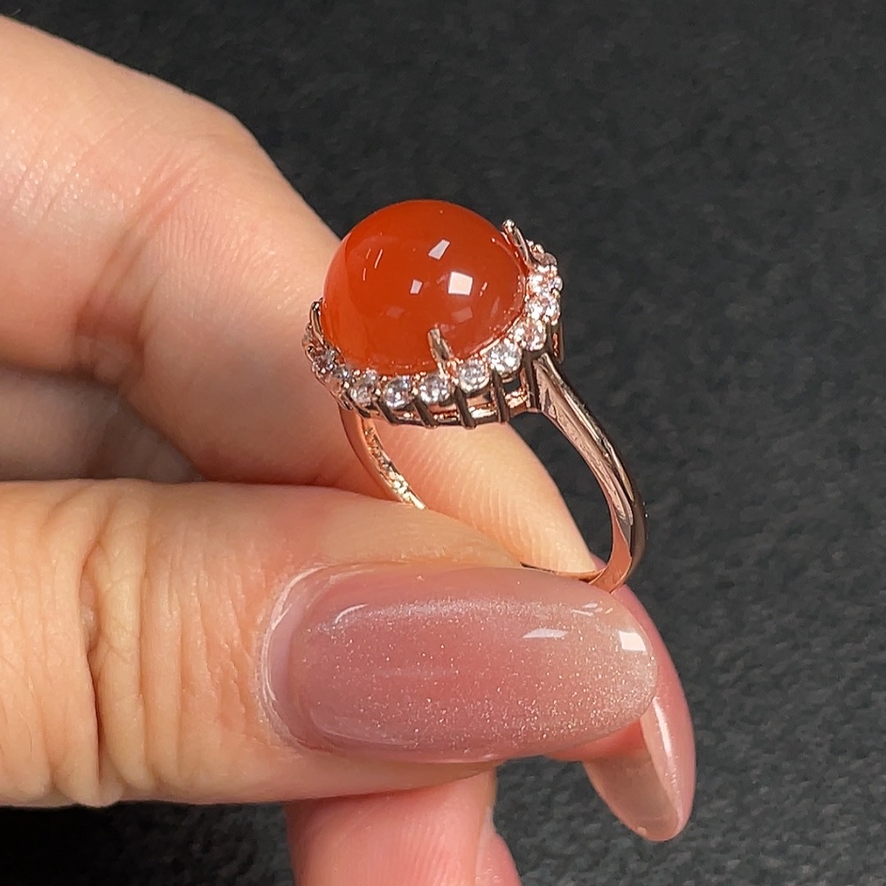 South Red Agate Inlaid Ring Non-Gold Setting Adjustable Size Total Weight Approx. 3.82g