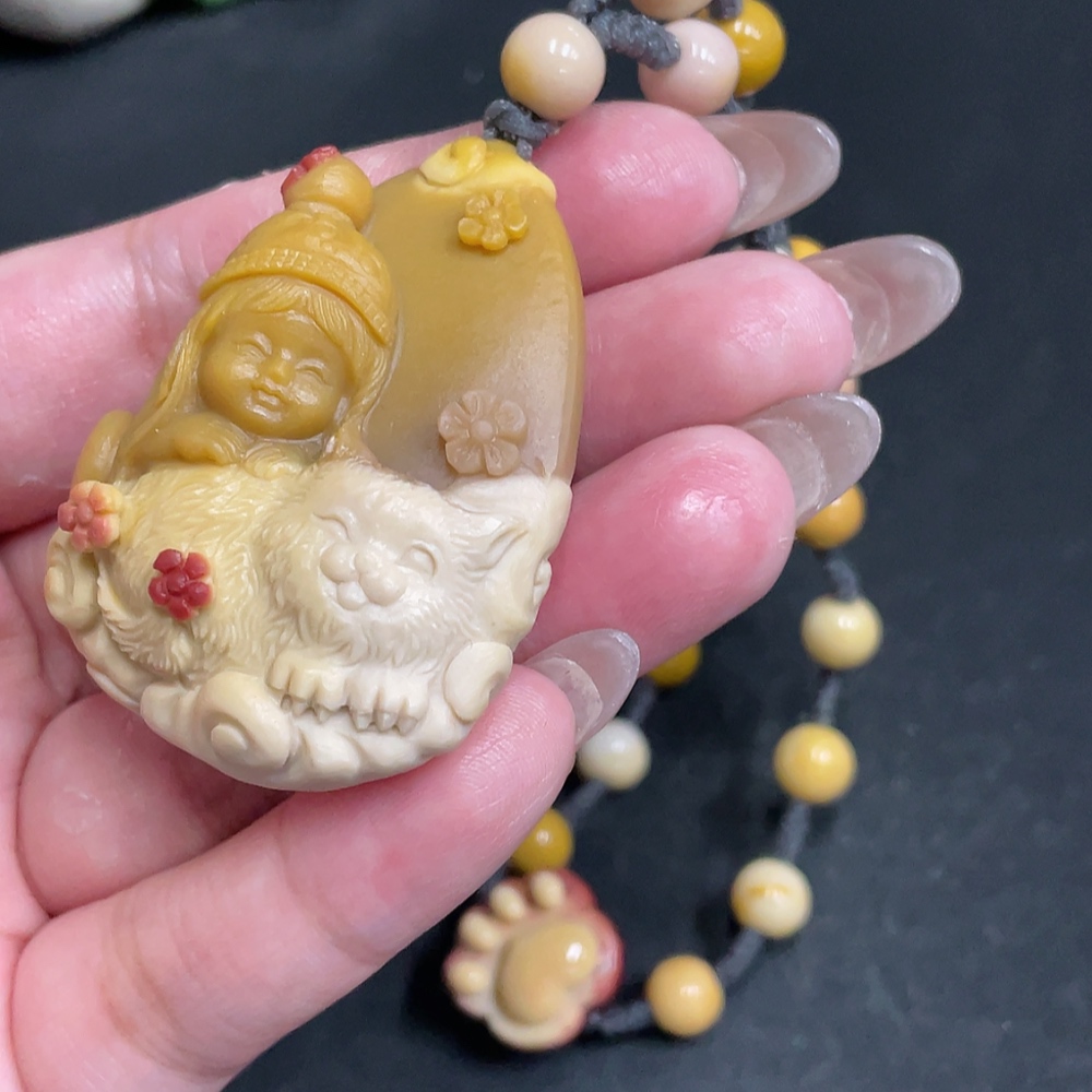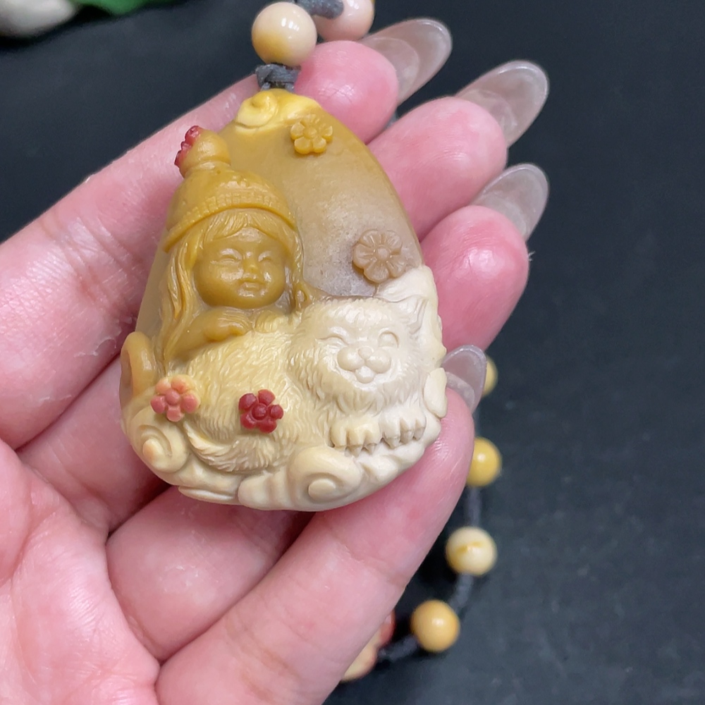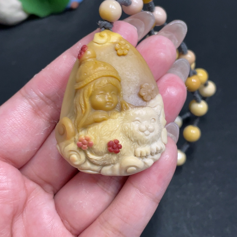 Alashan Agate Handheld Ornament - Boy with Other Mineral Components