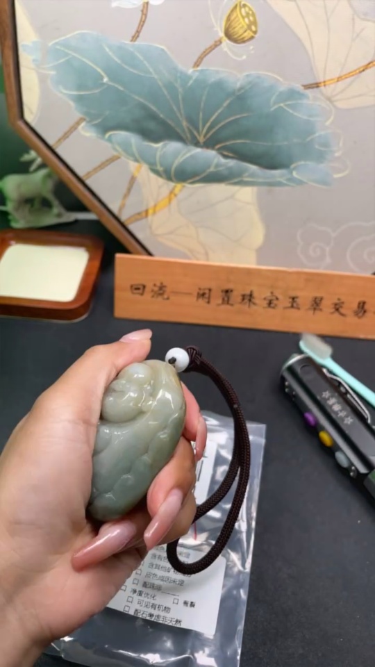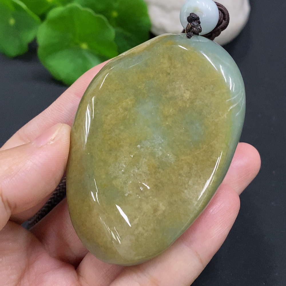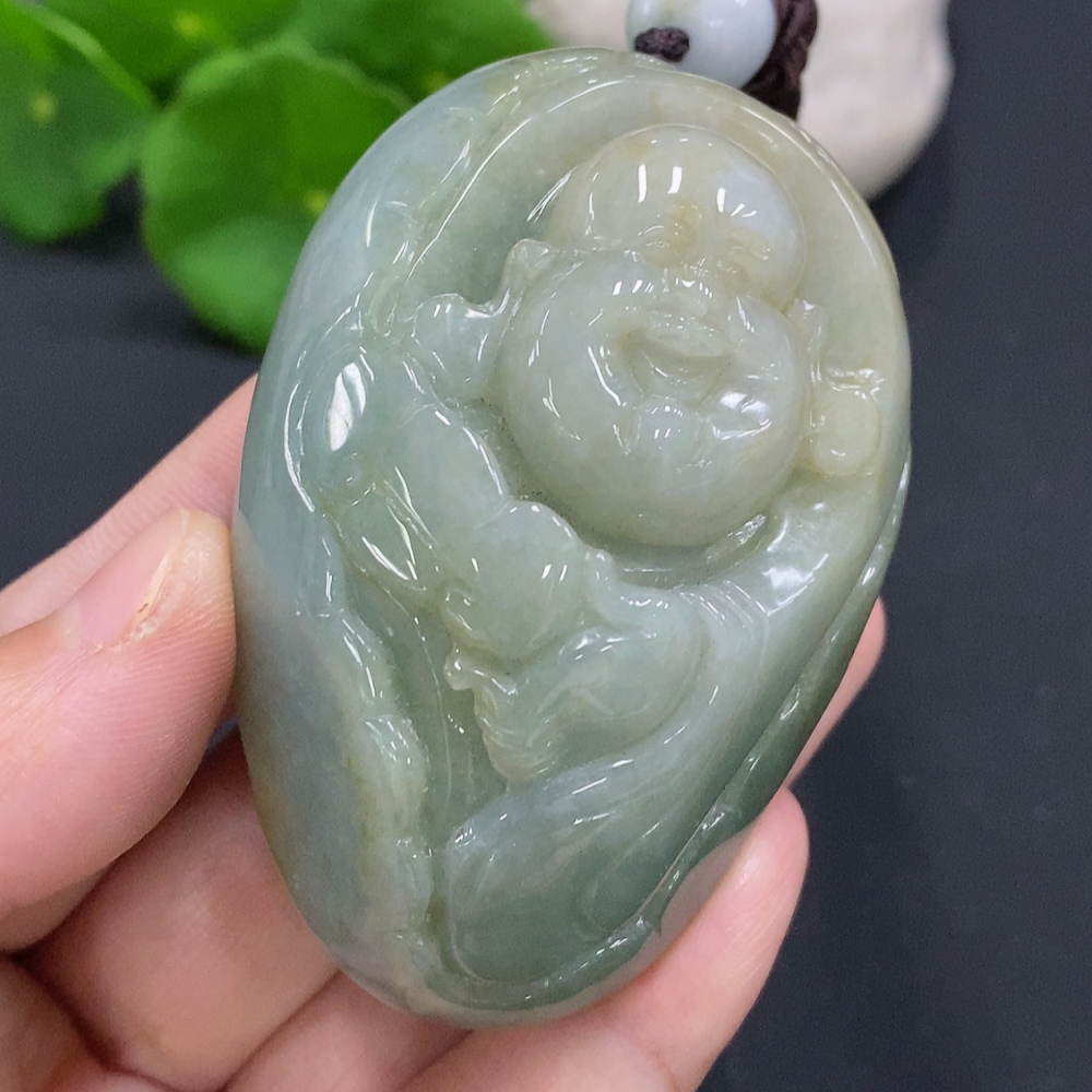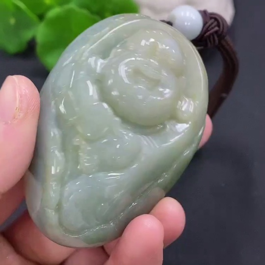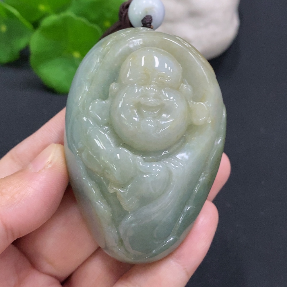Jadeite Buddha Handheld Piece, Color Origin Undetermined, Total Weight Including Rope Approximately 144.98g
