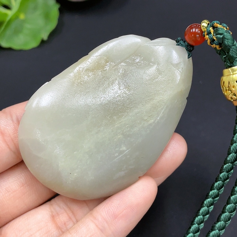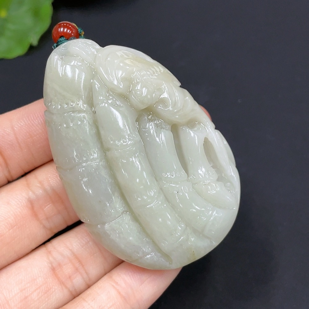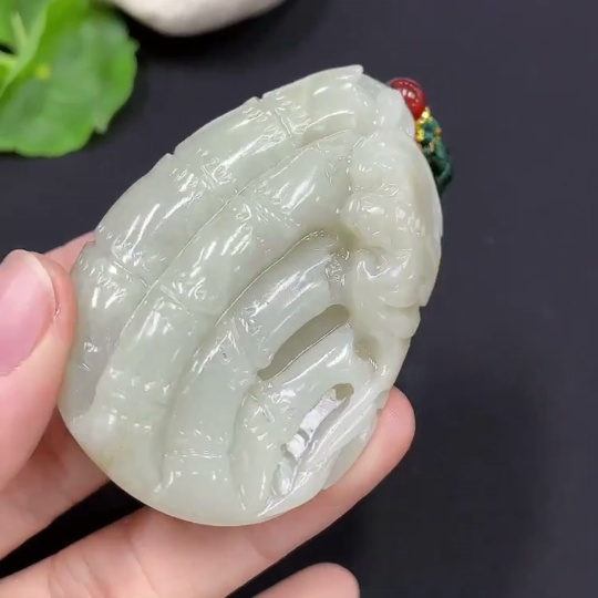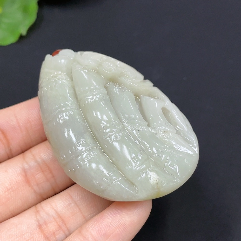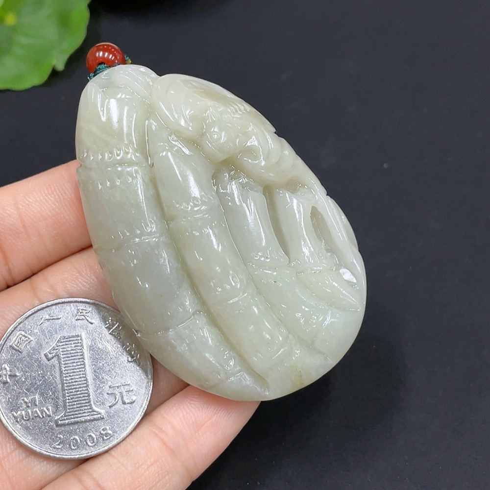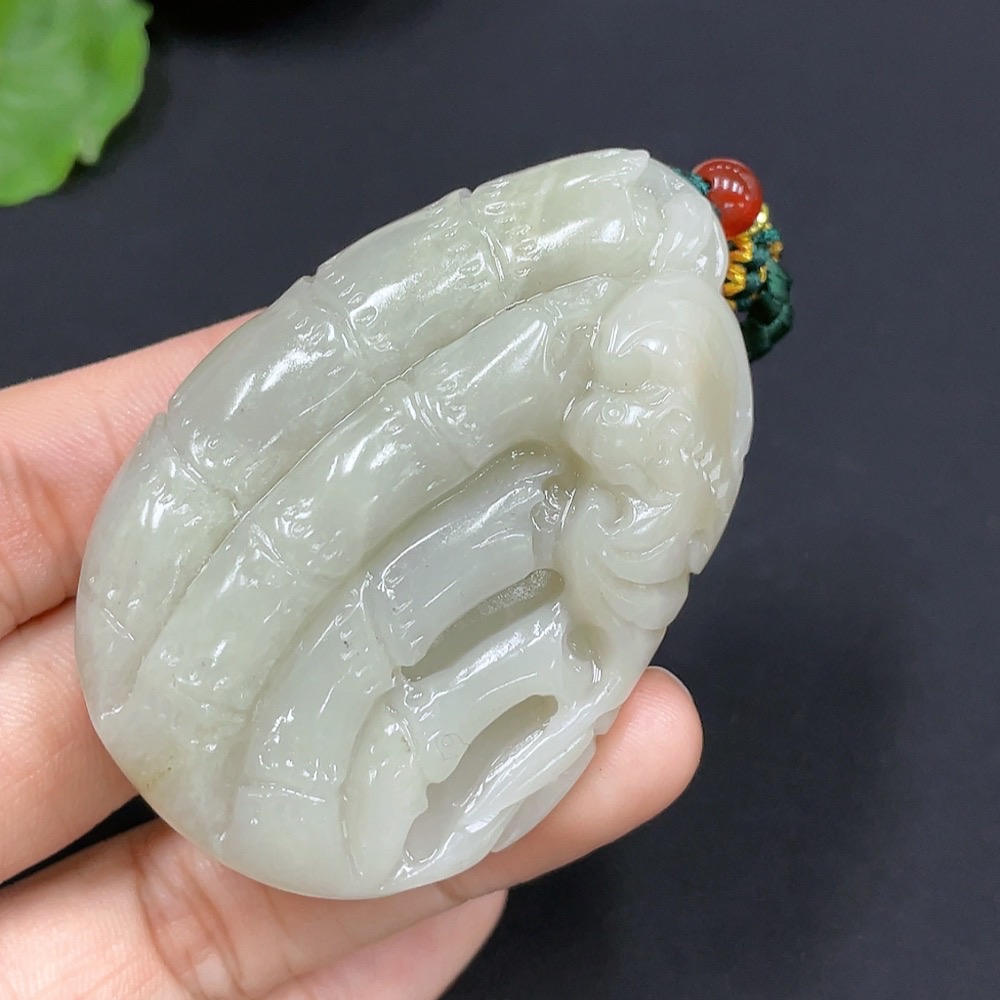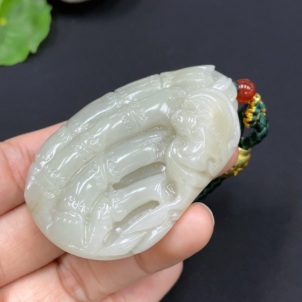Hetian Jade Bamboo Brings Peace Pendant, total weight with cord approximately 65.4g (undetermined cause of skin color) (accompanying beads not Hetian Jade) (non-gold inlaid)