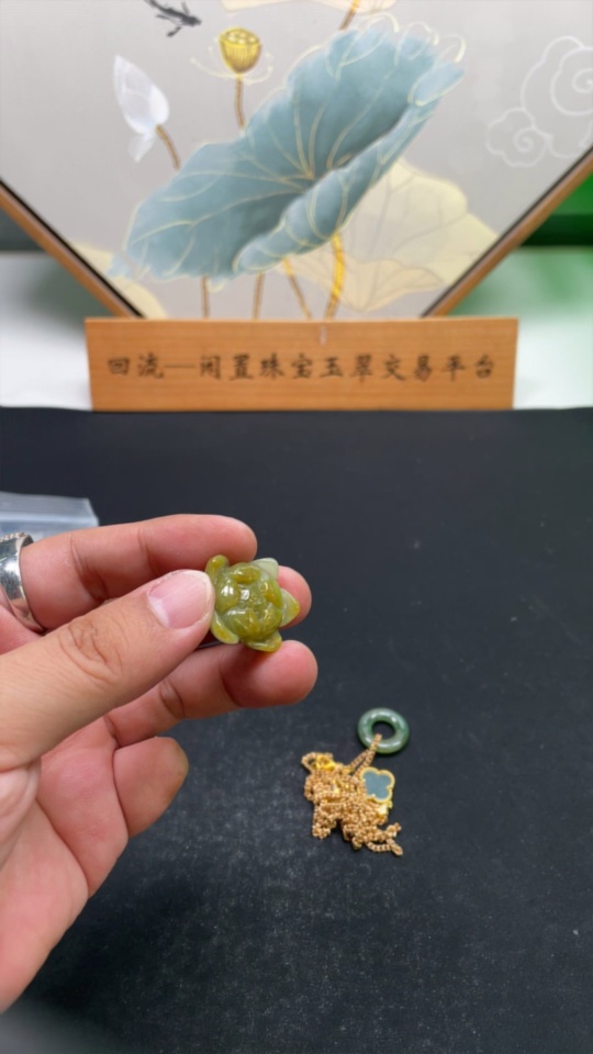 Trezaar - Jadeite Mounted Piece Non-Gold Sell as a Lot Color Origin Undetermined