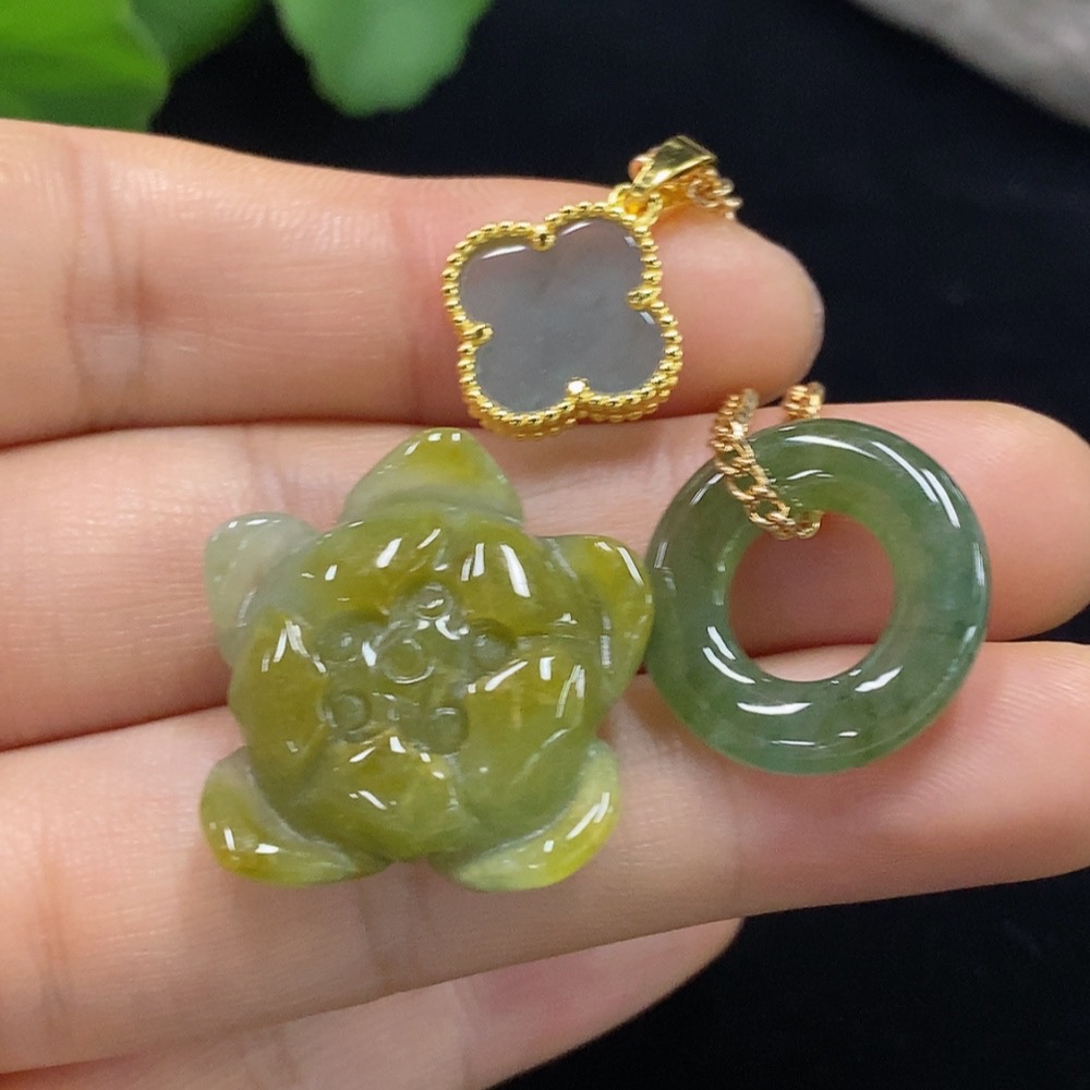 Jadeite Mounted Piece Non-Gold Sell as a Lot Color Origin Undetermined