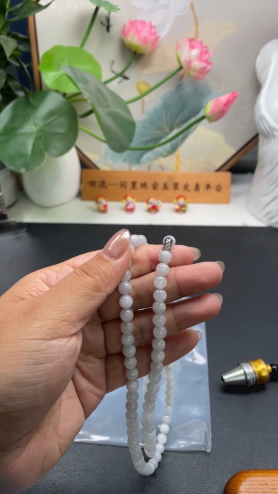 Jadeite Beaded Necklace Approx. 7.2mm Beads Total Weight Approx. 66.5g Non-Gold-Inlaid