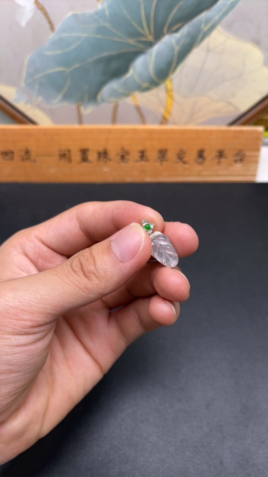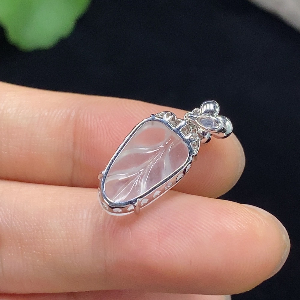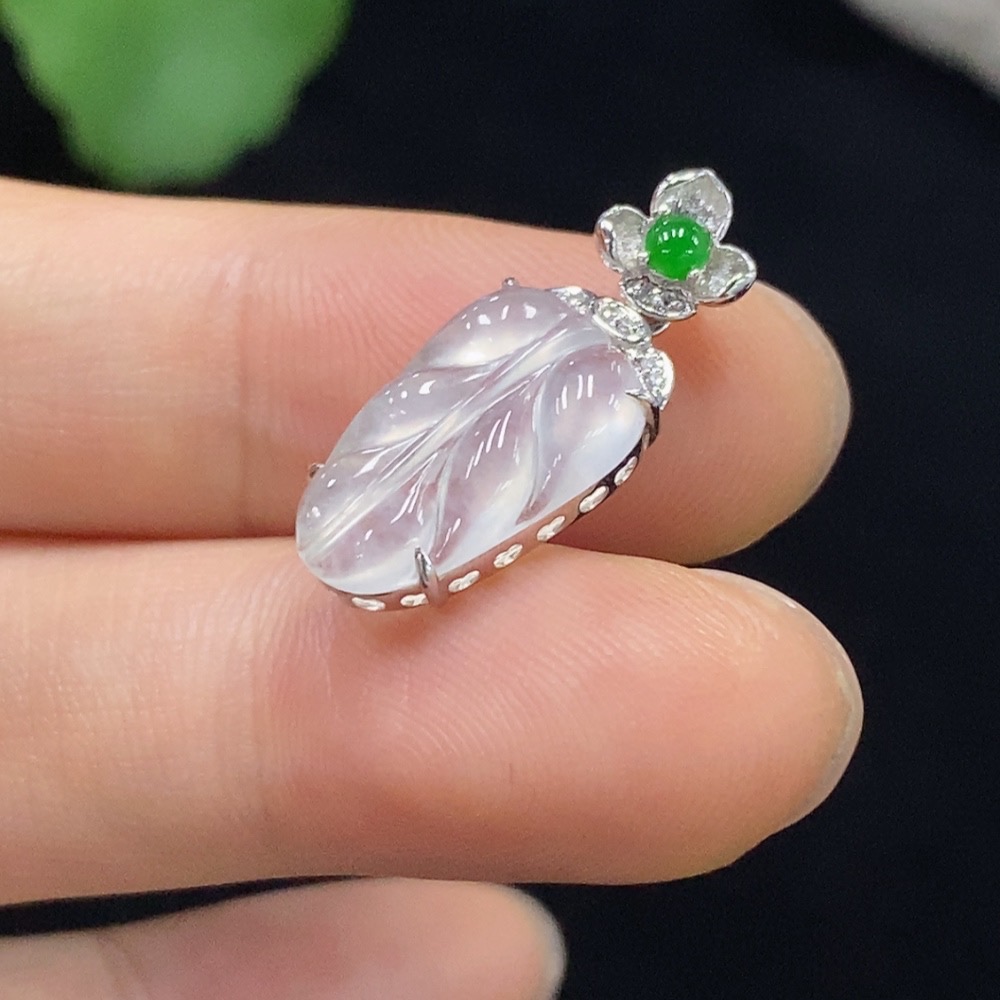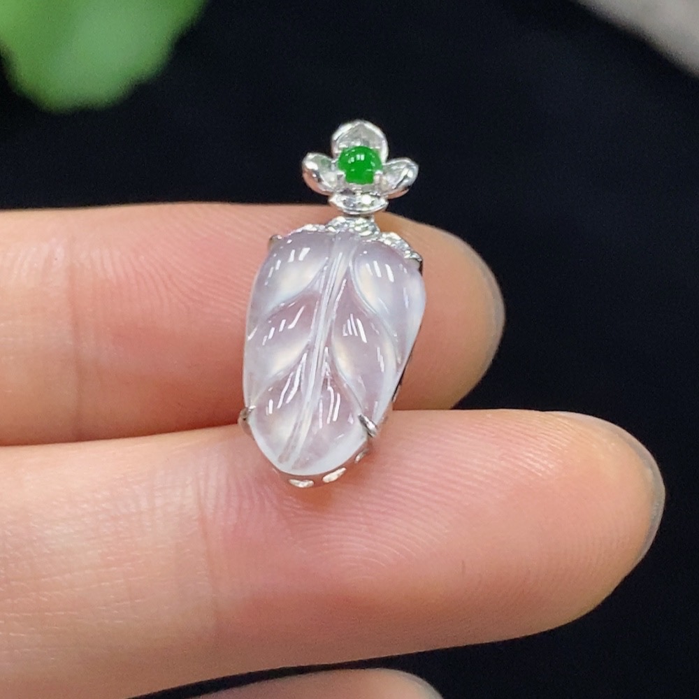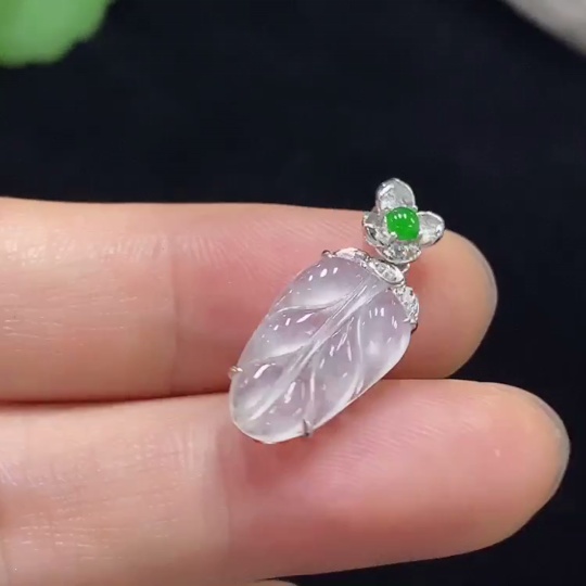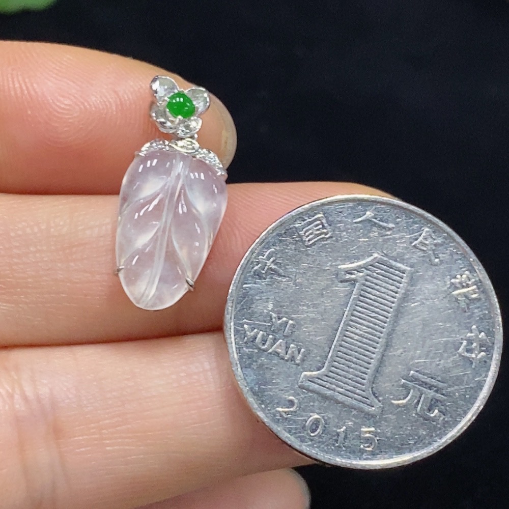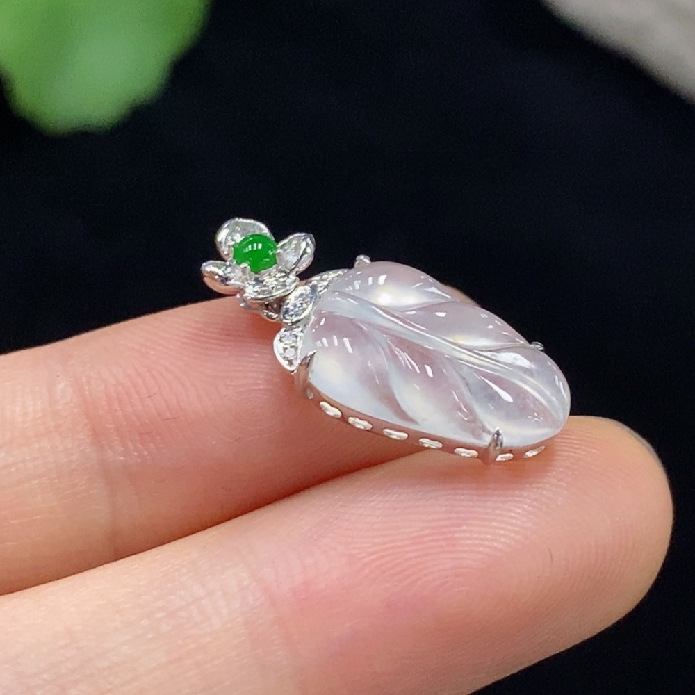 Jadeite Leaf Inlay Pendant 18k Total Weight Approx.1.4g